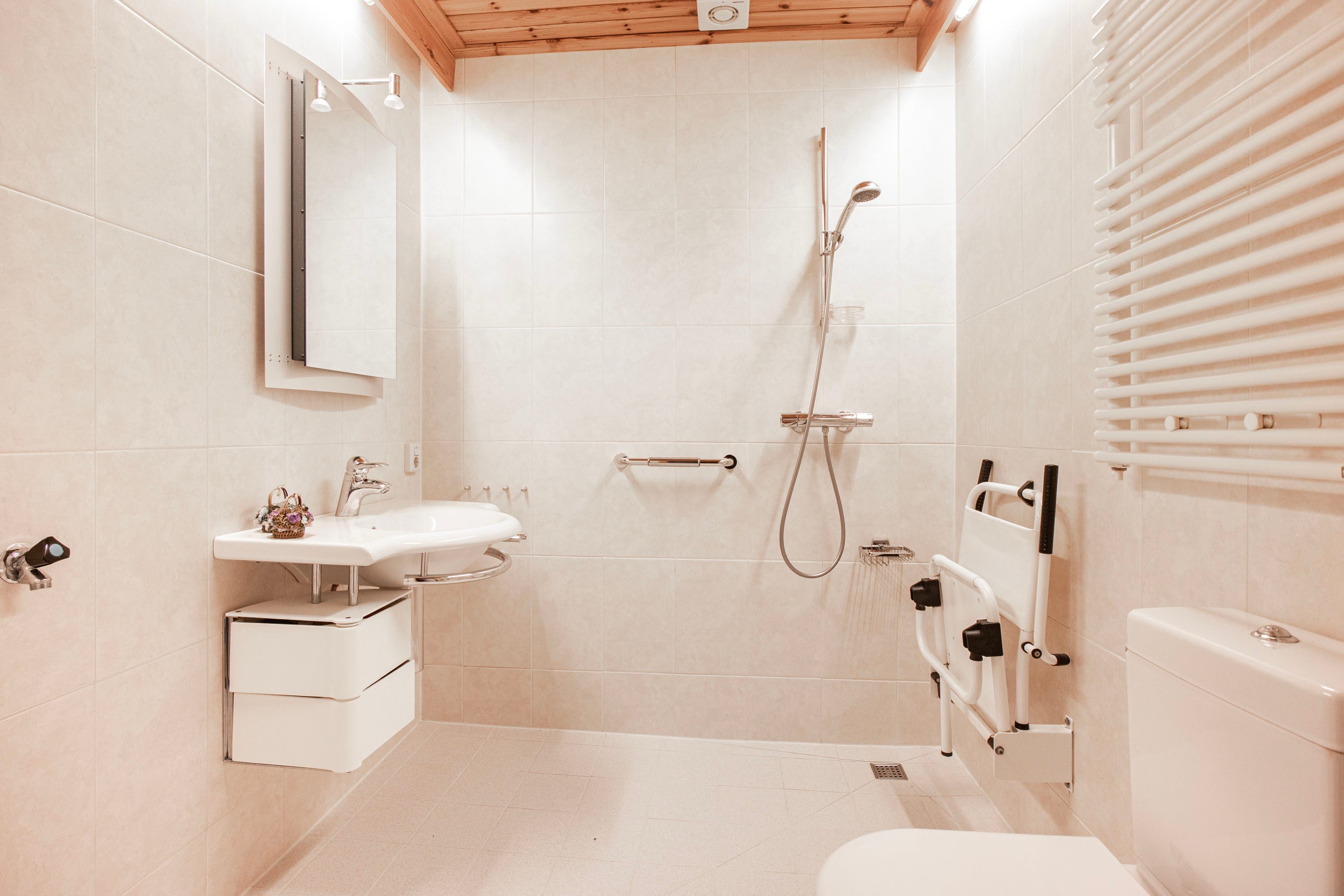De volledig betegelde badkamer beschikt over een tweede toilet, douche, wastafelmeubel inclusief spiegelkast en een designradiator. Tevens is in de badkamer een aansluiting aanwezig voor de wasmachine.