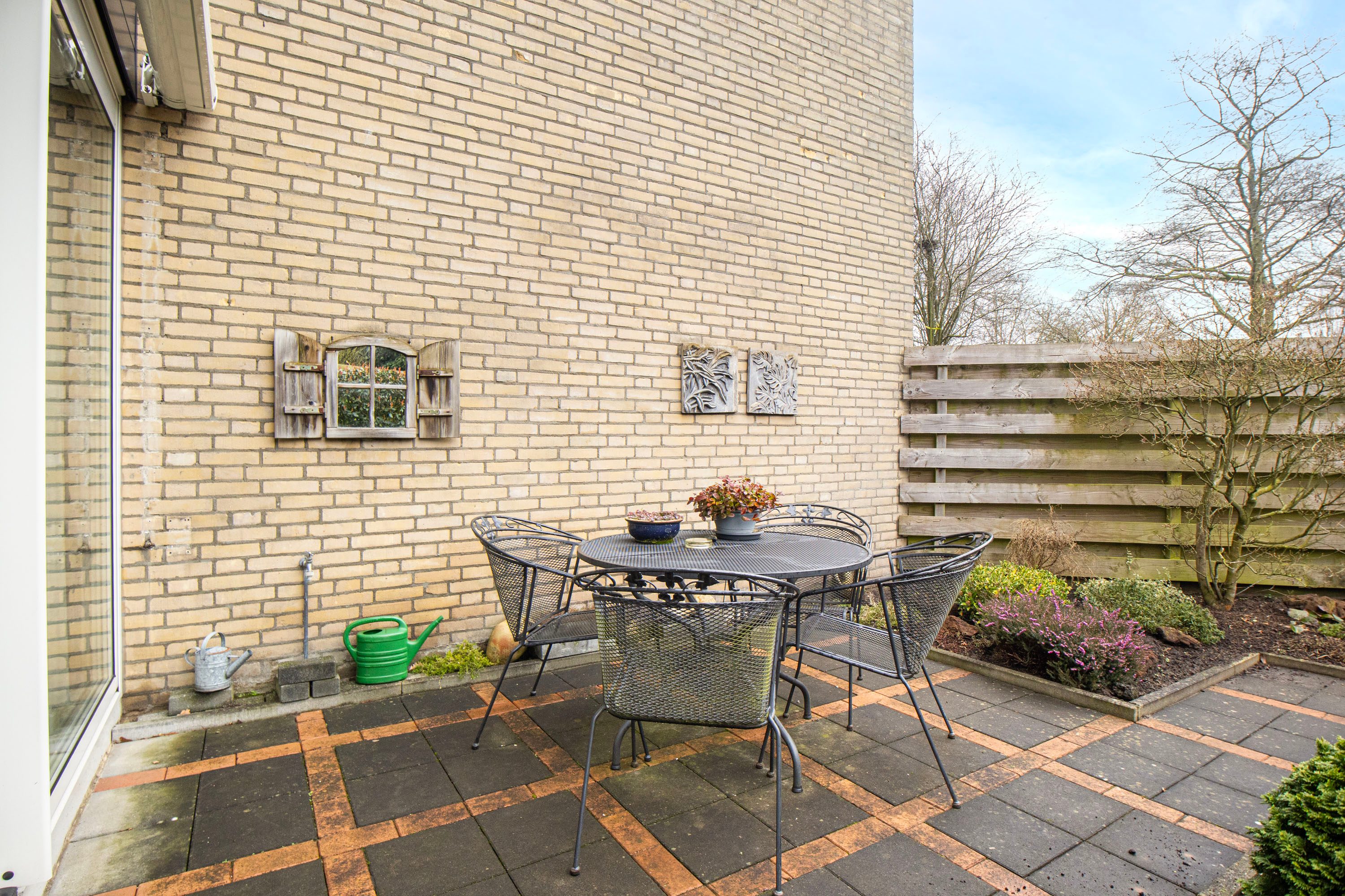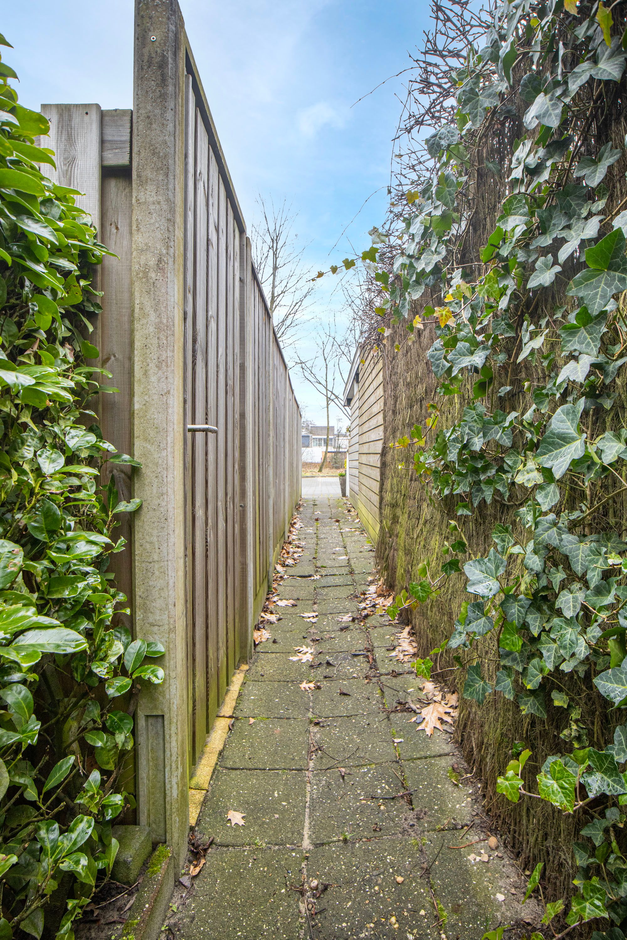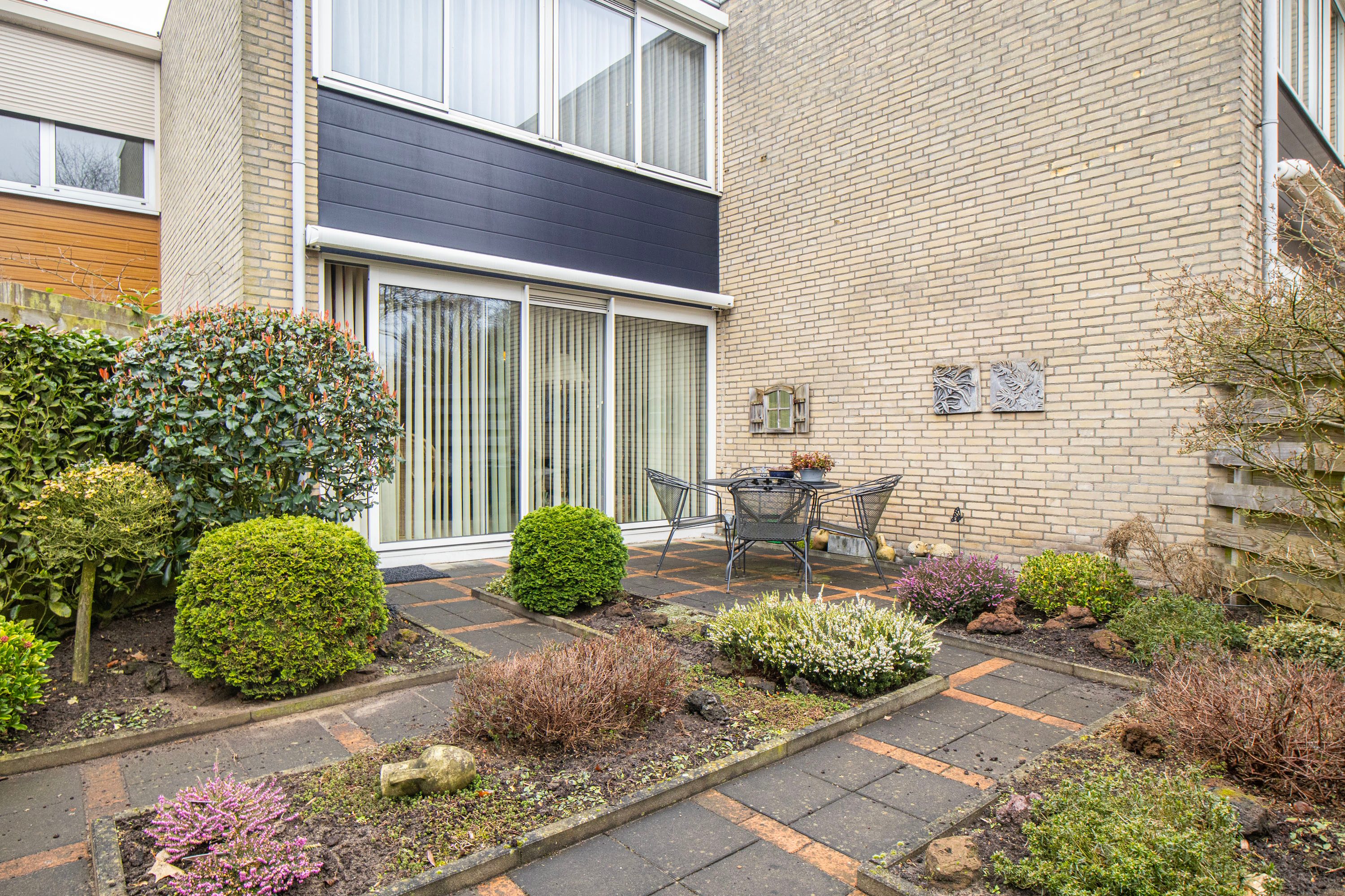De achtertuin is gelegen op het zuidoosten, waardoor je hier heerlijk van de zon kunt genieten. De tuin is goed onderhouden en biedt twee terrasgedeelten. In 2025 is er een nieuw elektrisch bedienbaar zonnescherm aangebracht aan de achtergevel. Aan de achterzijde van de tuin bevindt zich een brandgang.