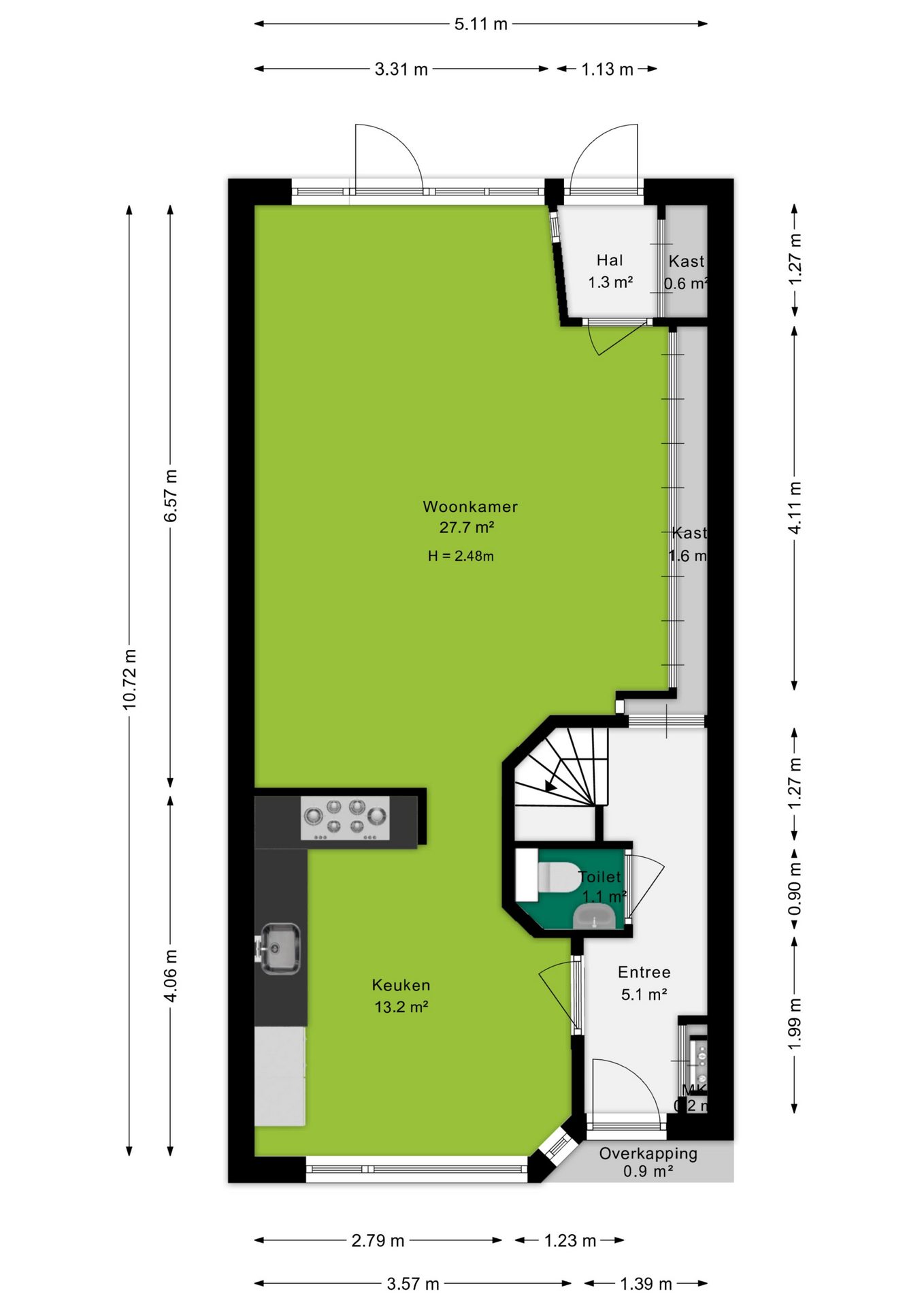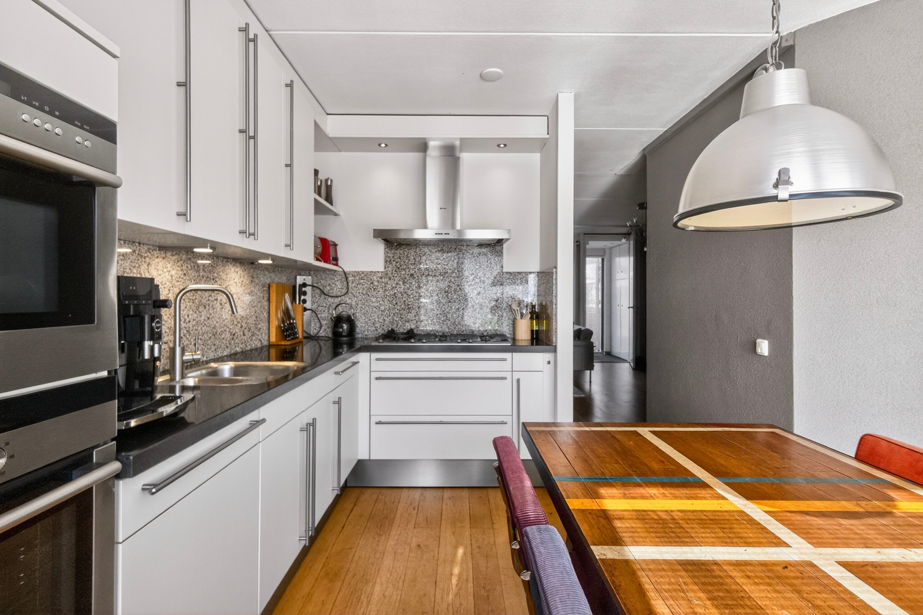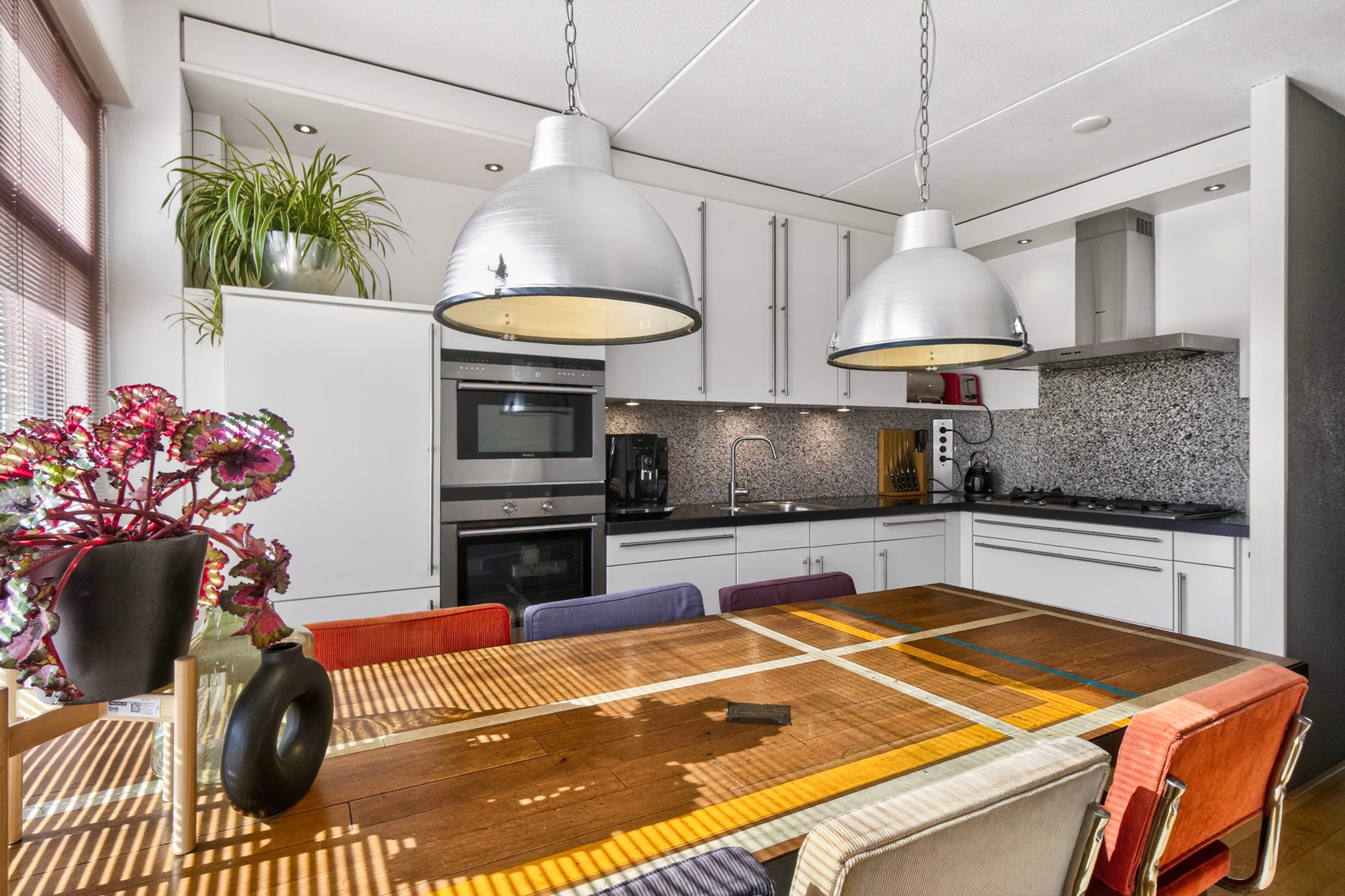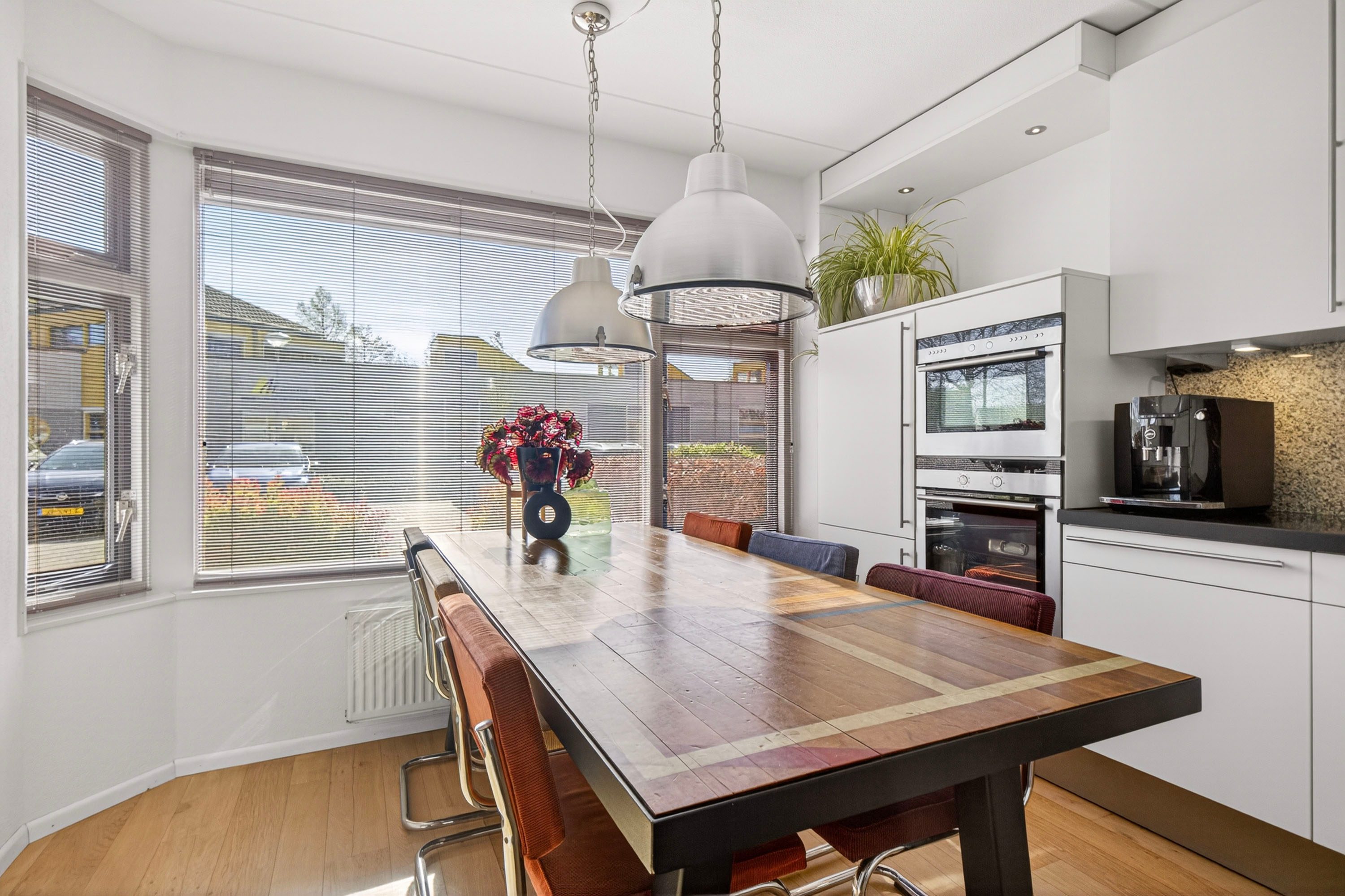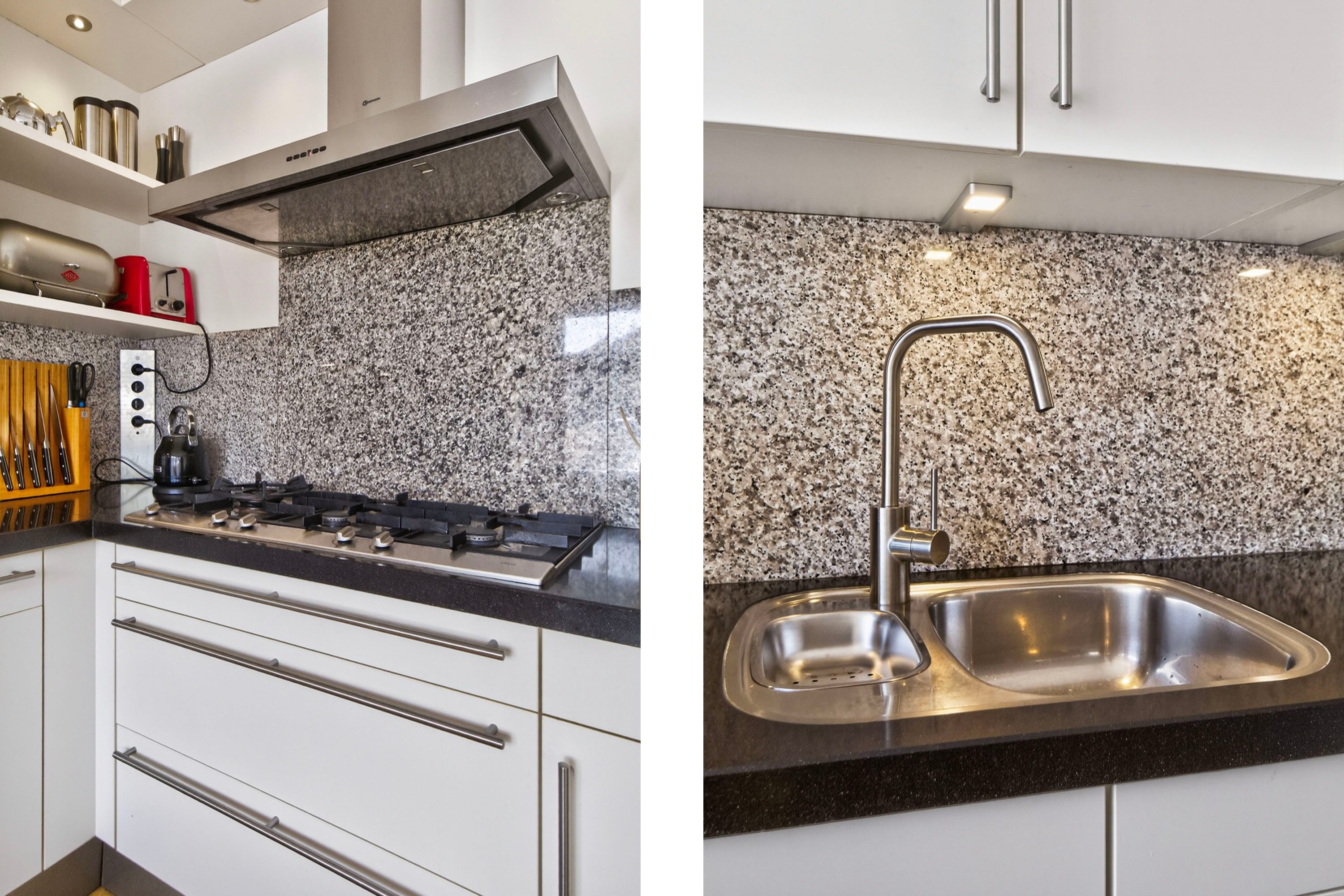 Via de hal met meterkast, toilet en trapopgang kom je in de woning. Aan de voorzijde bevindt zich de gezellige woonkeuken, voorzien van diverse inbouwapparatuur, waaronder een combi-oven/magnetron, vaatwasser, koelkast, vriezer, afzuigkap en een vijfpits gaskookplaat.