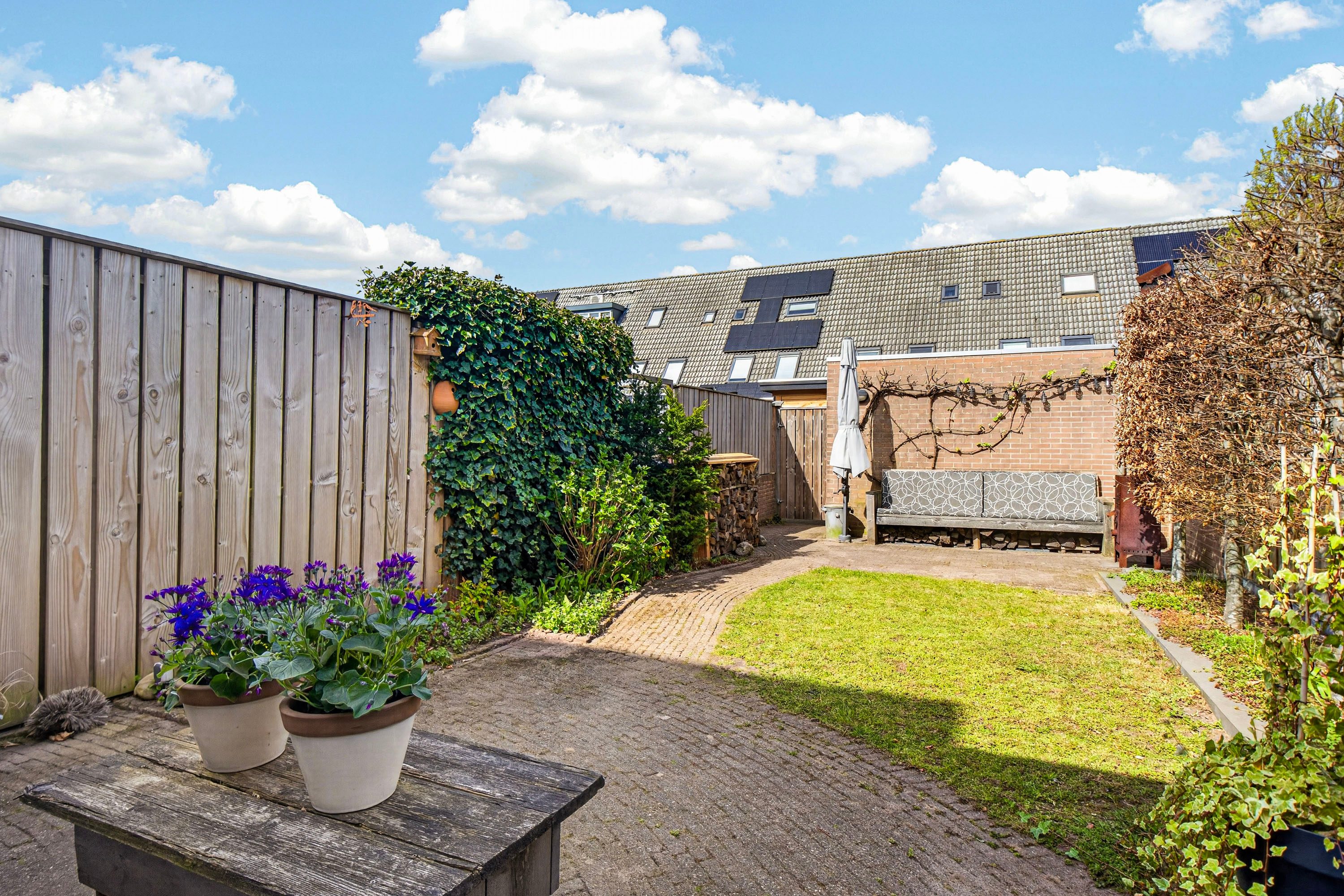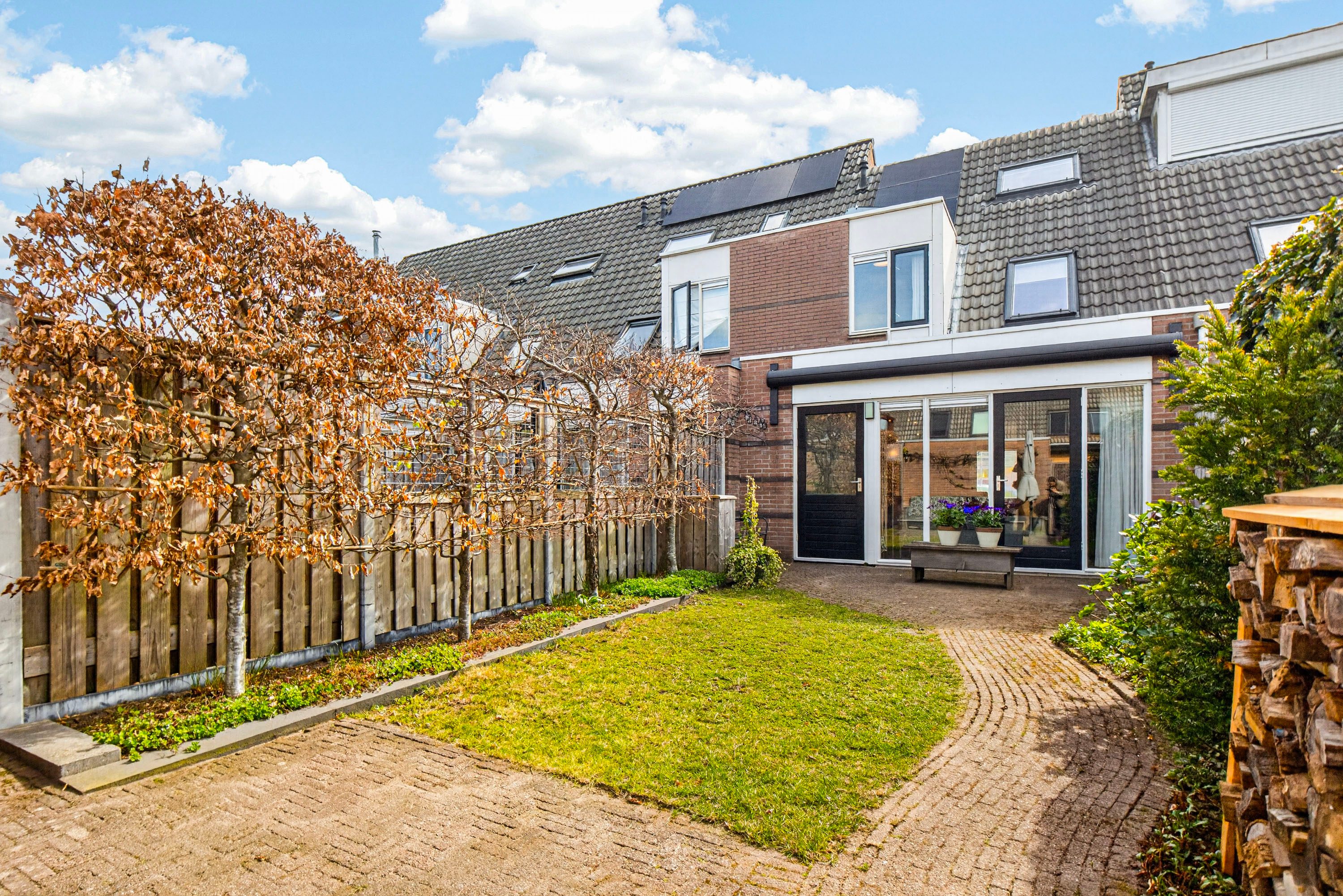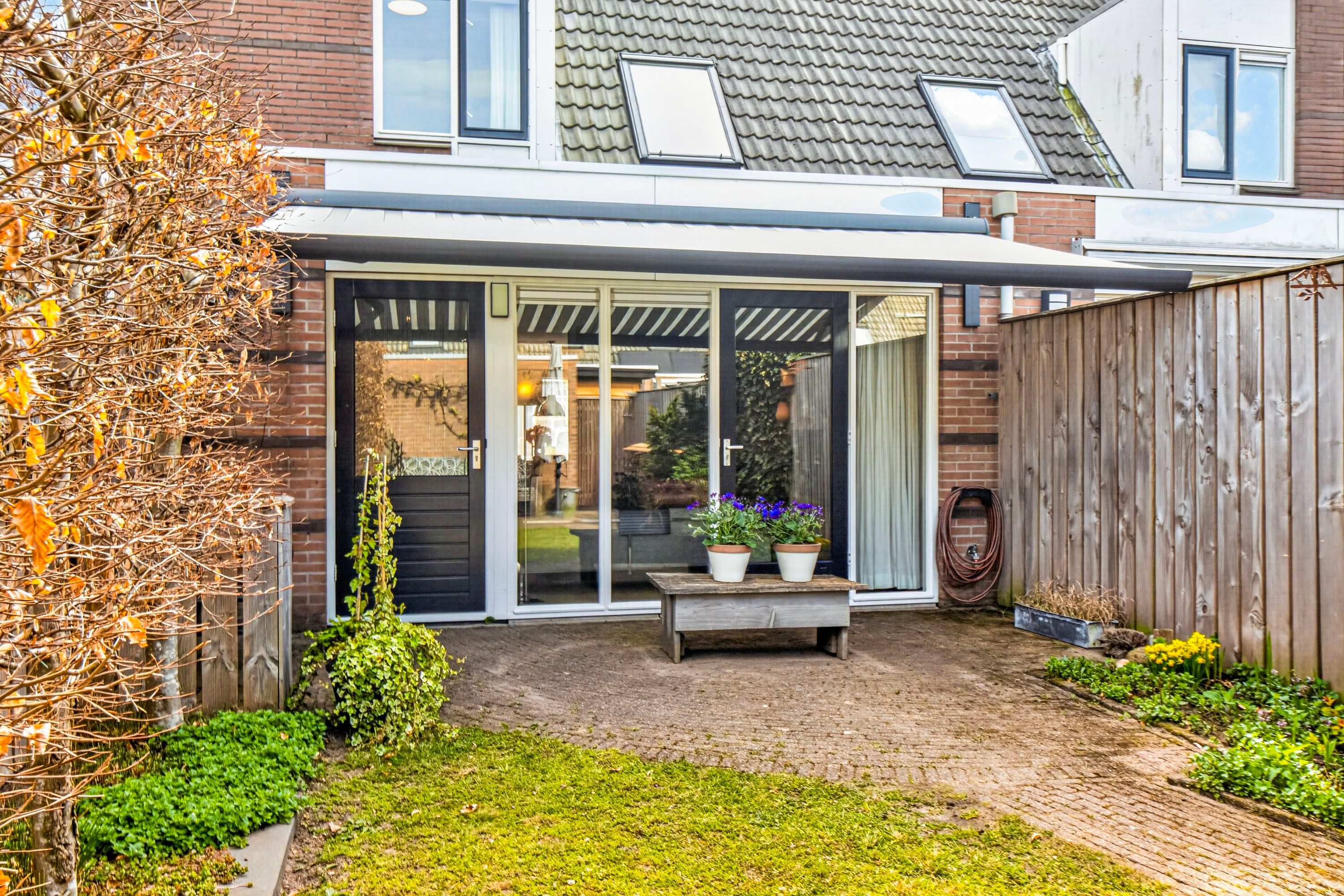 De achtertuin is gelegen op het noordwesten en biedt veel privacy. Dankzij de gunstige ligging geniet je hier van de middag- en avondzon. De tuin is verzorgd aangelegd, voorzien van een zonnescherm en beschikt over een achterom. Achterin de tuin staat een vrijstaande berging, ideaal voor fietsen en opslag.