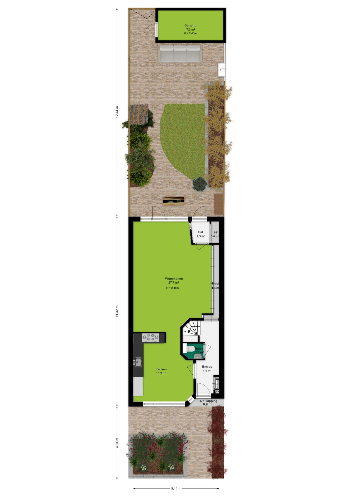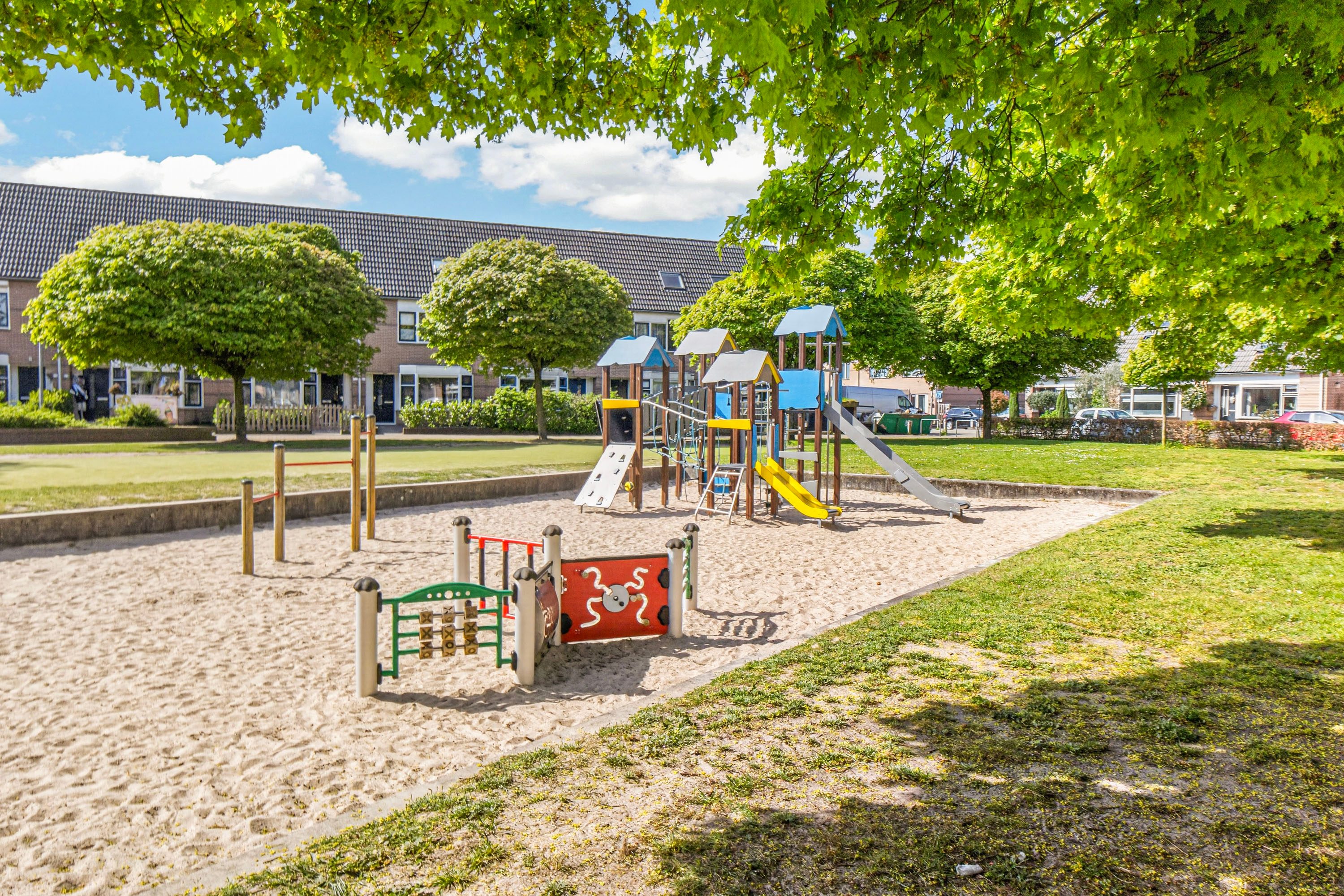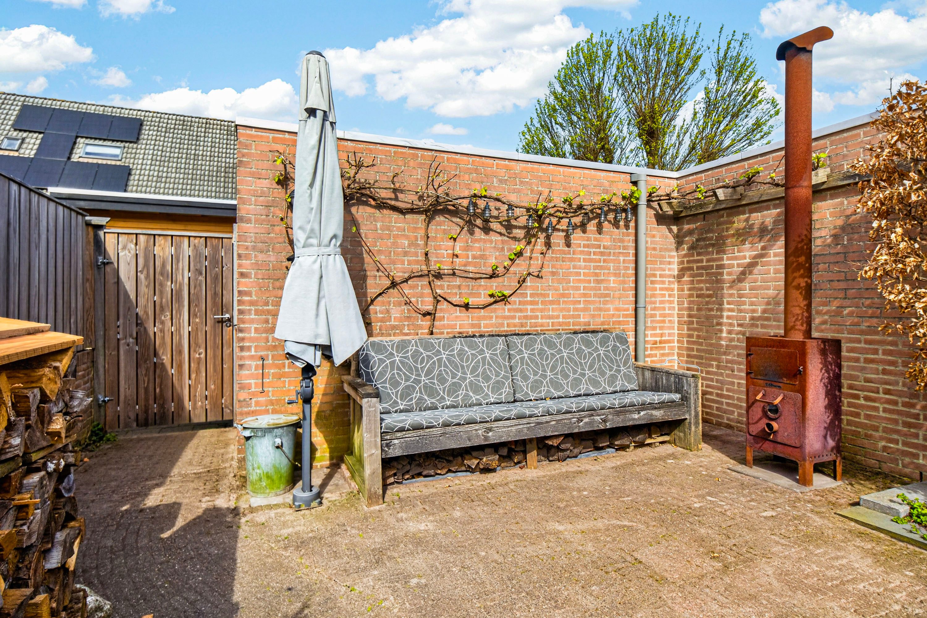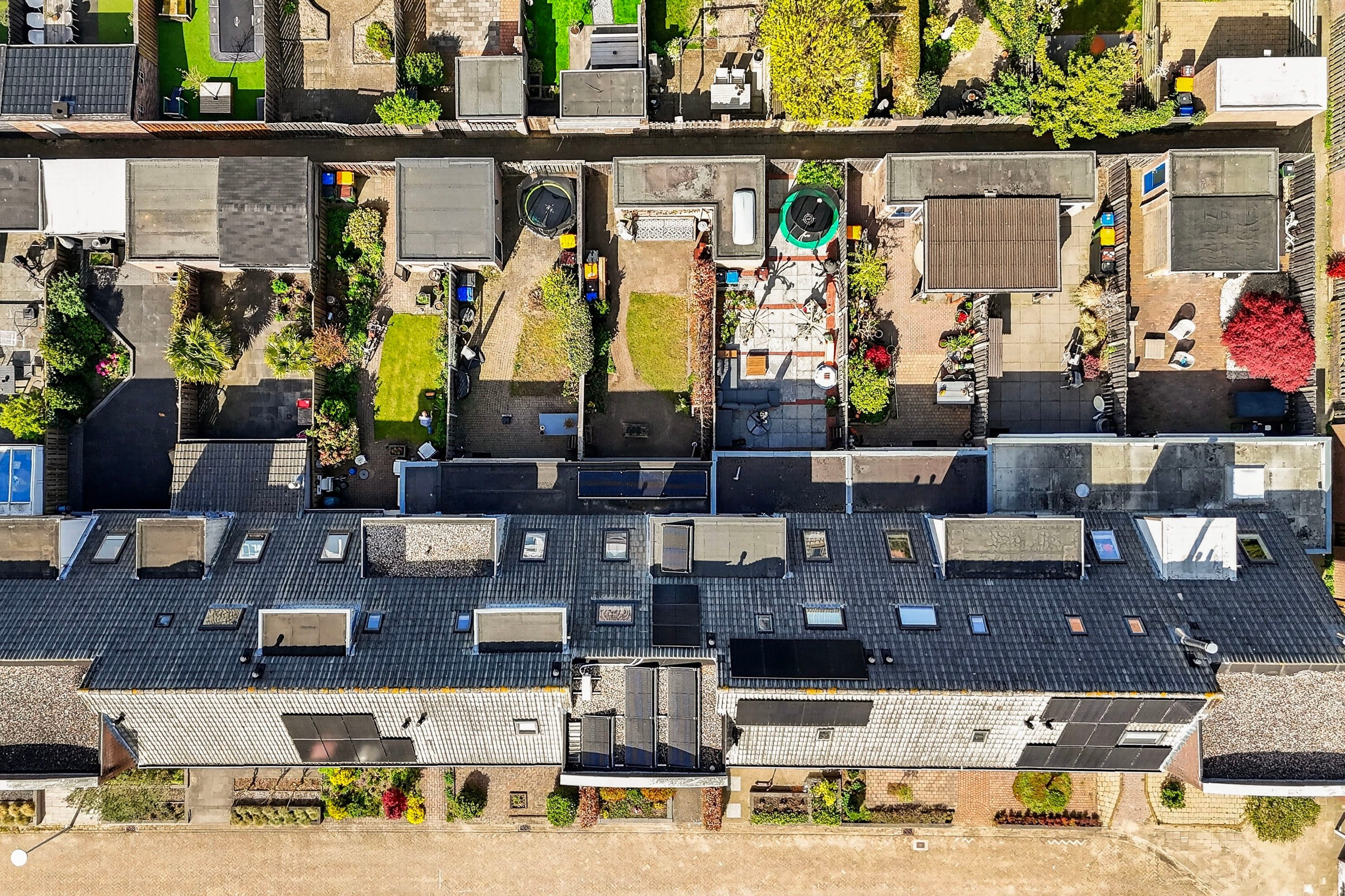 De achtertuin is gelegen op het noordwesten en biedt veel privacy. Dankzij de gunstige ligging geniet je hier van de middag- en avondzon. De tuin is verzorgd aangelegd, voorzien van een zonnescherm en beschikt over een achterom. Achterin de tuin staat een vrijstaande berging, ideaal voor fietsen en opslag.