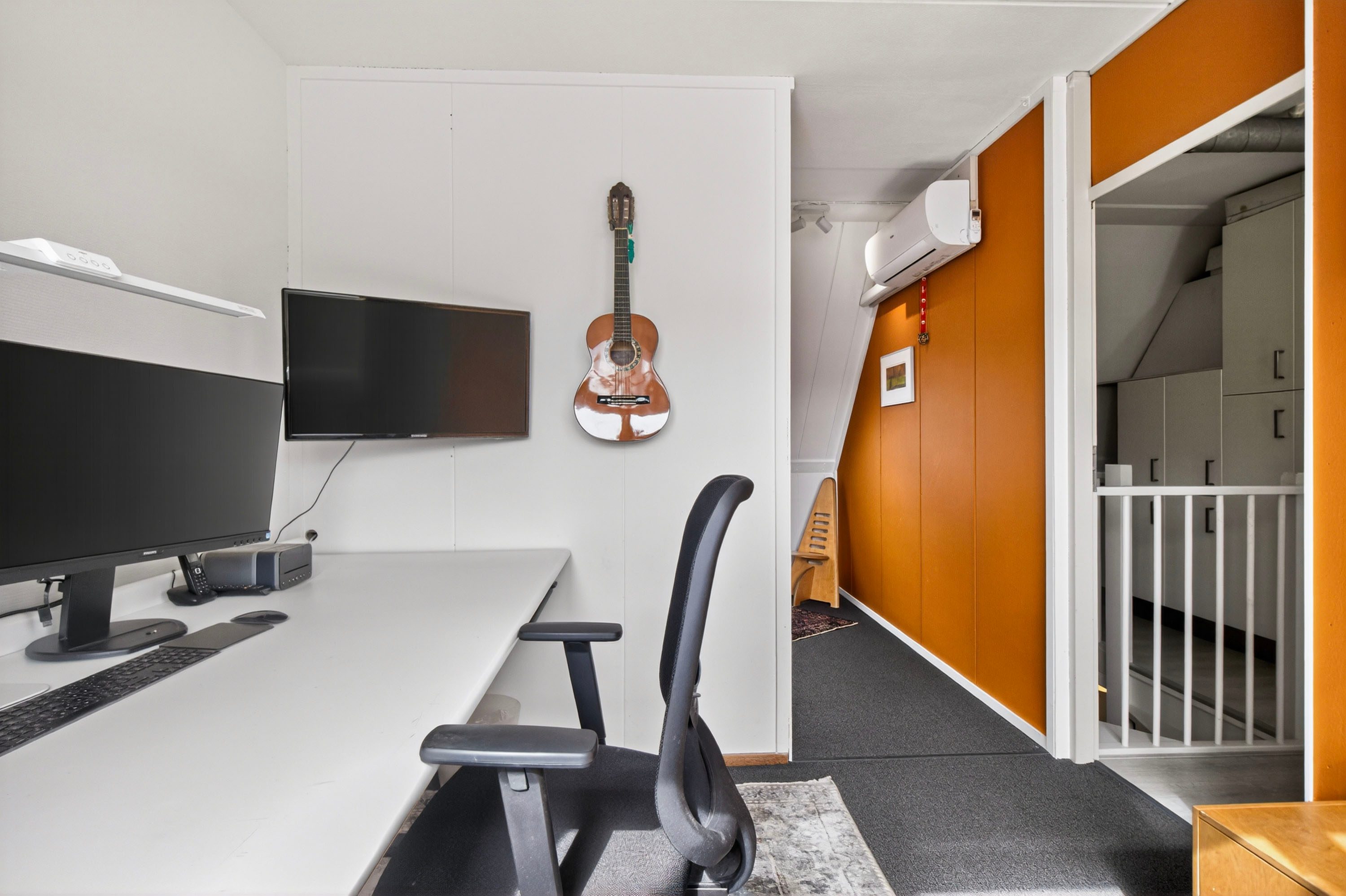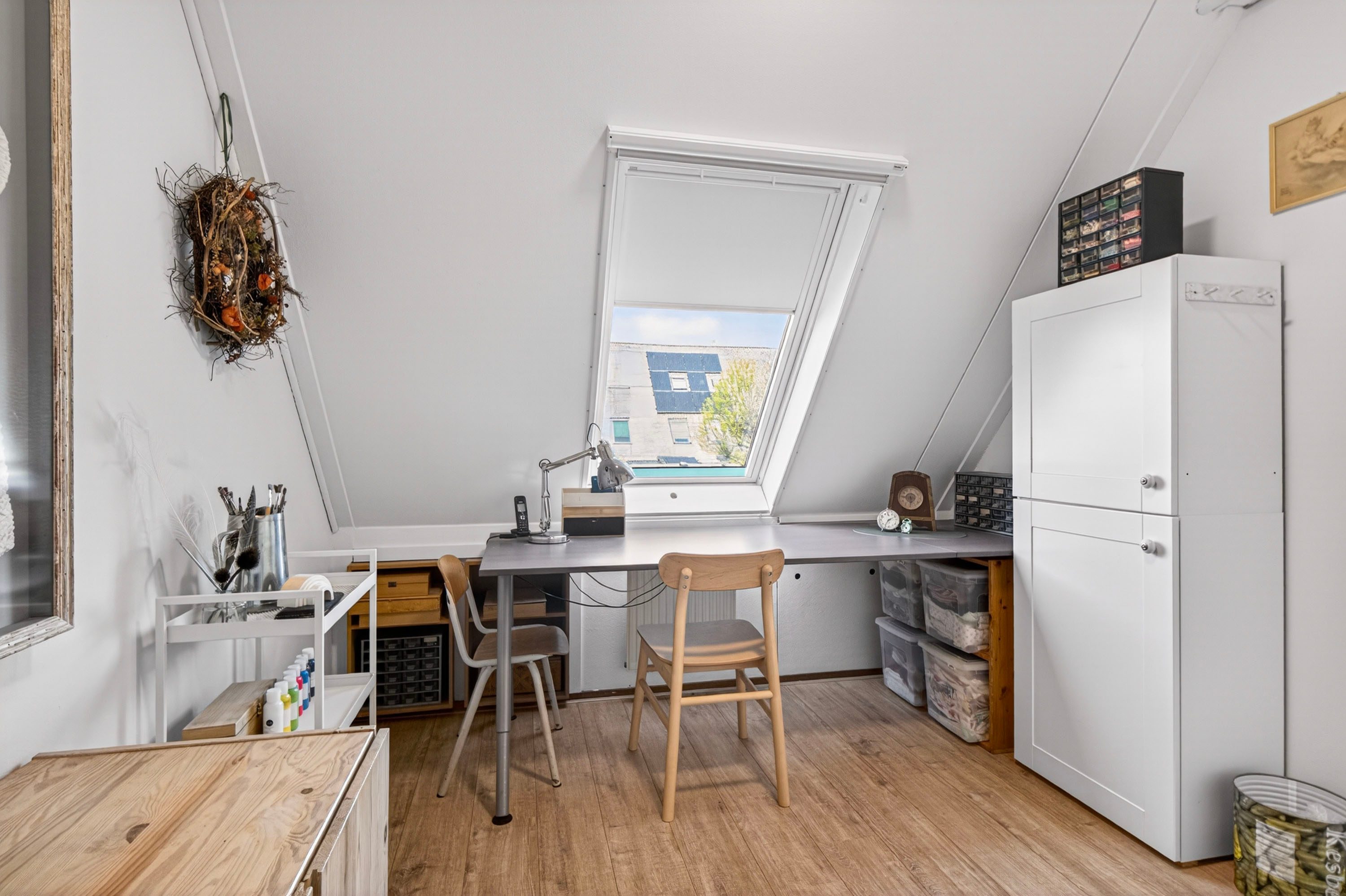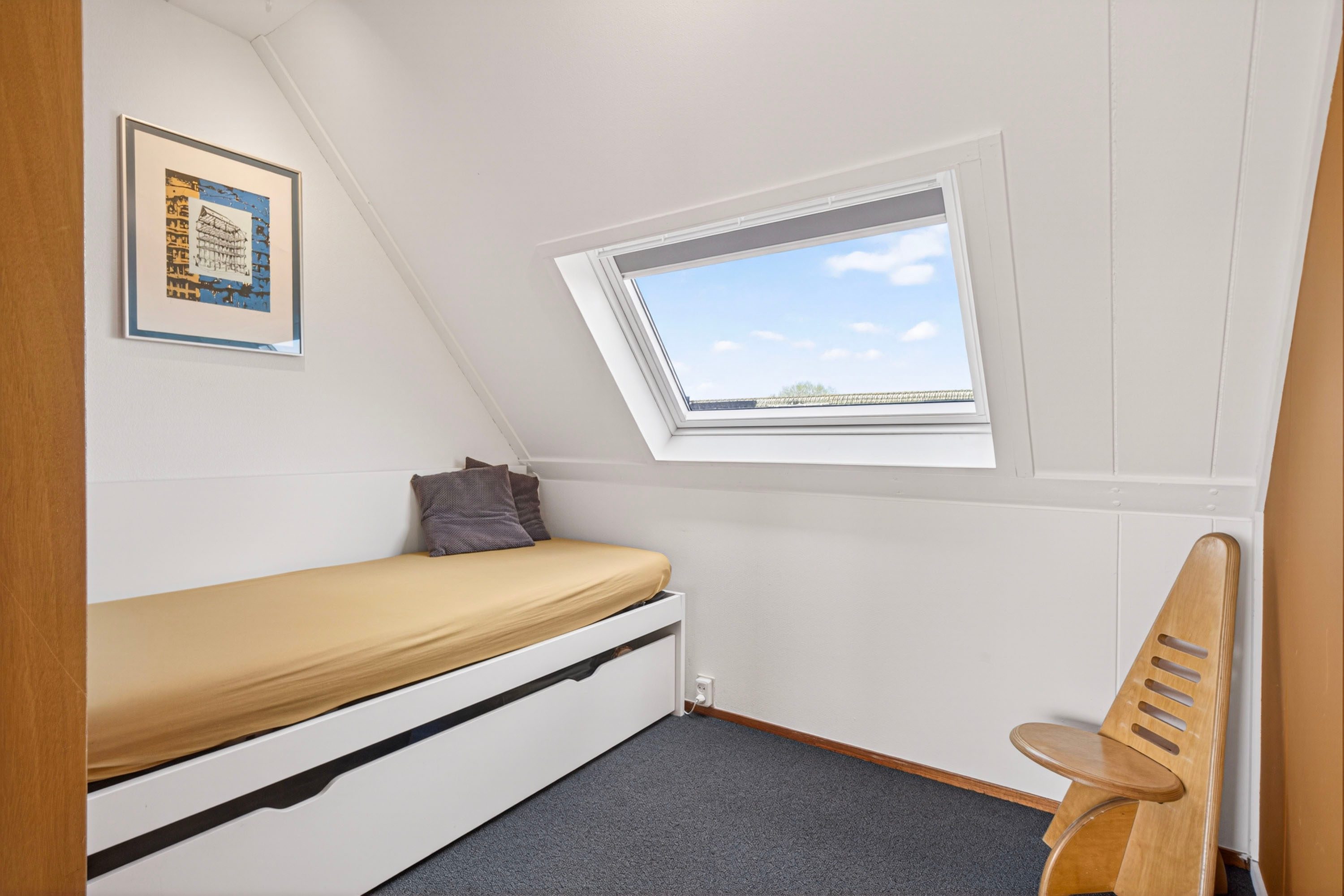 De zolderverdieping is praktisch ingedeeld en beschikt over een vierde slaapkamer (ca. 14 m²), voorzien van airconditioning (2024). Deze ruimte is uitstekend geschikt als werk-, hobby- of logeerkamer. Daarnaast bevinden zich hier de opstelling van de cv-ketel (Nefit, 2019) en de aansluitingen voor de wasapparatuur.