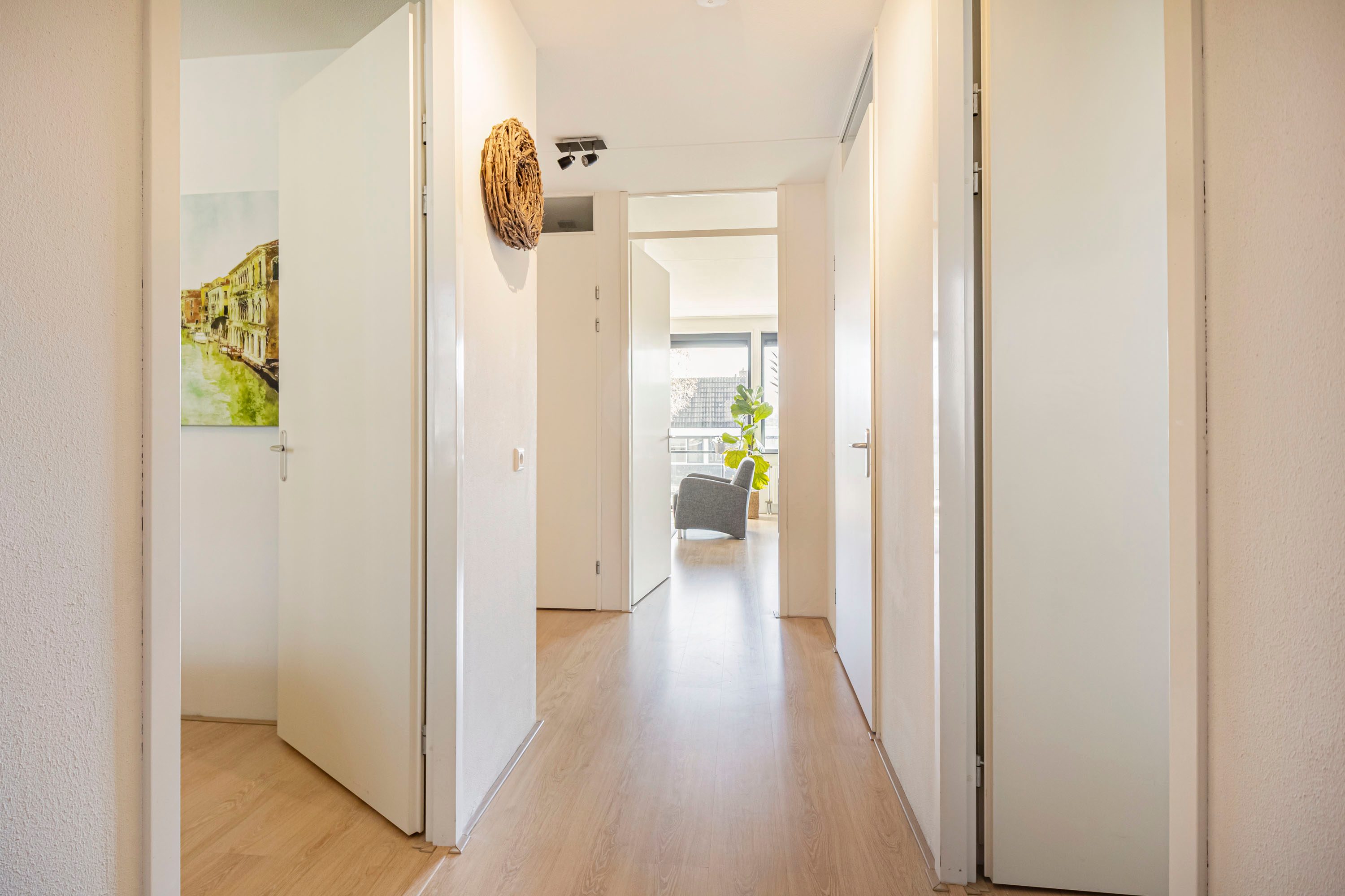 Bij binnenkomst in het appartement kom je in de hal met meterkast en toegang tot alle vertrekken.