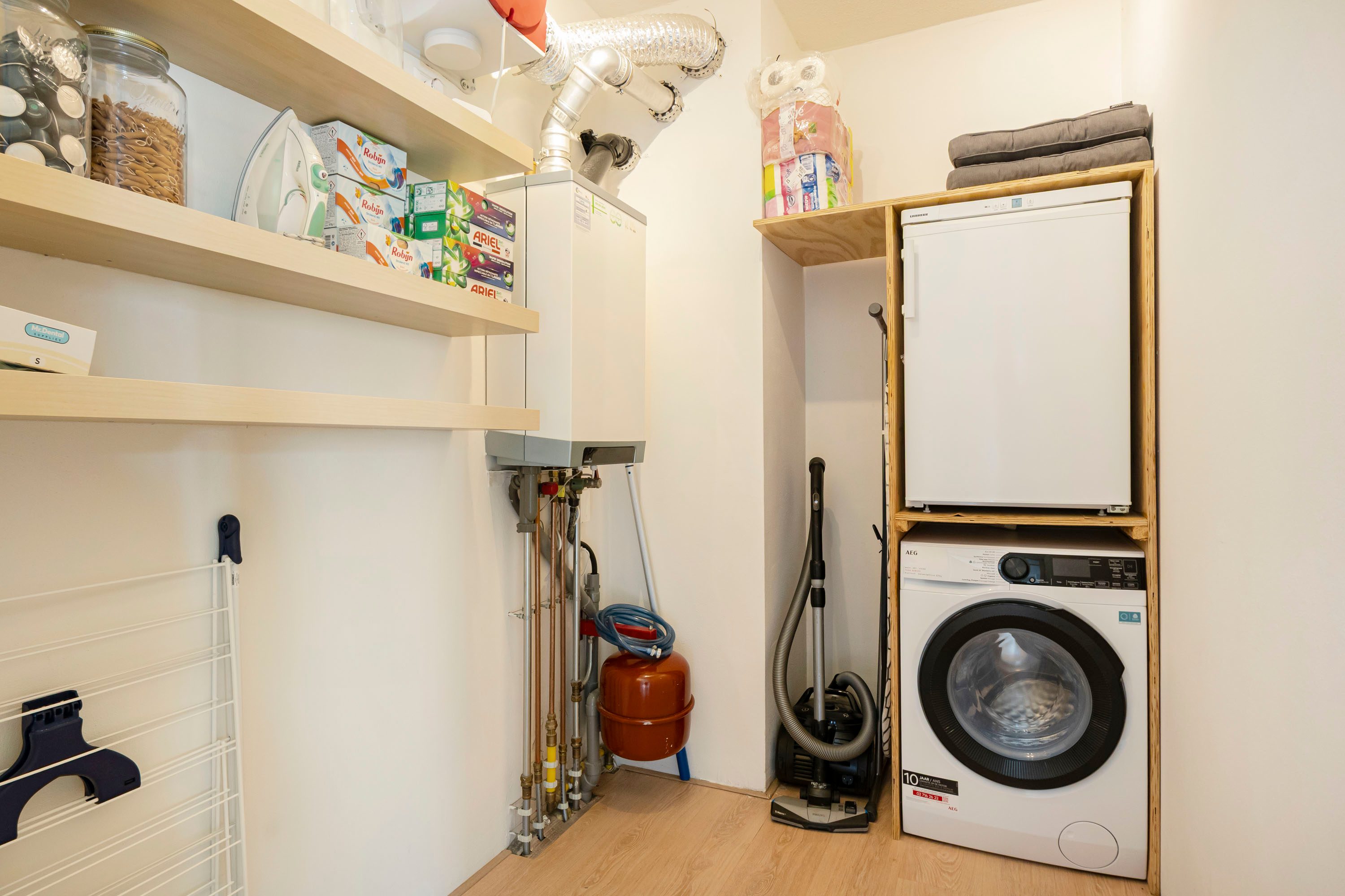 De ruime inpandige berging biedt praktische opbergruimte en hier bevinden zich tevens de CV-ketel en de wasmachineaansluiting.