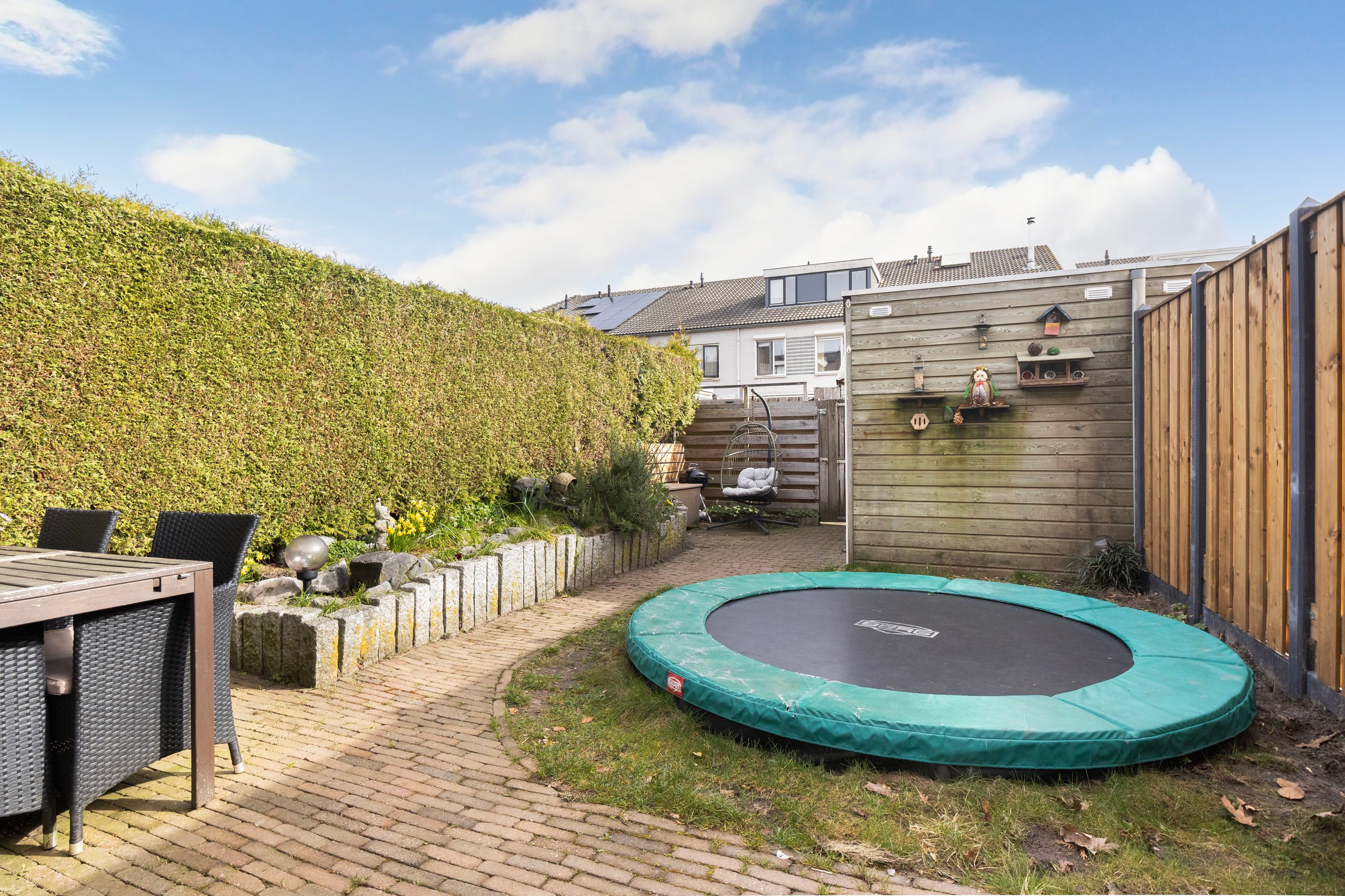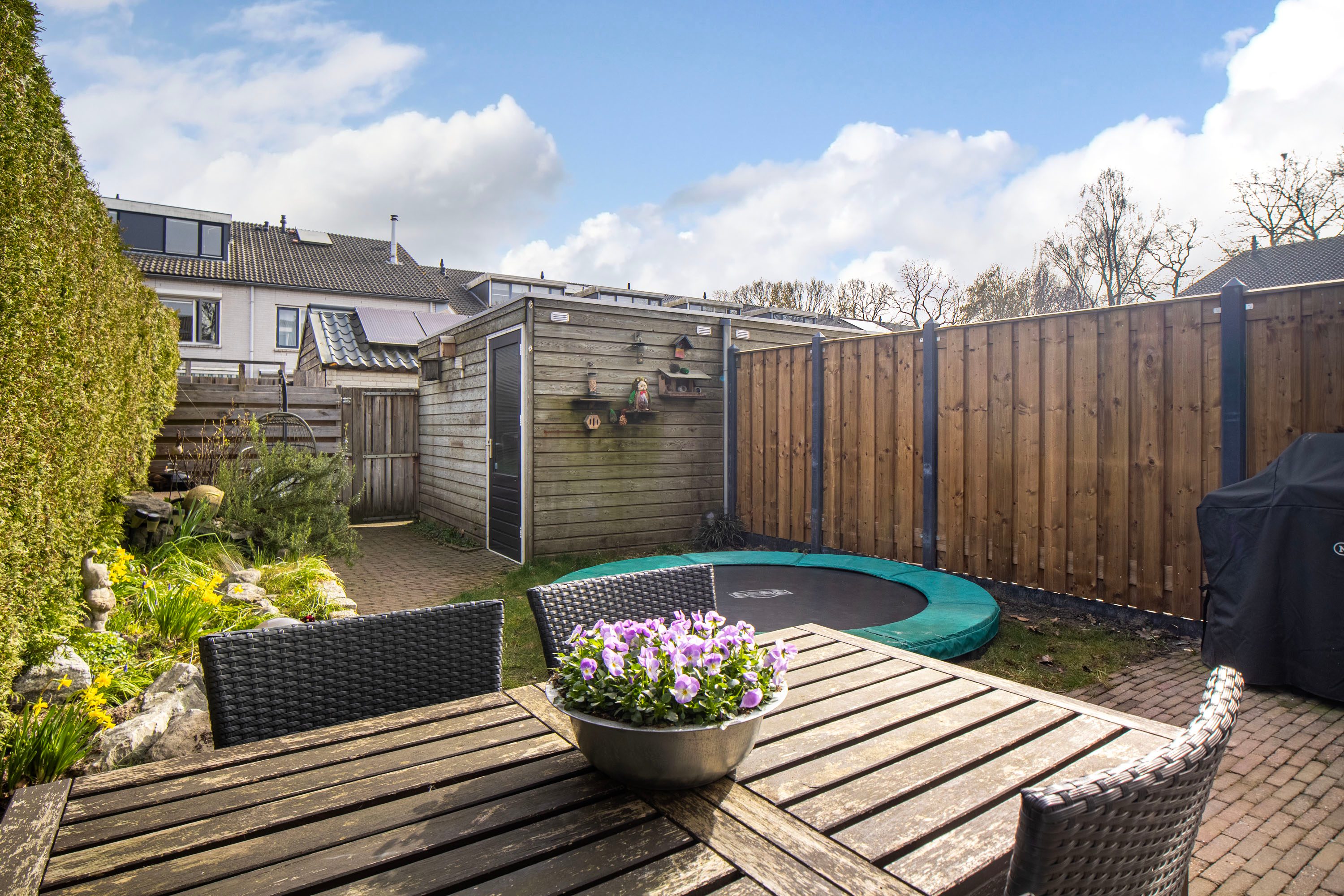 De achtertuin ligt op het oosten, waardoor je hier heerlijk kunt genieten van het buitenleven! De tuin heeft een oppervlakte van circa 62 m² en vormt een fijne plek om buiten te zitten of te ontspannen. Via de openslaande deuren vanuit de woonkamer stap je zo de tuin in, wat zorgt voor een prettige verbinding tussen binnen en buiten. In de tuin bevindt zich een praktische berging van circa 8 m², ideaal voor fietsen en tuingereedschap. Daarnaast beschikt de tuin over een handige achterom.