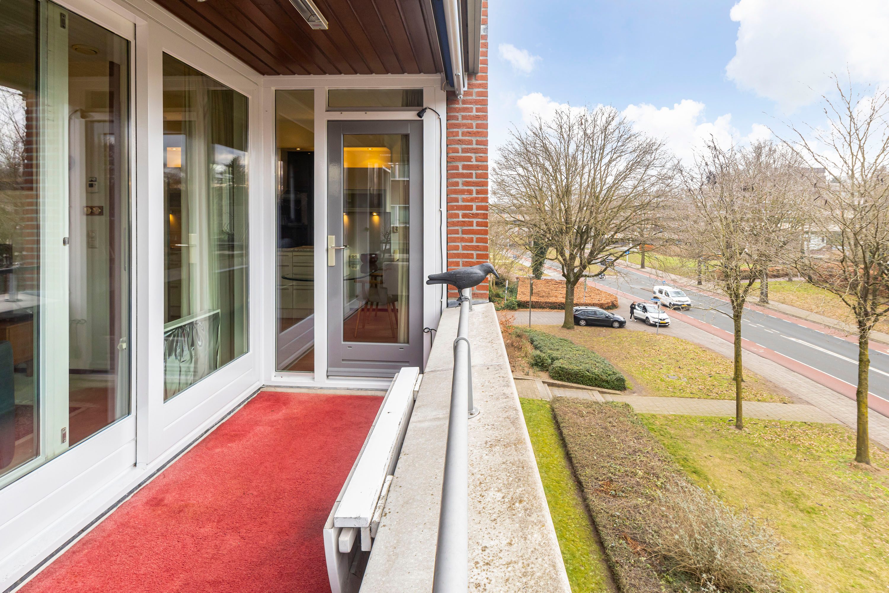 Het balkon, gelegen op het zuidoosten, heeft een oppervlakte van circa 6 m² en is bereikbaar vanuit zowel de woonkamer als de keuken. Een fijne plek om ’s ochtends en overdag van de zon te genieten. Wanneer je liever in de schaduw zit, biedt het aanwezige zonnescherm uitkomst.