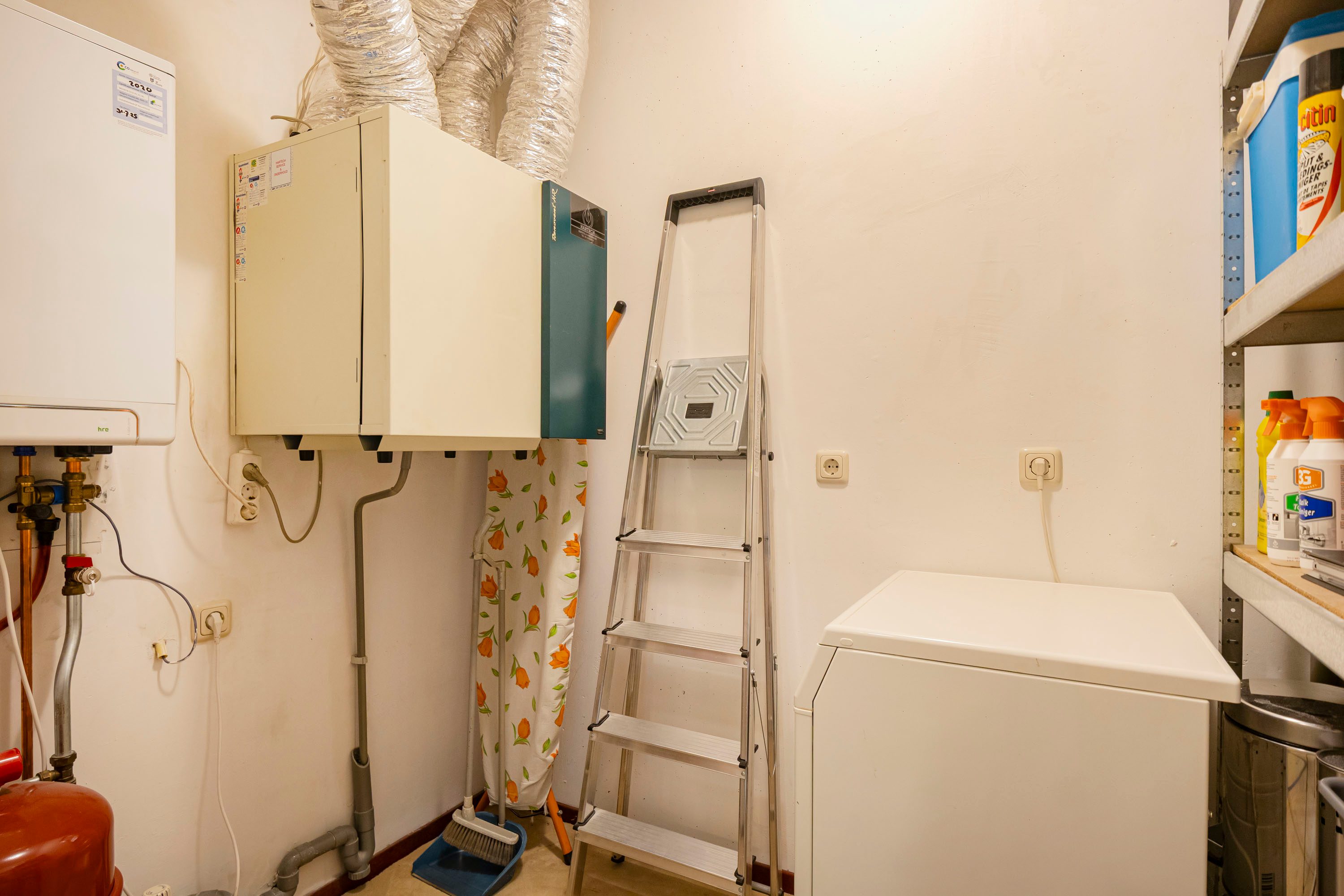 Verder beschikt het appartement over een vaste kast en een berging met de CV-ketel, wasmachineaansluiting en mechanische ventilatie. Ook is hier ruimte voor extra voorraad of huishoudelijke apparatuur.