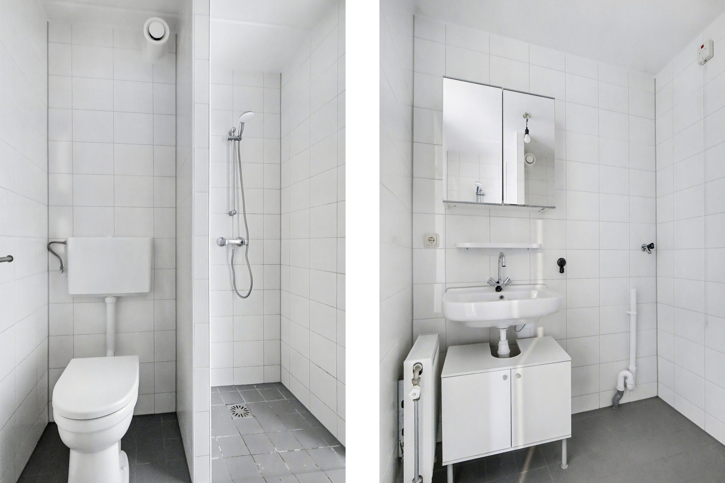 Centraal in de woning ligt de badkamer, voorzien van een inloopdouche, wastafelmeubel, toilet en de aansluiting voor de wasmachine.