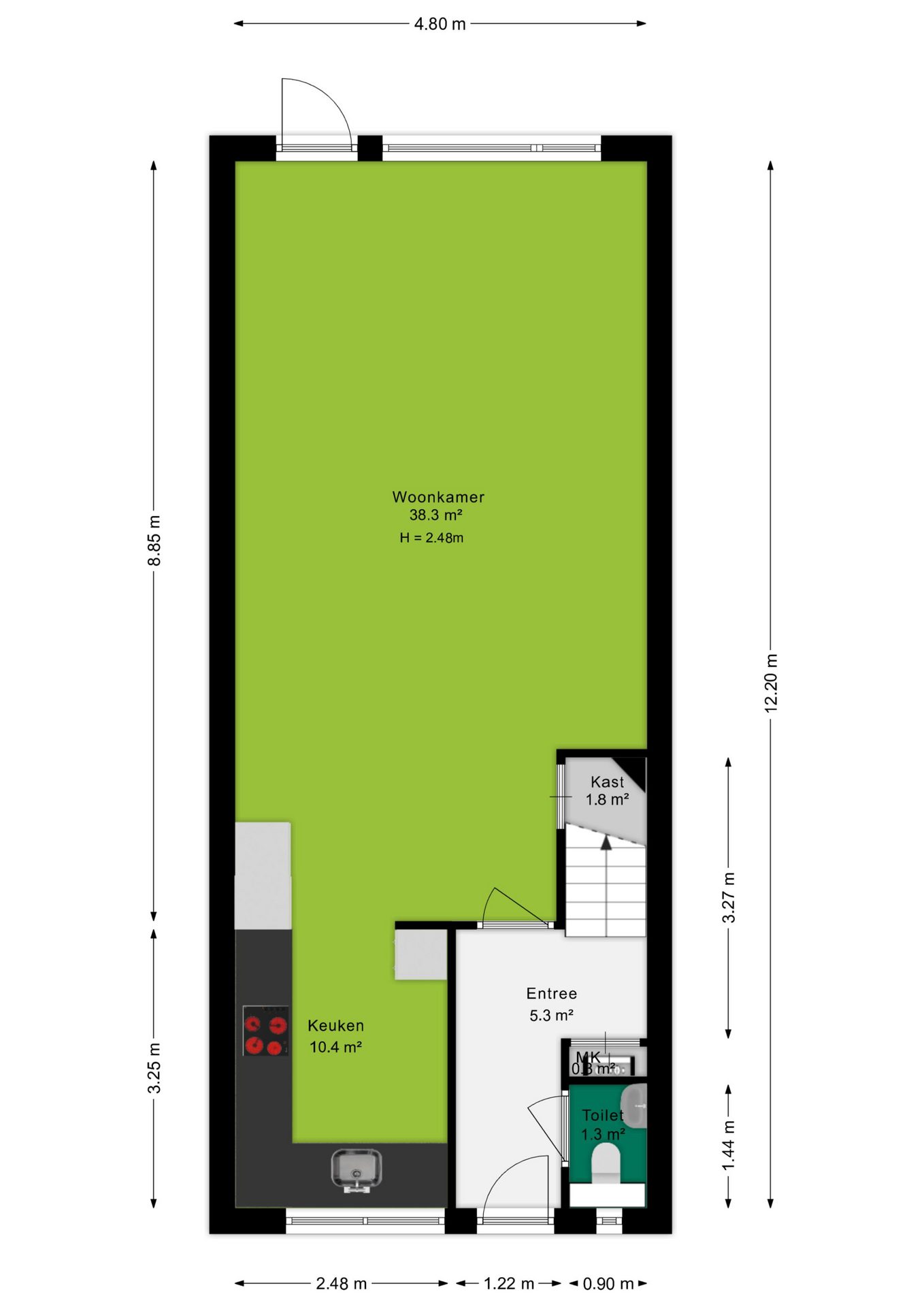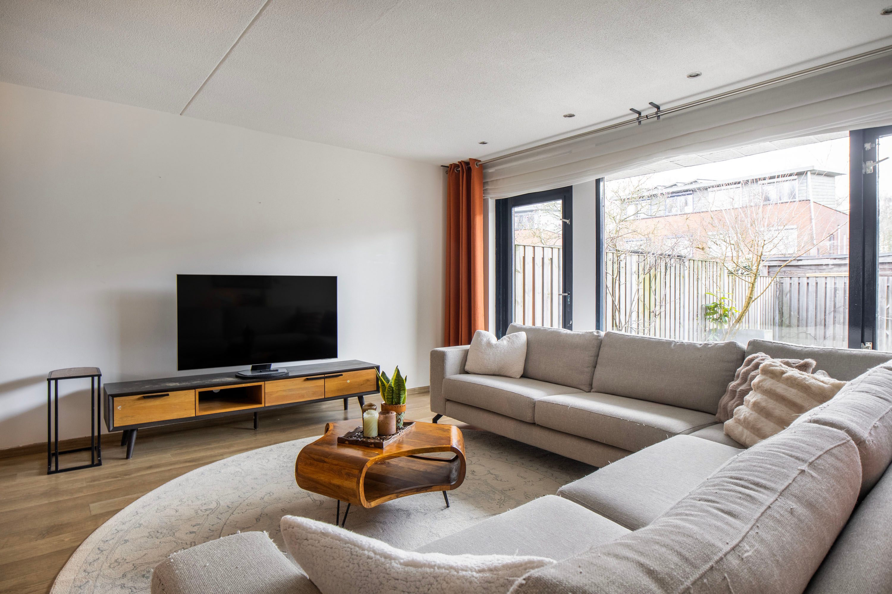 De uitgebouwde woonkamer van circa 38 m² is direct een van de sterke punten van de woning. De ruimte is licht, praktisch in te delen en biedt volop plek voor een ruime zithoek én een grote eettafel. Dankzij de tuingerichte ligging heb je bovendien een fijne verbinding met buiten.