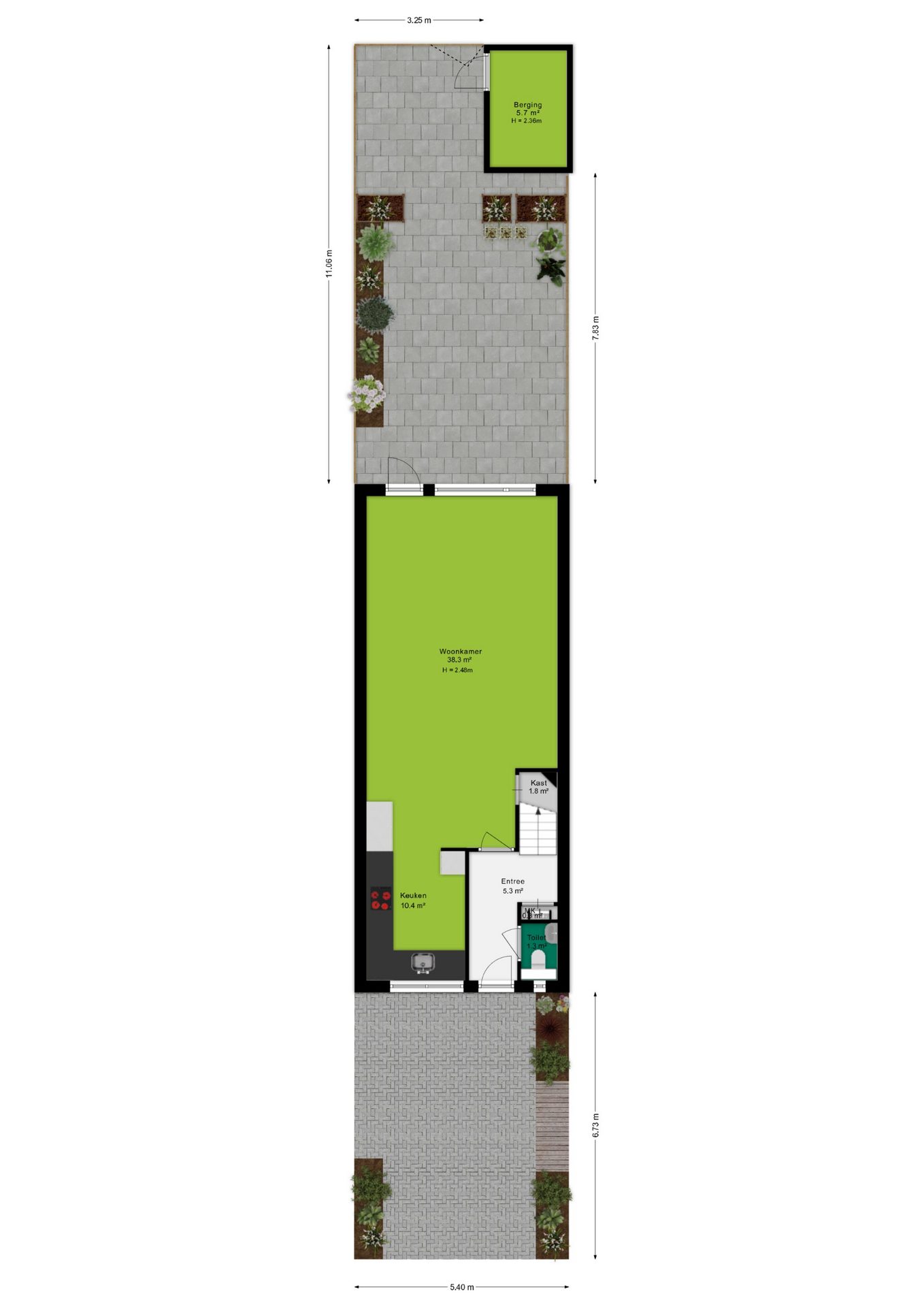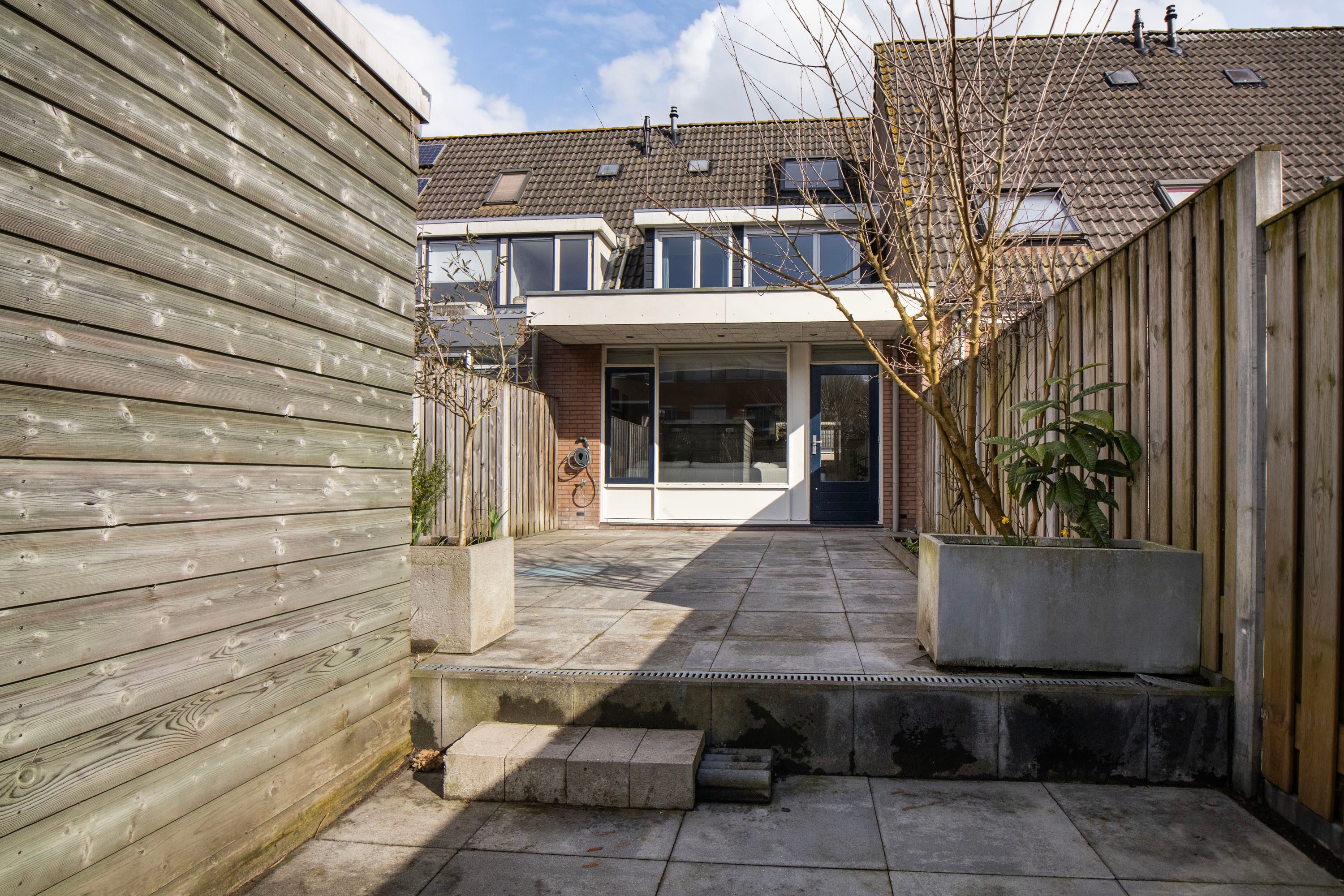 De achtertuin is in 2017 fraai aangelegd en ligt op het zonnige westen. Hier geniet je volop van de middag- en avondzon; perfect voor lange zomeravonden. De tuin beschikt over een achterom en een houten berging, ideaal voor fietsen en tuingereedschap. Een fijne, onderhoudsvriendelijke buitenruimte waar je echt kunt ontspannen.