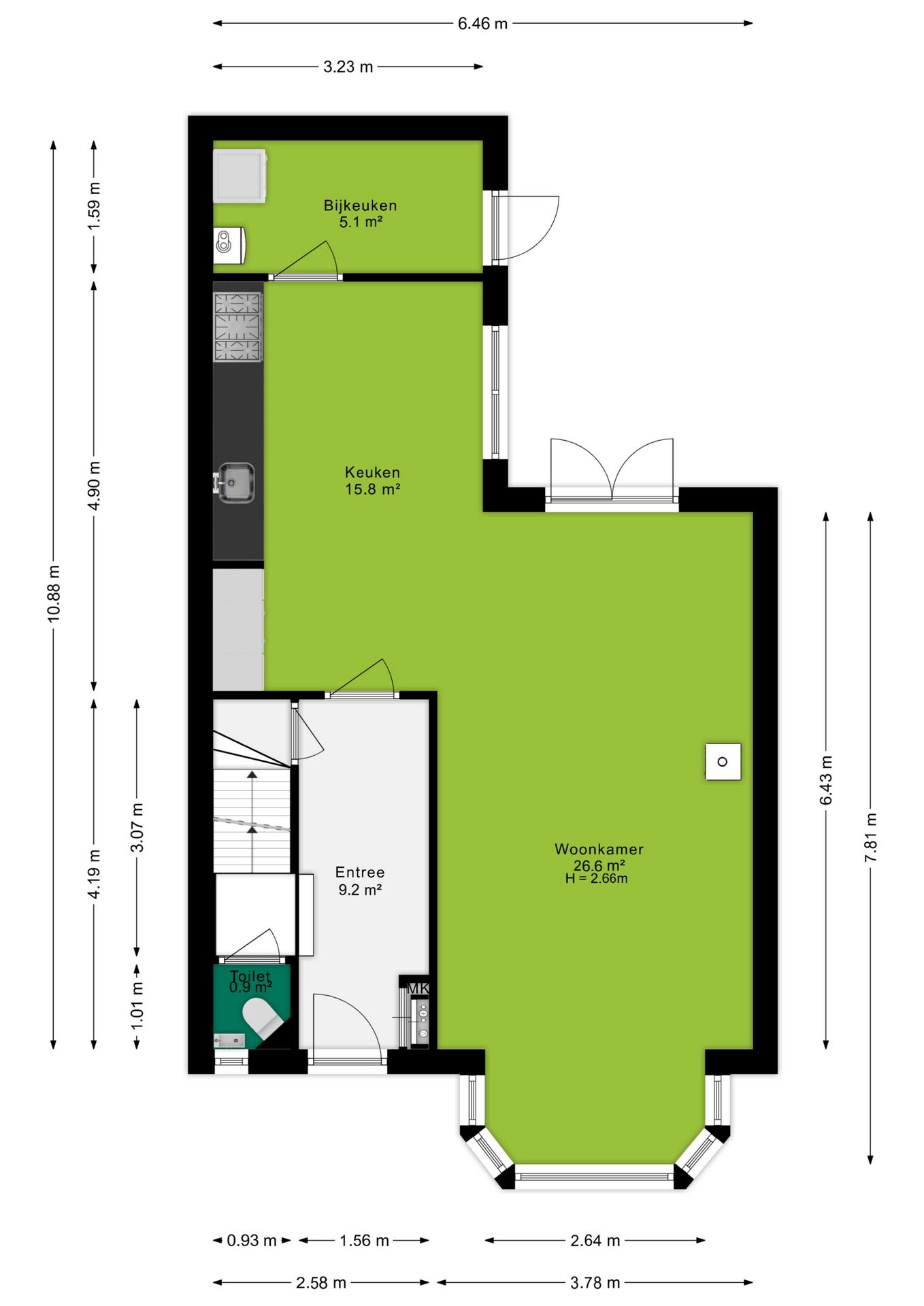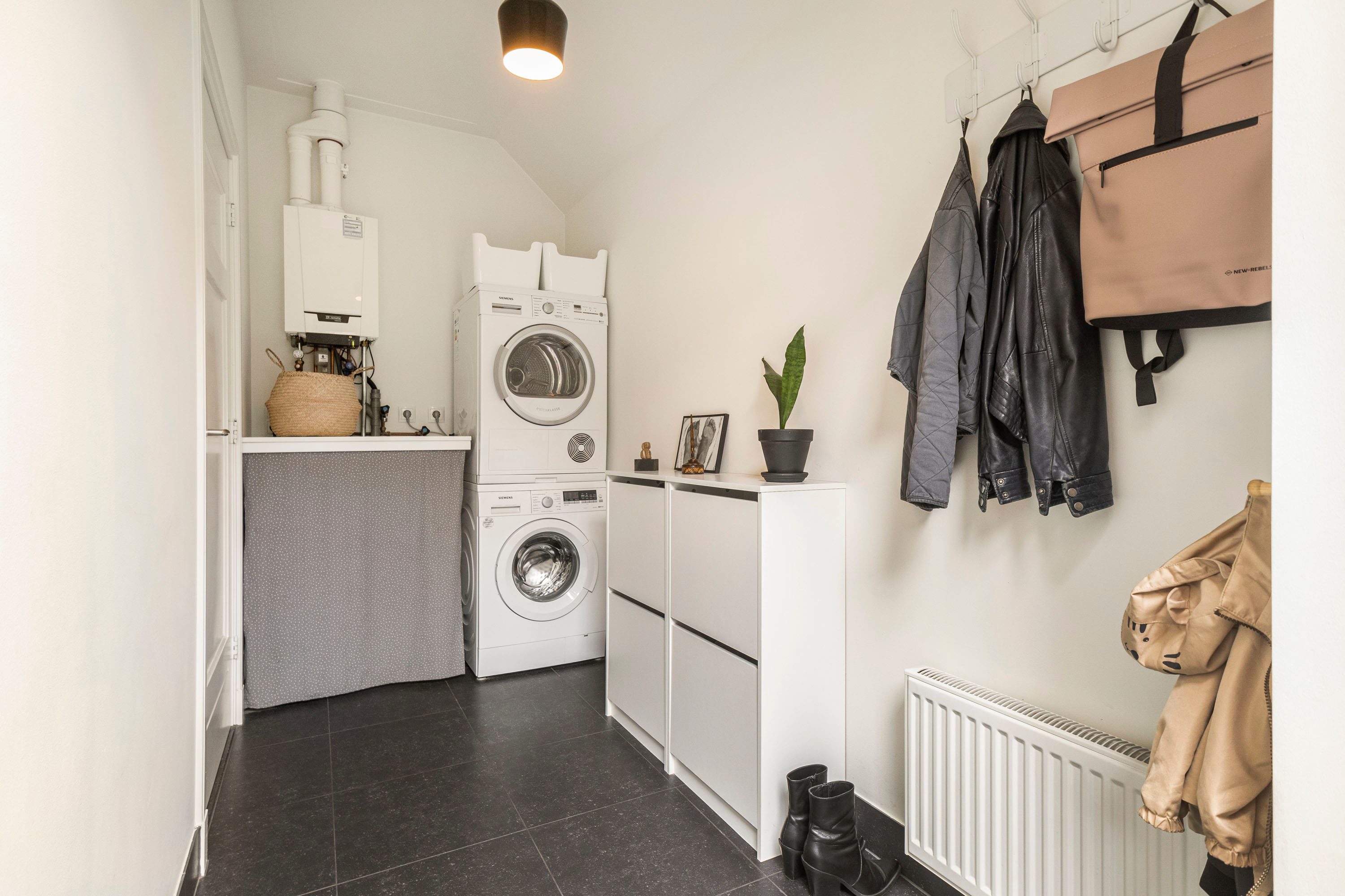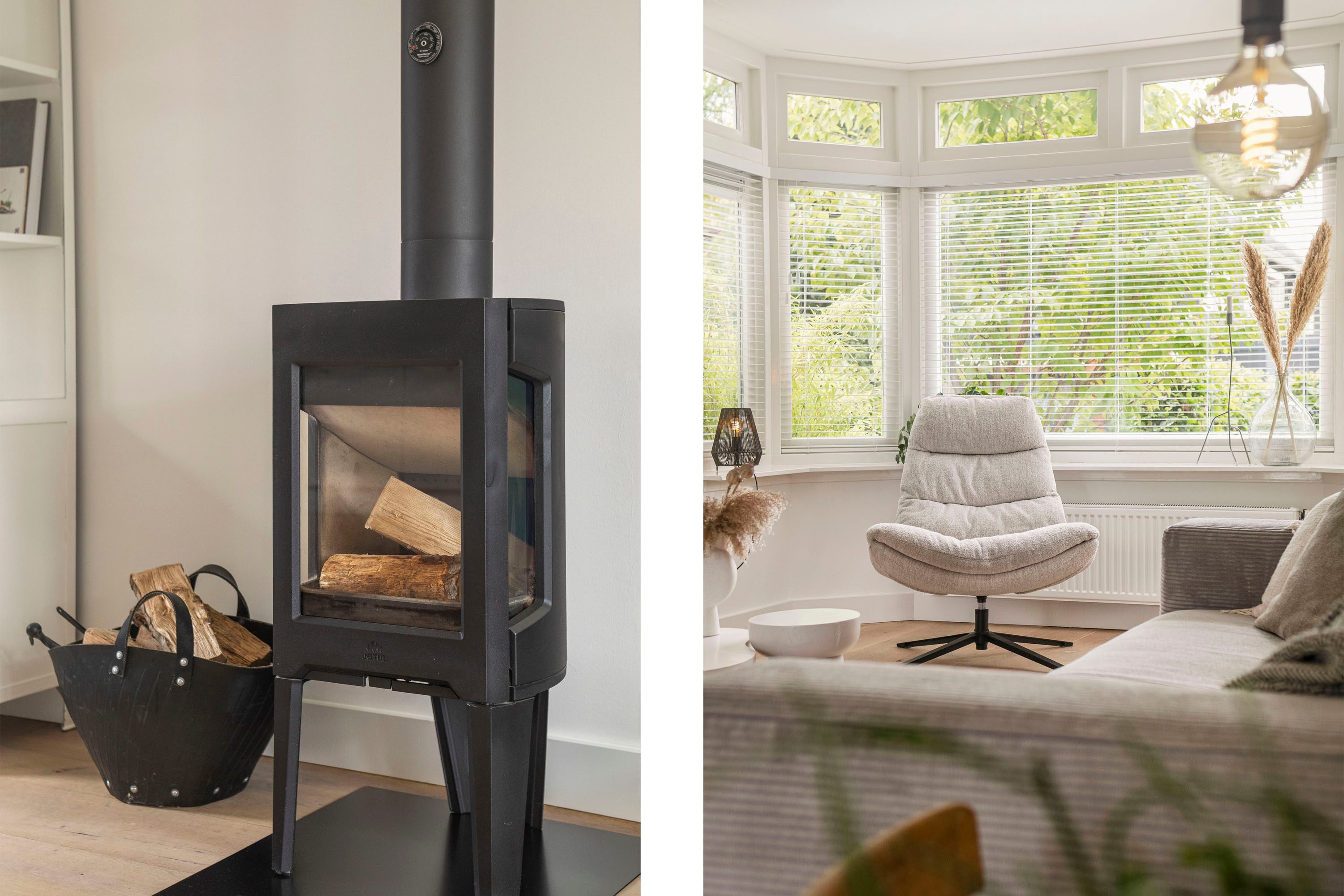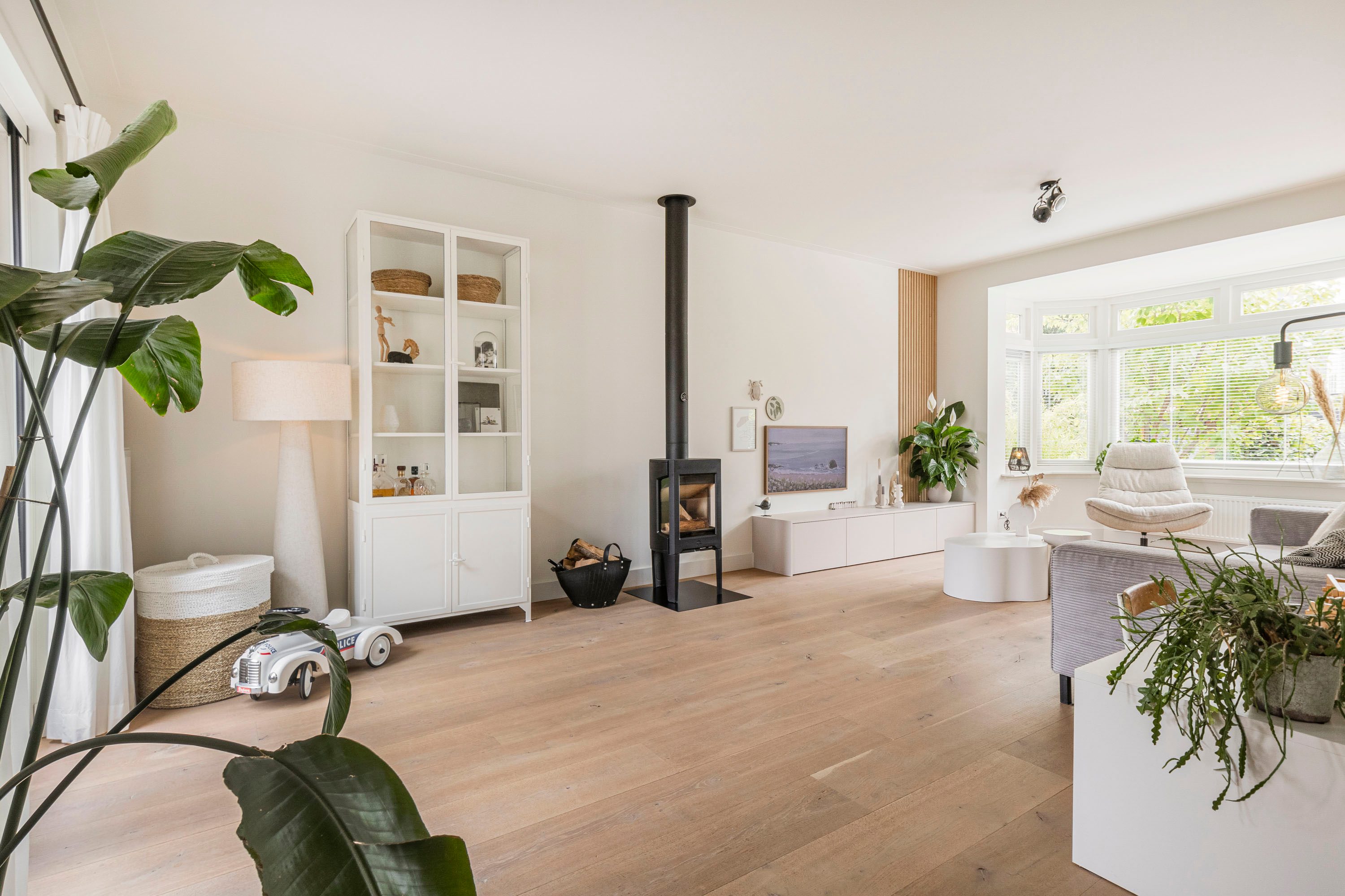 Bij binnenkomst kom je in de hal terecht, waar ook het toilet en de toegang tot de kelder aanwezig zijn. Vanuit deze hal betreed je de lichte woonkamer, die is voorzien van een eikenhouten vloer, een erker, een houtkachel en openslaande deuren die direct naar de tuin leiden. De open indeling zorgt voor een prettige verbinding met de keuken, die is voorzien van een gasfornuis, afzuigkap, combi-oven, koelkast en vaatwasser. Er is voldoende ruimte voor een gezellige eethoek. Aansluitend vind je de bijkeuken met cv-ketel, wasmachine en droger. De woonkamer, keuken en bijkeuken zijn voorzien van vloerverwarming.