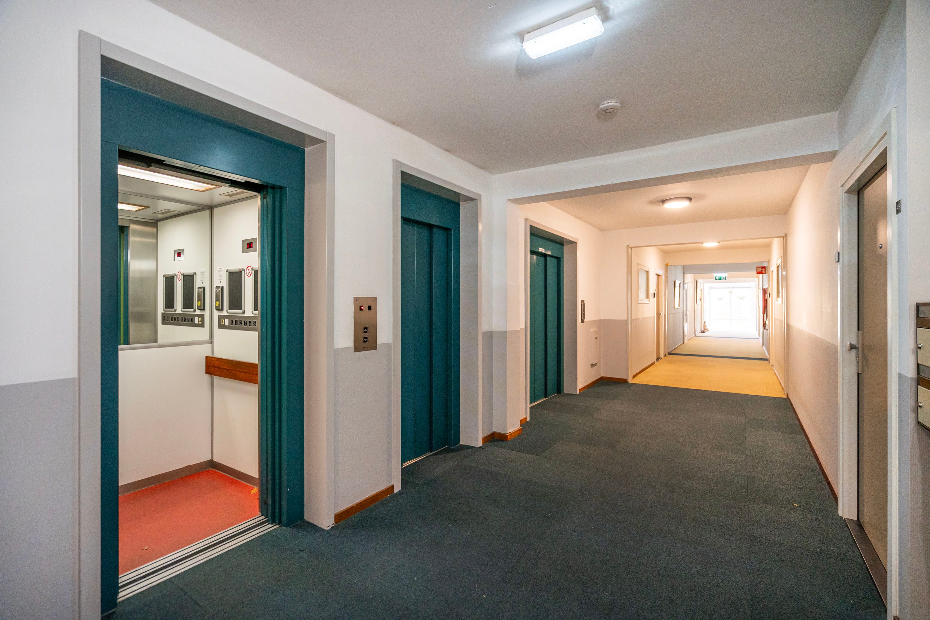 Via een afgesloten entree kom je in de centrale hal. Direct naast deze hal bevindt zich een recreatiezaal, een ontmoetingsplek of waar je een kop koffie kunt drinken. In de onderbouw vind je drie fietsenstallingen, inclusief voorzieningen voor elektrische fietsen, en een aparte ruimte voor papier- en plasticafval. Ook jouw eigen berging is hier te vinden. Met één van de drie liften of via de trap bereik je de vierde verdieping, waar het appartement zich bevindt.