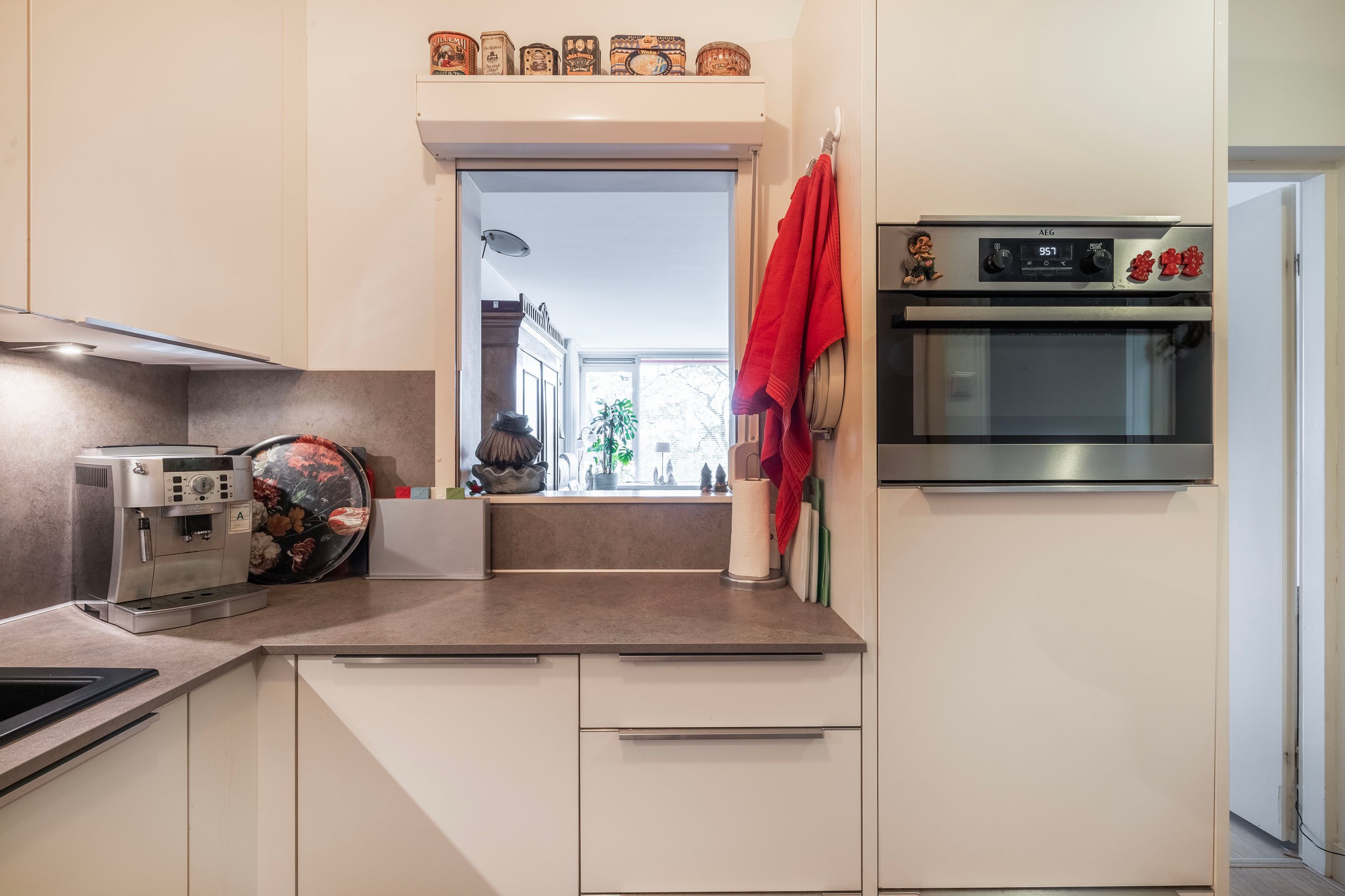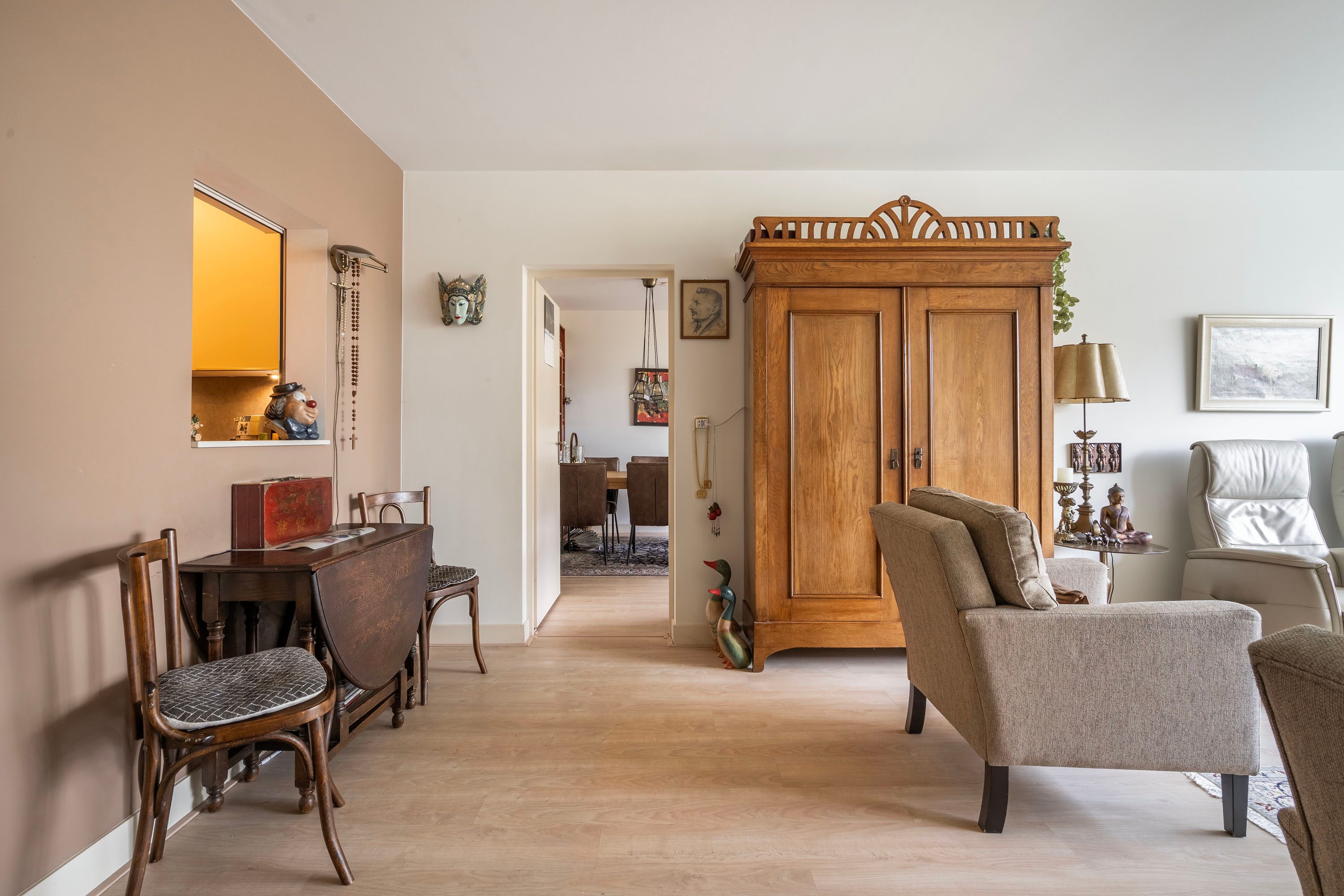 Dit hoekappartement ligt ideaal gelegen, vlakbij het trapportaal en de lift. Je komt binnen in een ruime hal die toegang biedt tot vrijwel alle vertrekken. De lichte woonkamer (ca. 28 m²) heeft plek voor een gezellige zithoek. De naastgelegen eetkamer grenst direct aan het balkon. De keuken (vernieuwd in 2018) is praktisch ingericht in een U-opstelling en voorzien van diverse inbouwapparatuur, waaronder een inductie kookplaat, oven, koelkast en vaatwasser. Vanuit de woonkamer is de royale slaapkamer van ca 25,5 m² bereikbaar. De badkamer (vernieuwd in 2018) beschikt over een inloopdouche, toilet en dubbele wastafel. Daarnaast is er een separaat toilet en extra bergruimte. Het balkon op het westen biedt volop middag- en avondzon en kijkt uit over een groen, rustig pad achter het complex – een fijne, vrije ligging.