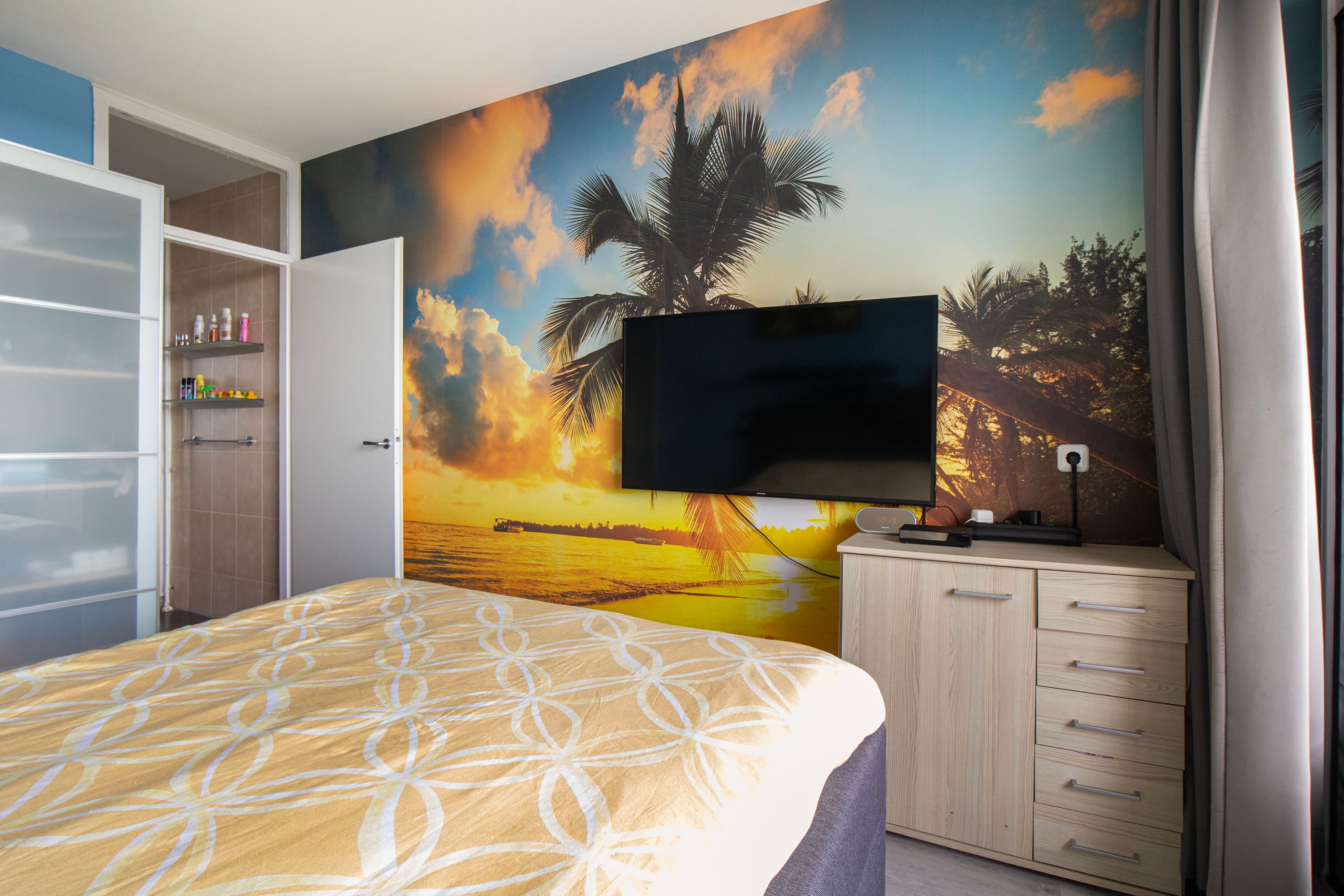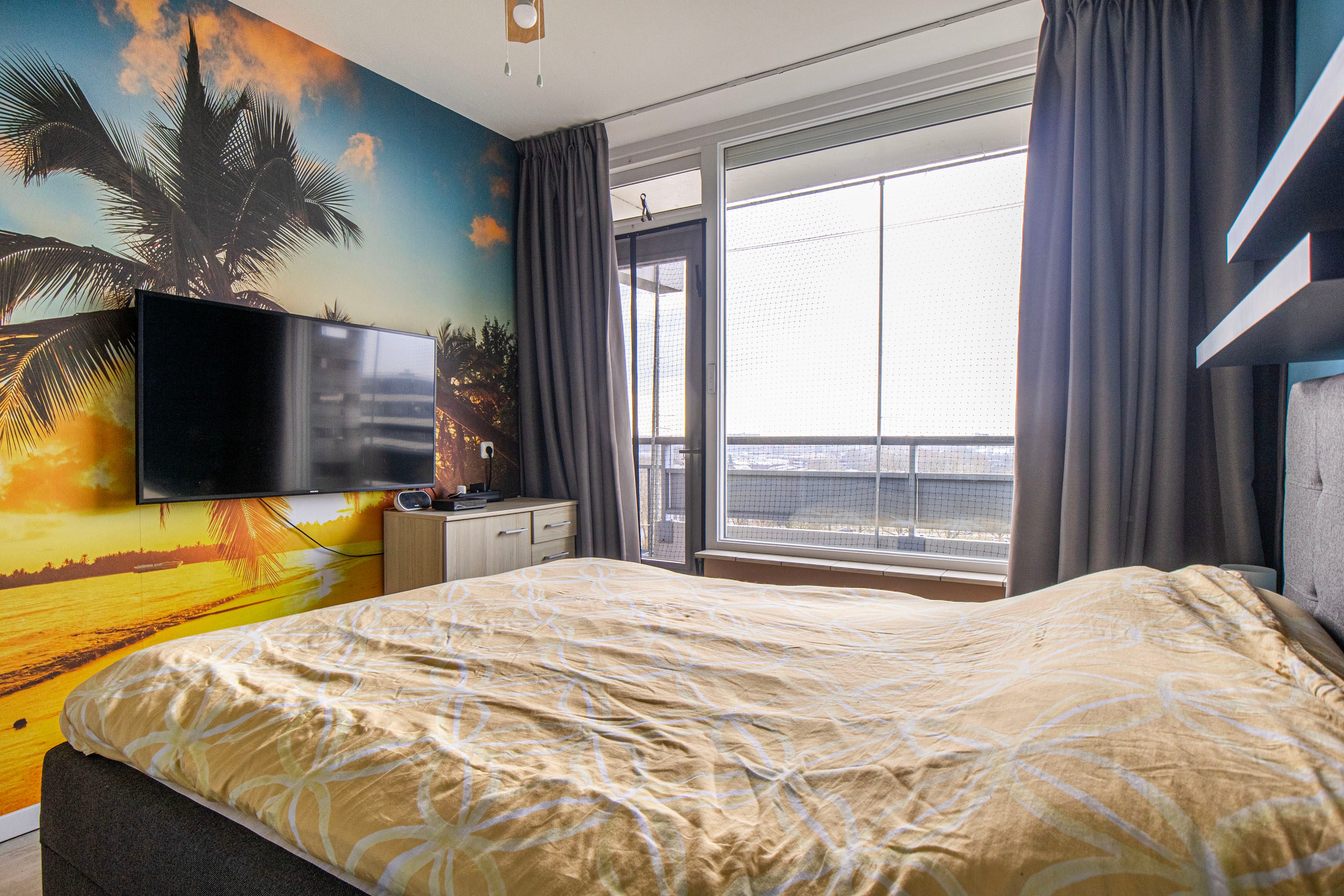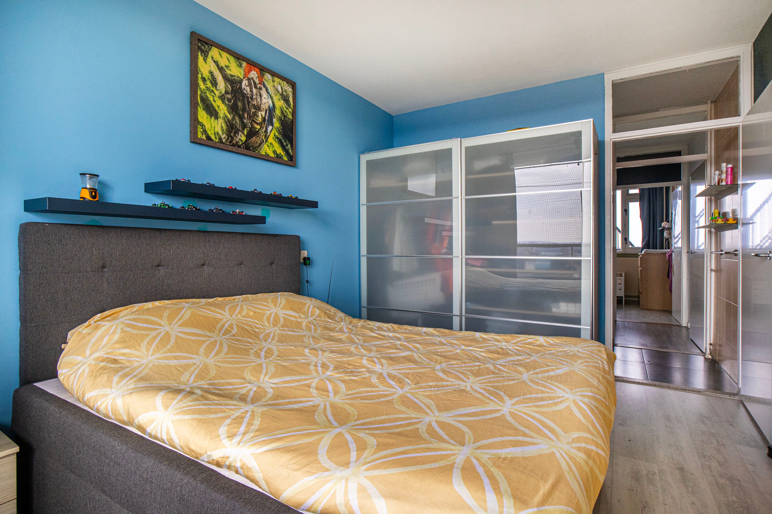 De grootste slaapkamer van circa 12 m² ligt aan de achterzijde van de woning en is bereikbaar via de badkamer. Een prettig extra is dat zowel de slaapkamer als de woonkamer aan de achterzijde zijn voorzien van screens.