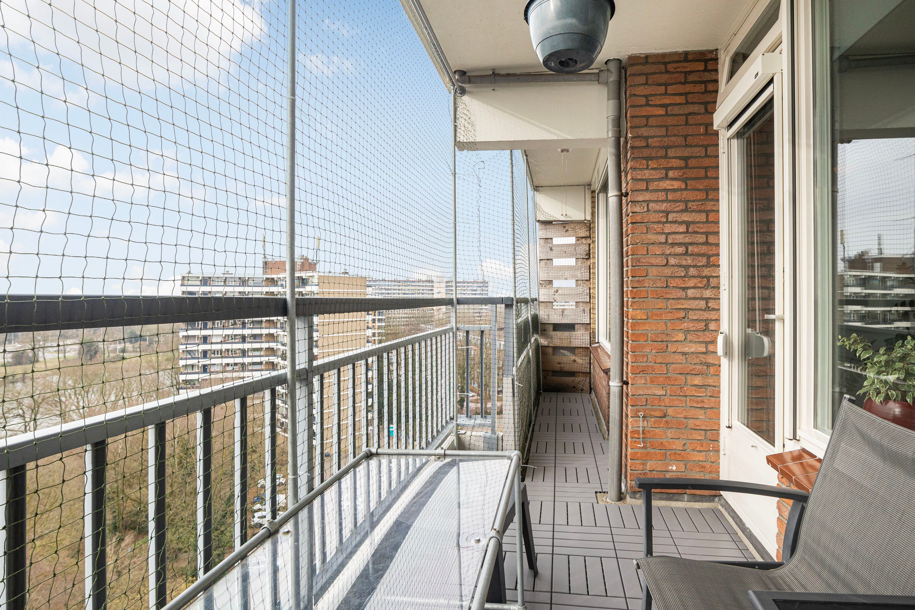 Het balkon is gelegen op het zuiden en heeft een oppervlakte van circa 9 m². Hier kun je heerlijk van de zon genieten. Het balkon is toegankelijk vanuit zowel de woonkamer als de slaapkamer.