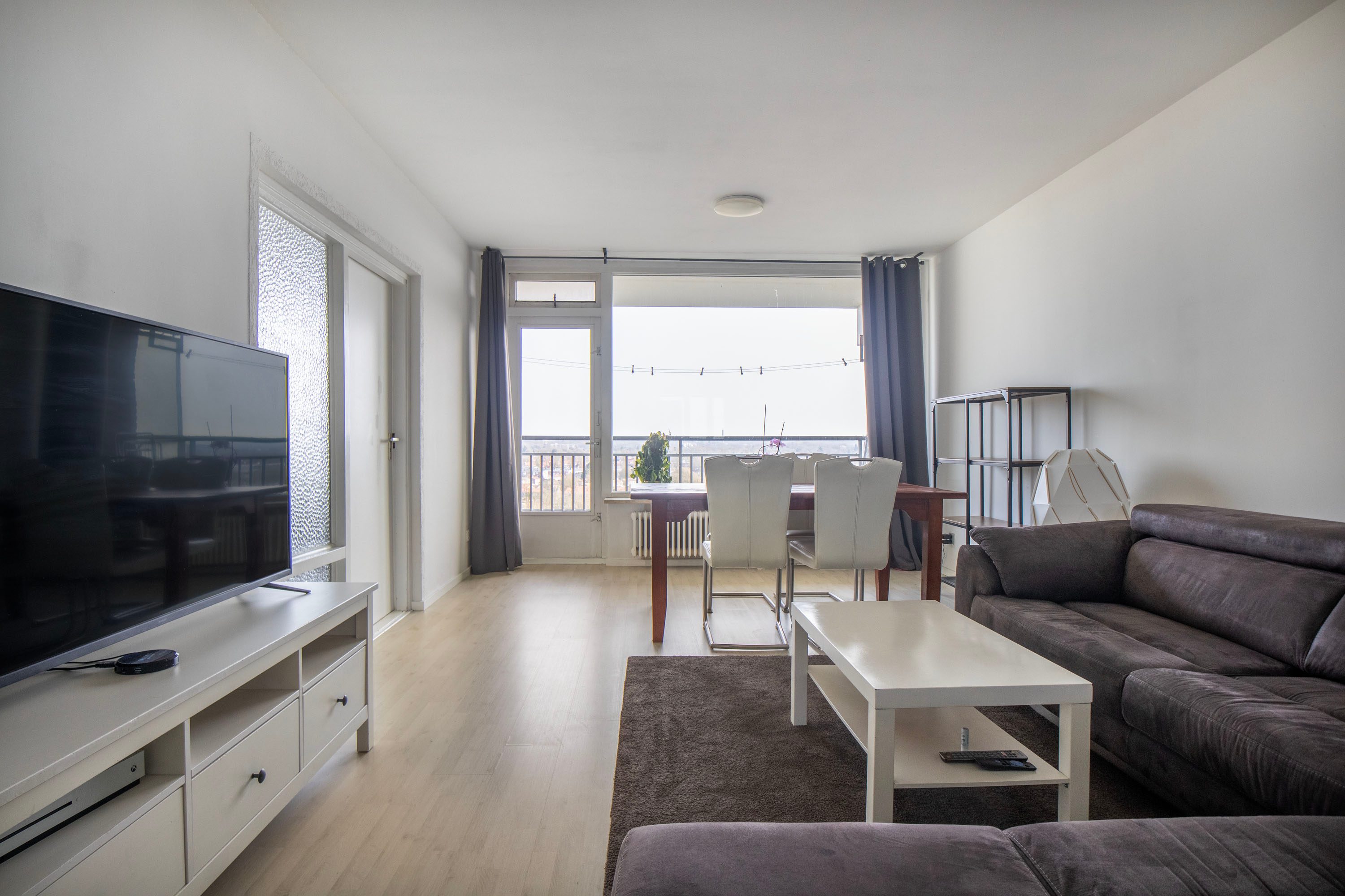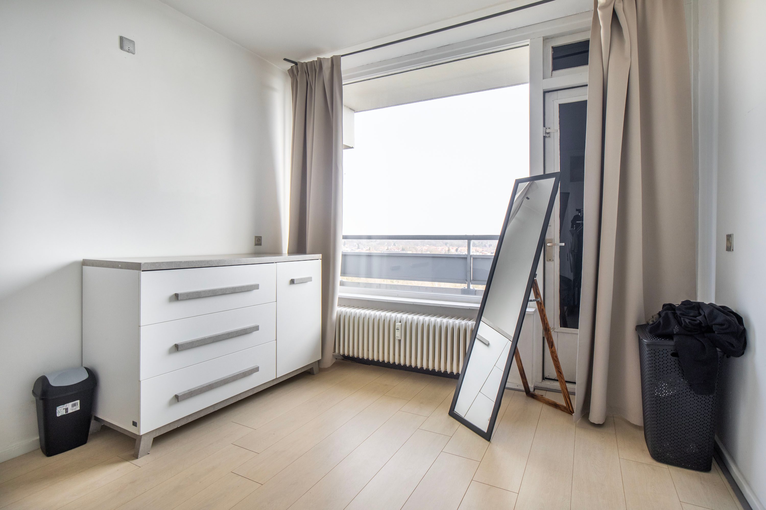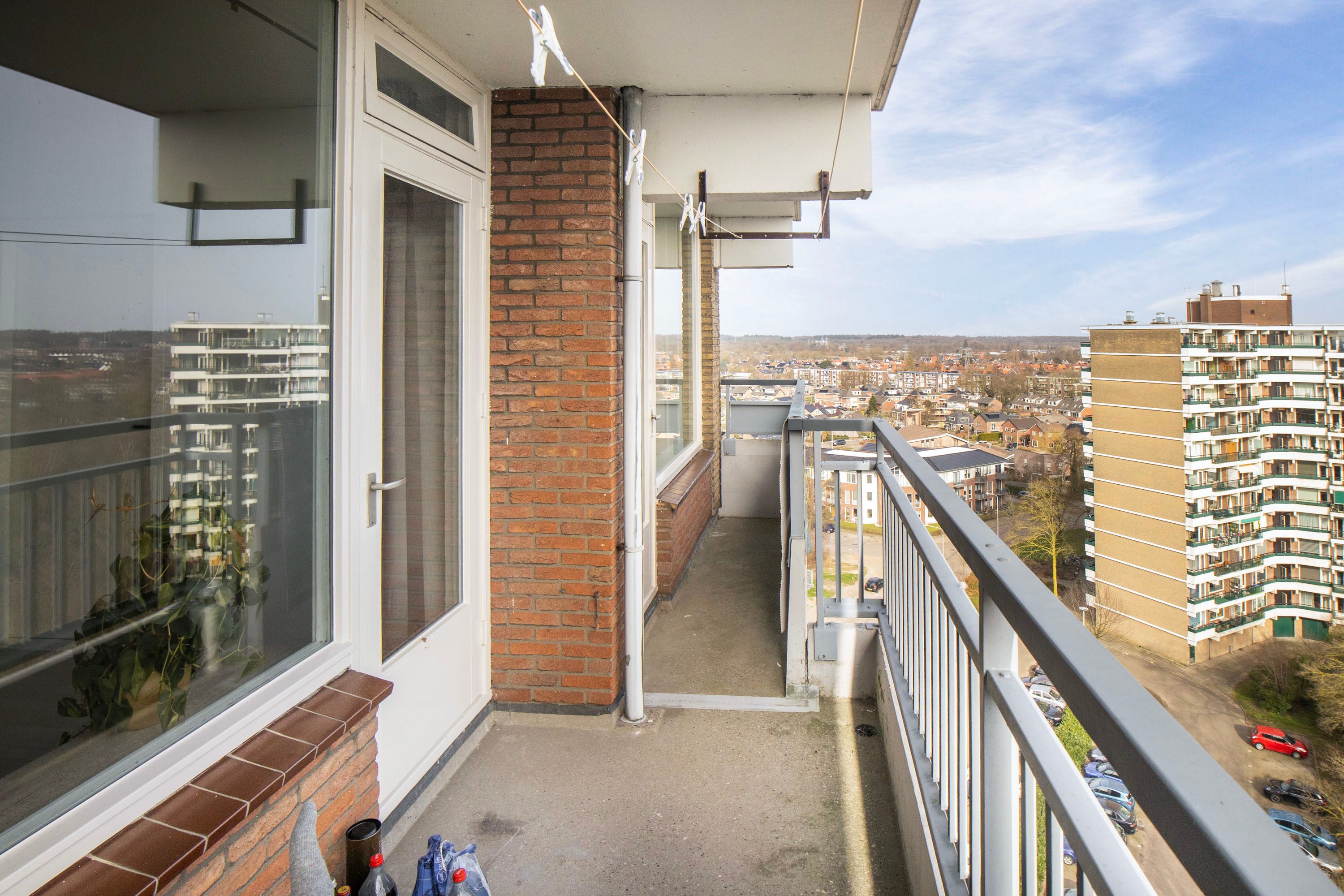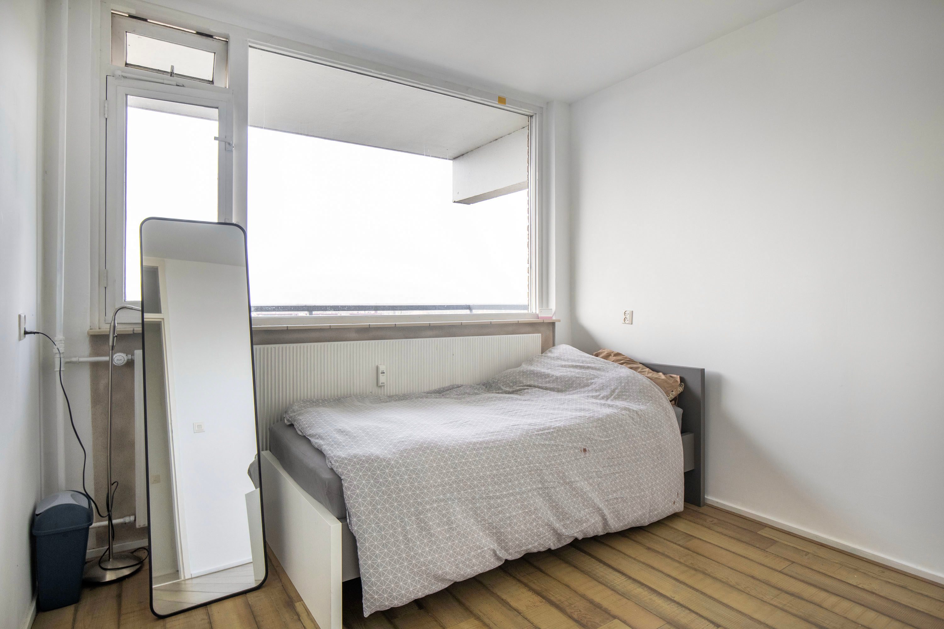 Het appartement is gelegen op de bovenste, 11e verdieping. Dankzij de hoekligging geniet je hier van extra privacy, omdat er geen bewoners langs de galerij voor de woning lopen.