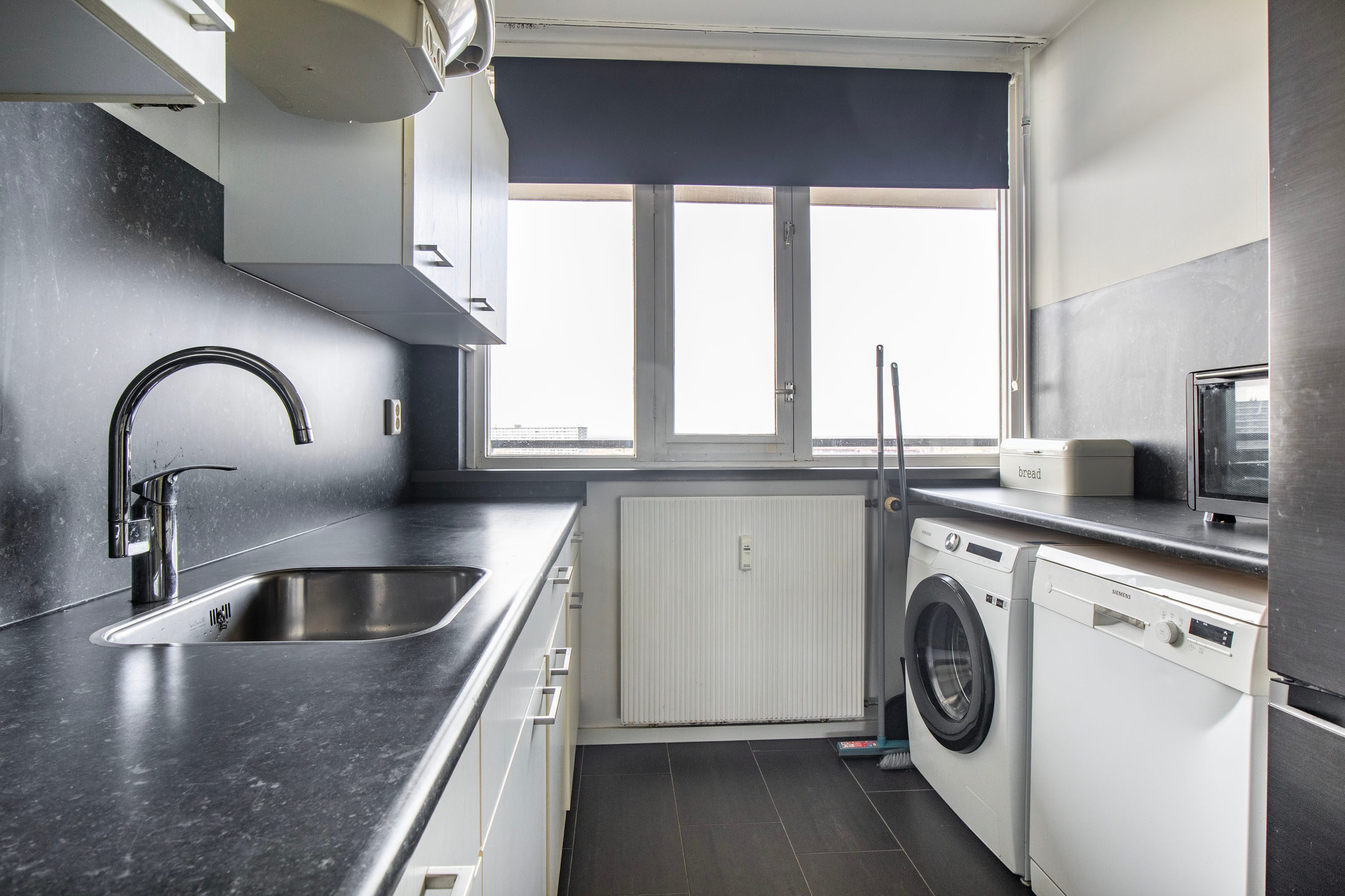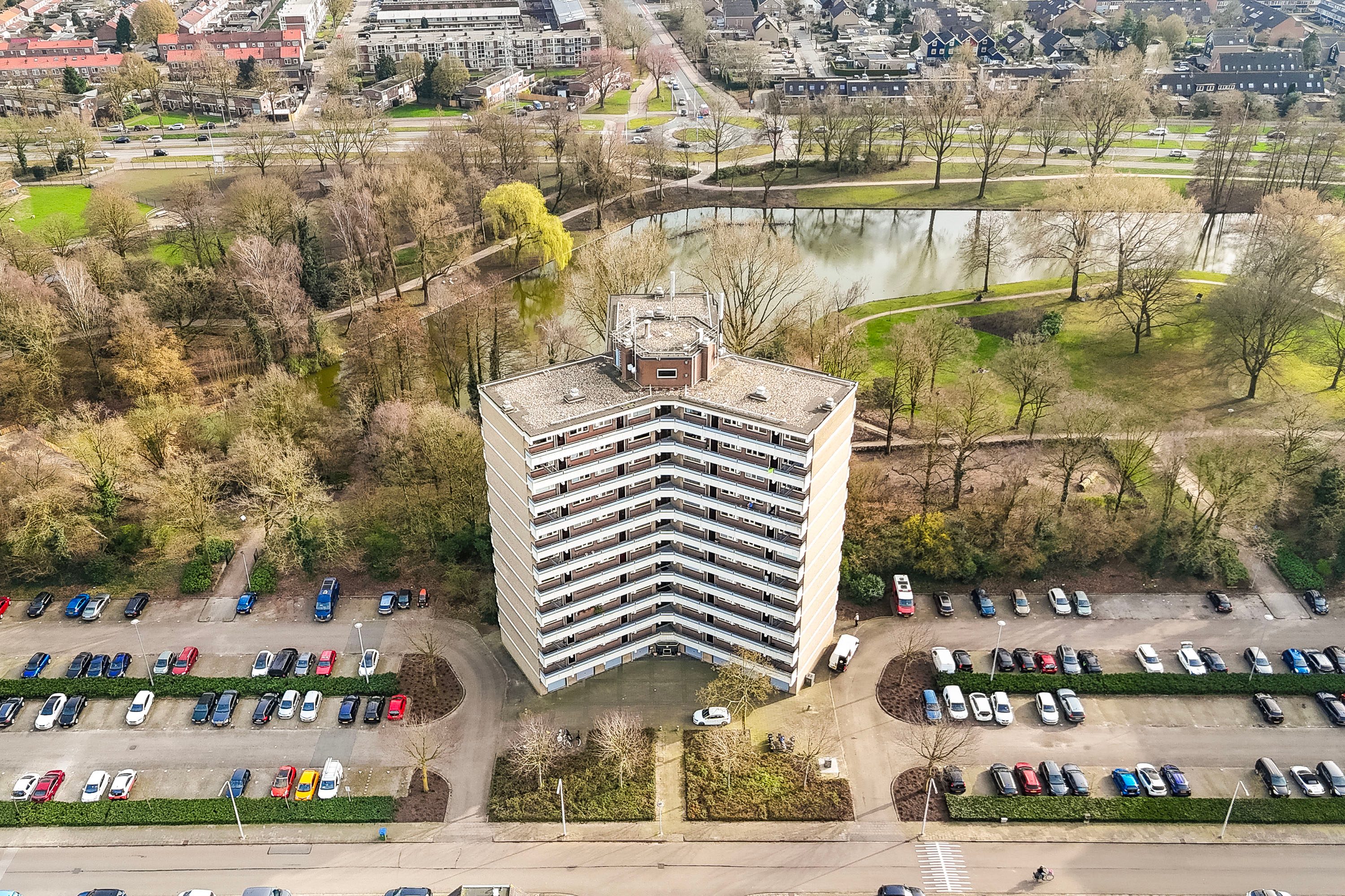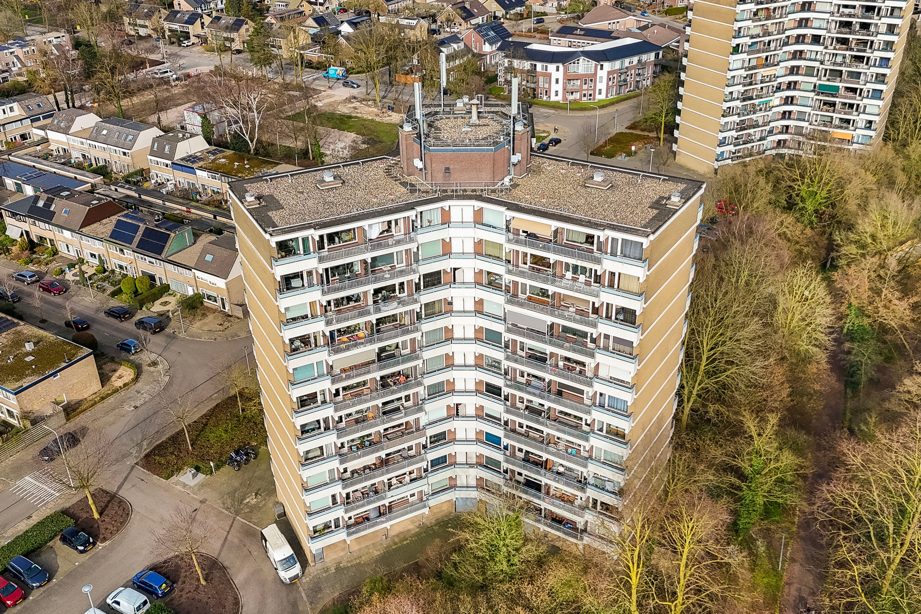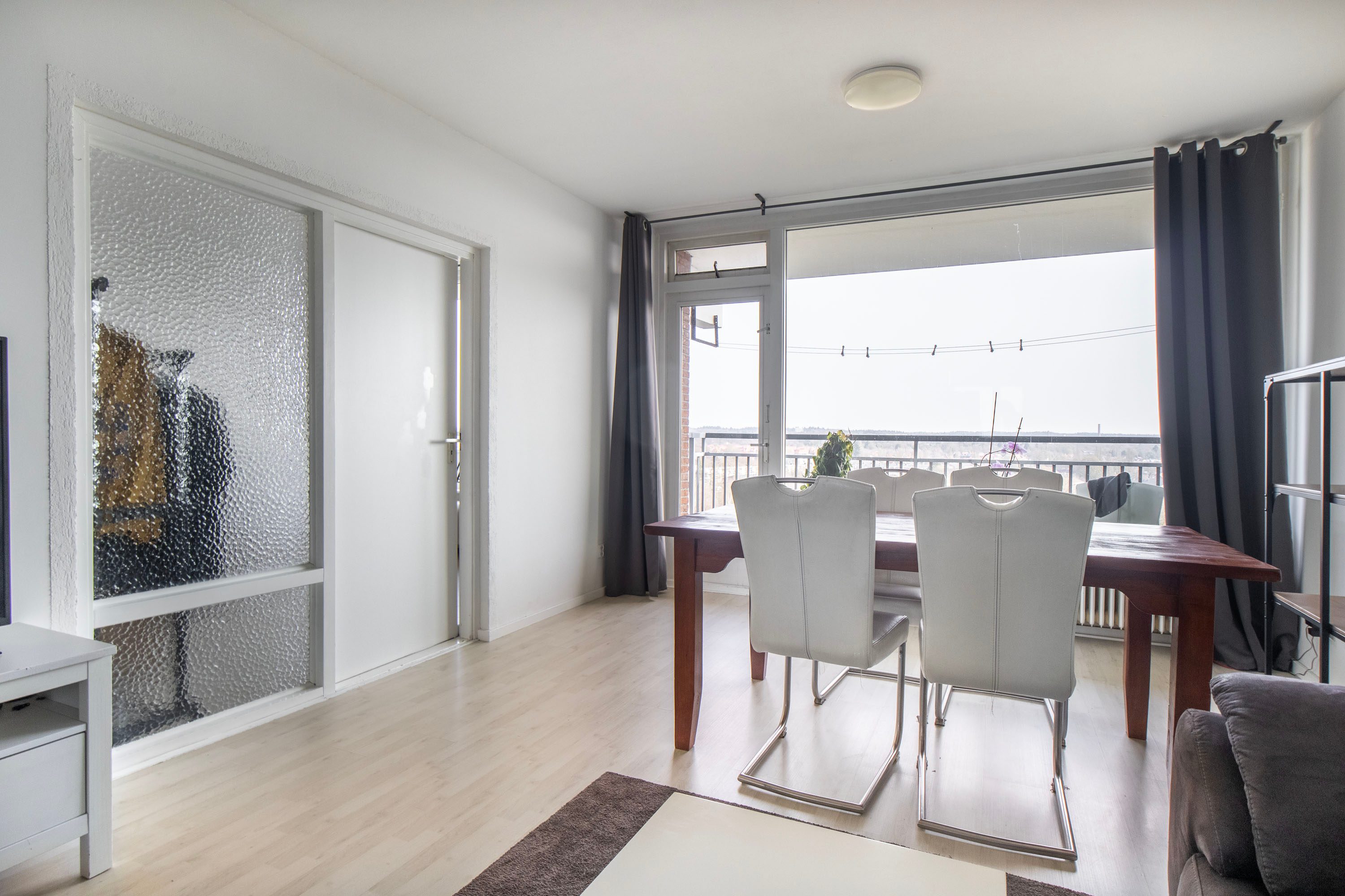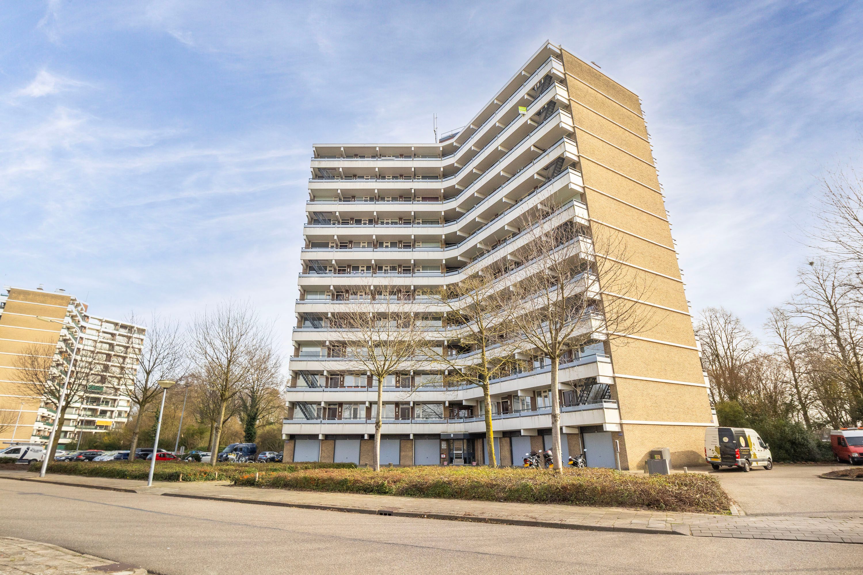 Het appartement is gelegen op de bovenste, 11e verdieping. Dankzij de hoekligging geniet je hier van extra privacy, omdat er geen bewoners langs de galerij voor de woning lopen.
