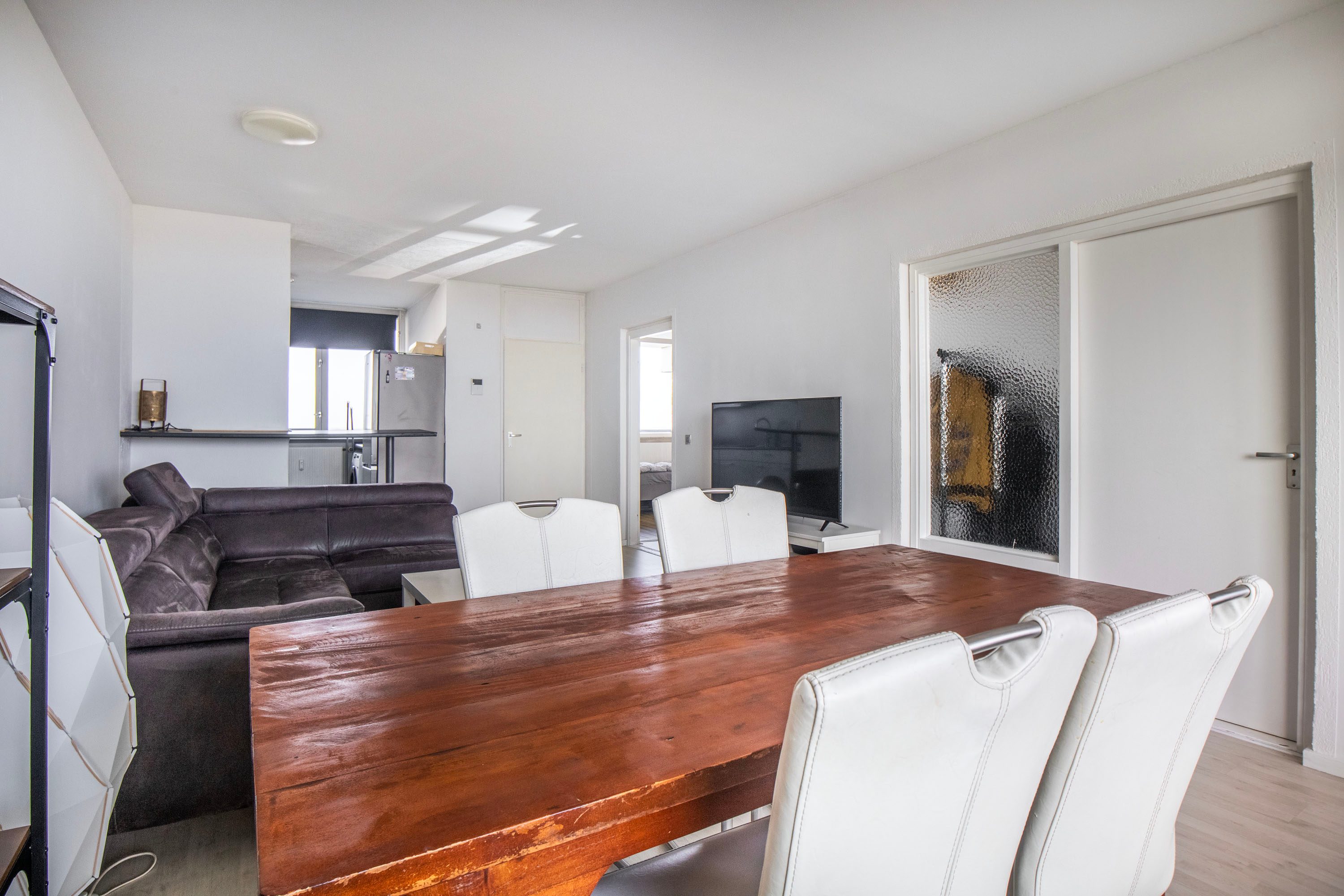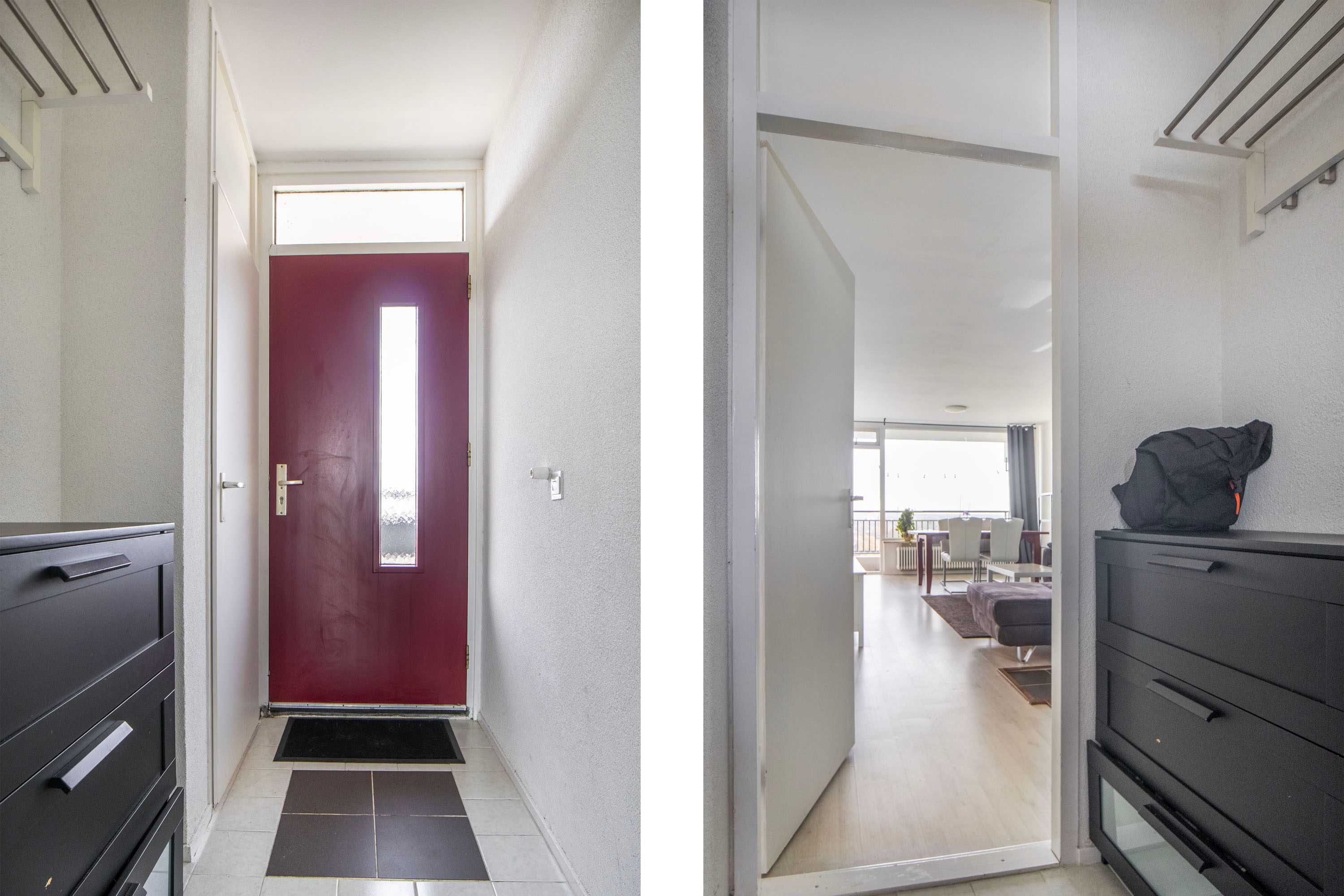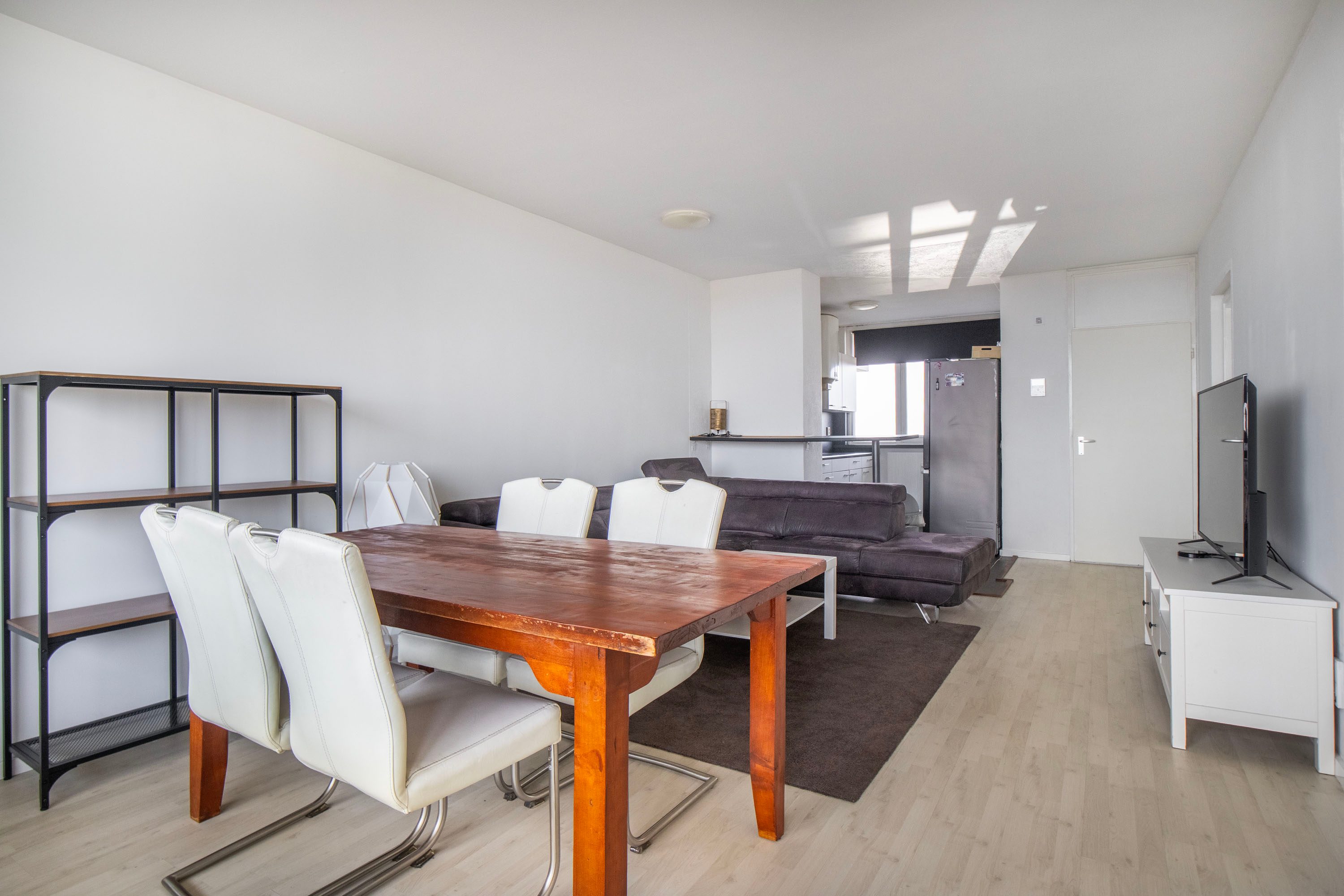 Bij binnenkomst stap je in de entree met meterkast en toegang tot de woonkamer. De entree biedt voldoende ruimte voor een kapstok en bijvoorbeeld een kastje voor schoenen of andere spullen. Zodra je de woonkamer binnenloopt, valt direct de lichte en ruime sfeer op. De woonkamer van circa 26 m² biedt volop mogelijkheden voor het creëren van een comfortabele zithoek en een gezellige eethoek. Door de praktische indeling kun je de ruimte op verschillende manieren naar wens inrichten.