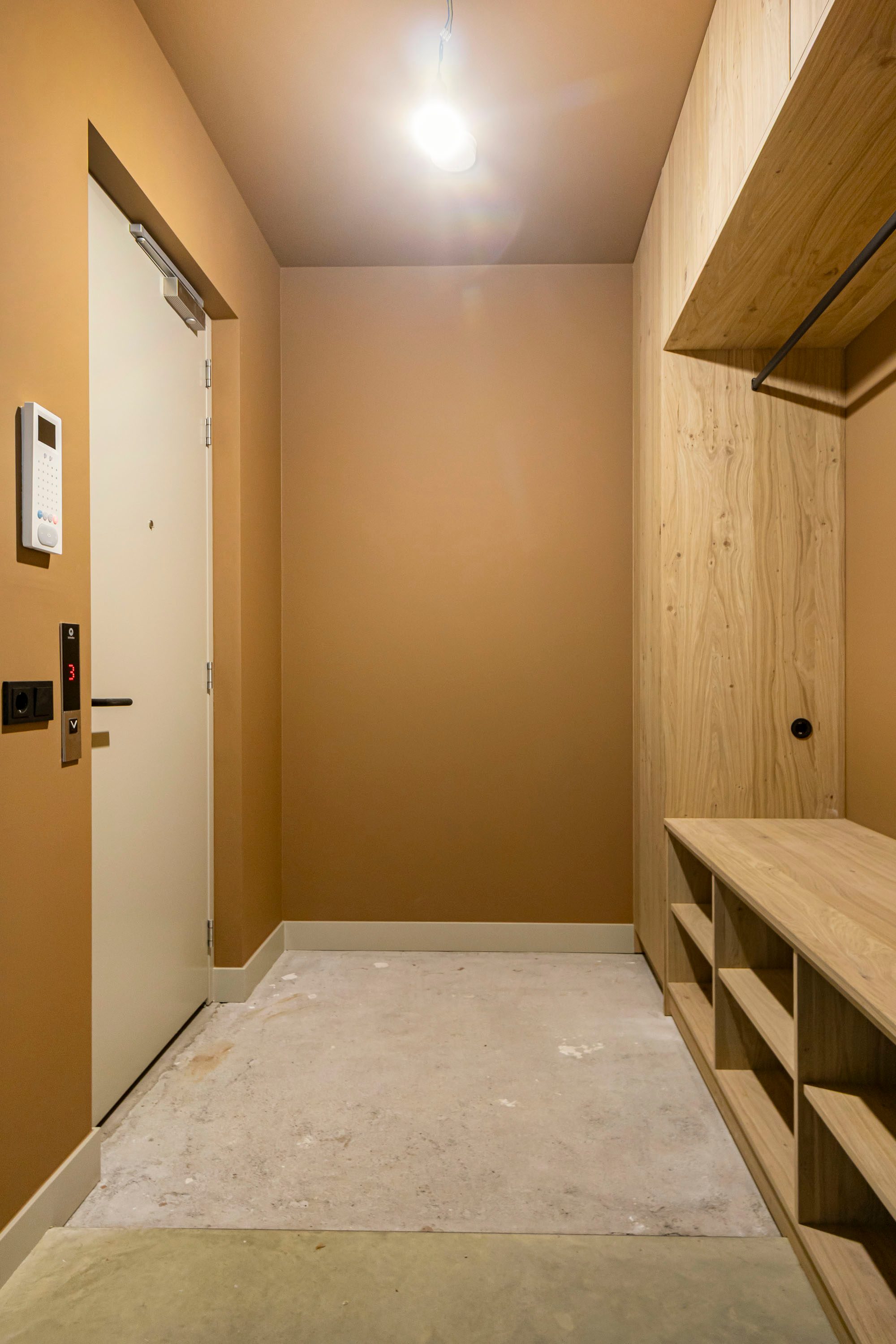 Een ruime hal die toegang geeft tot de techniekruimte. Dit appartement beschikt over een warmtepomp met bodembron en is volledig voorzien van vloerverwarming. Er liggen op het dak 7 zonnepanelen voor dit appartement en er zijn 5 zonnepanelen bestemd voor de VvE. Een WTW unit zorgt voor de juiste luchtkwaliteit in het appartement.