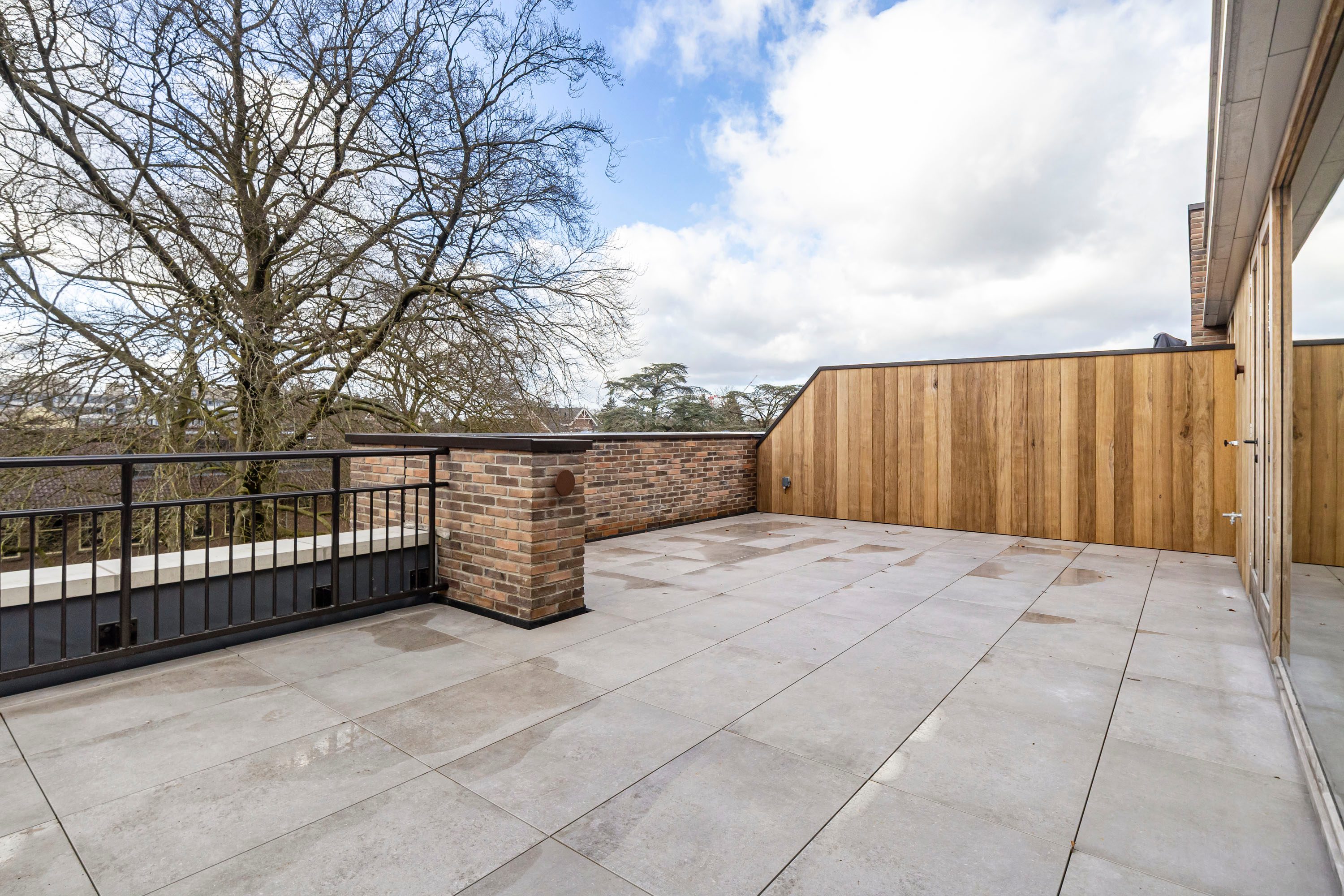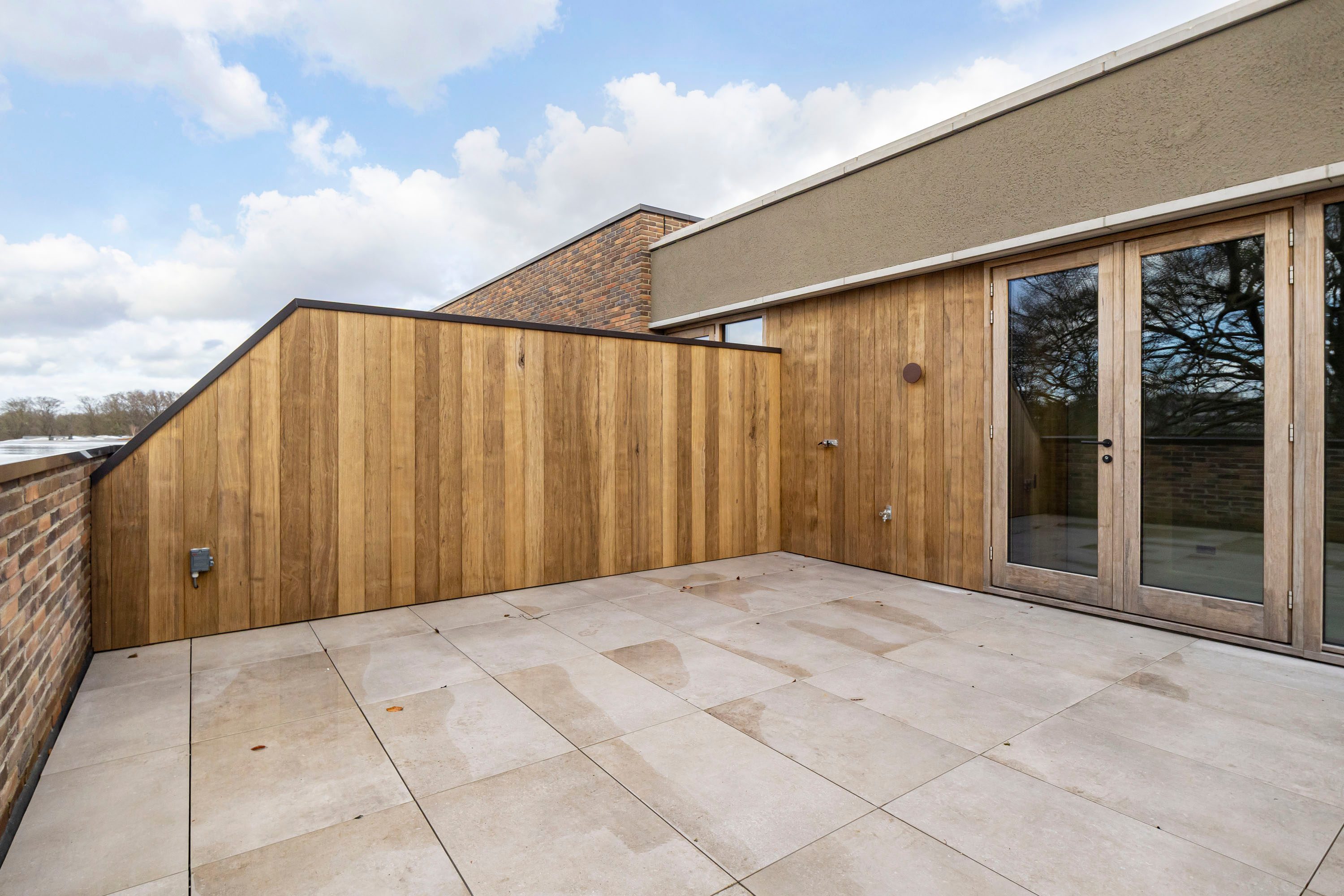 Vanuit de slaapkamer betreed je het dakterras van maar liefst 65 m². Gelegen op de zuidwestzijde met buitendouche en aansluitpunt voor bijvoorbeeld een jacuzzi. Hier kijk je fantastisch weg over het voormalige kazerneterrein.