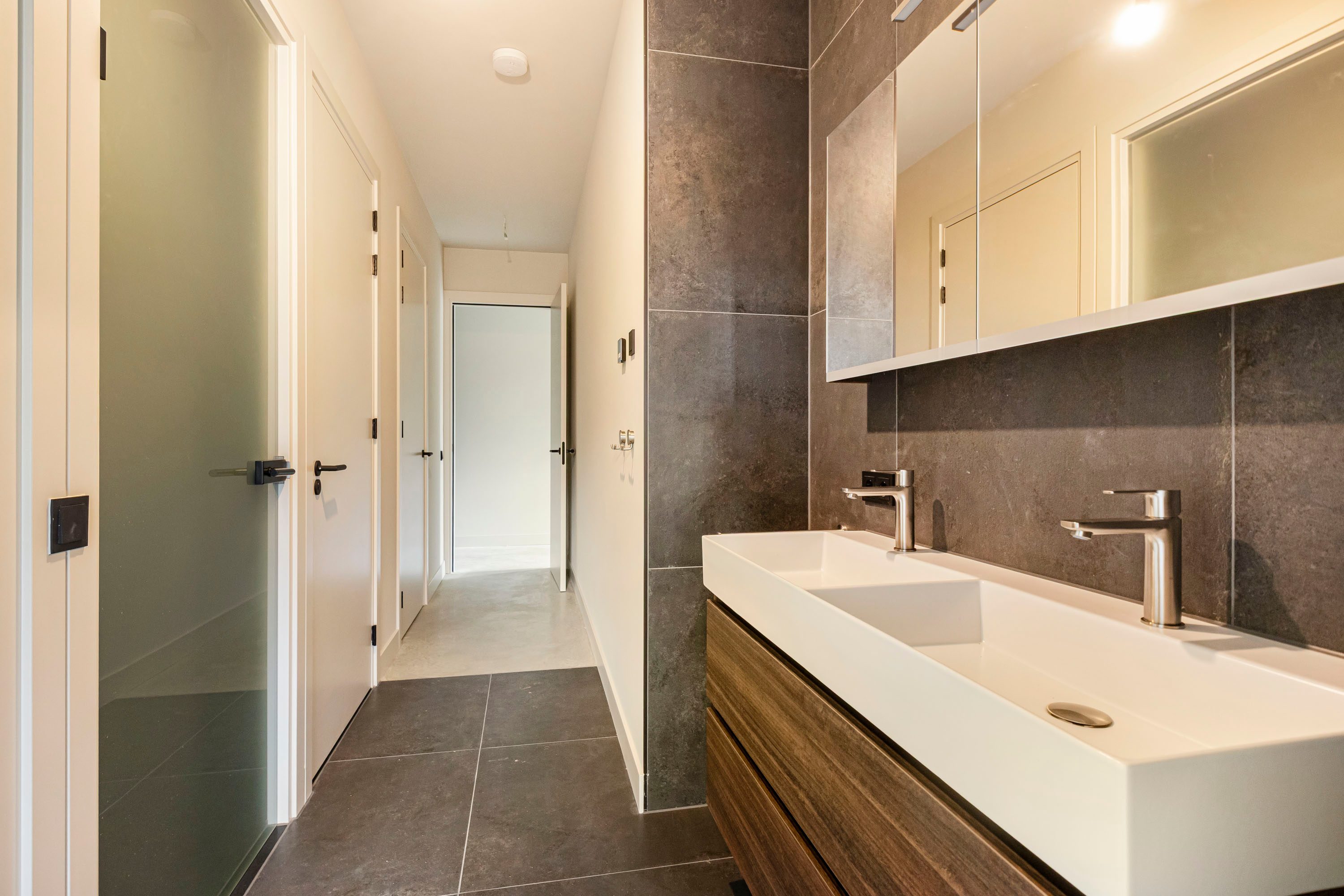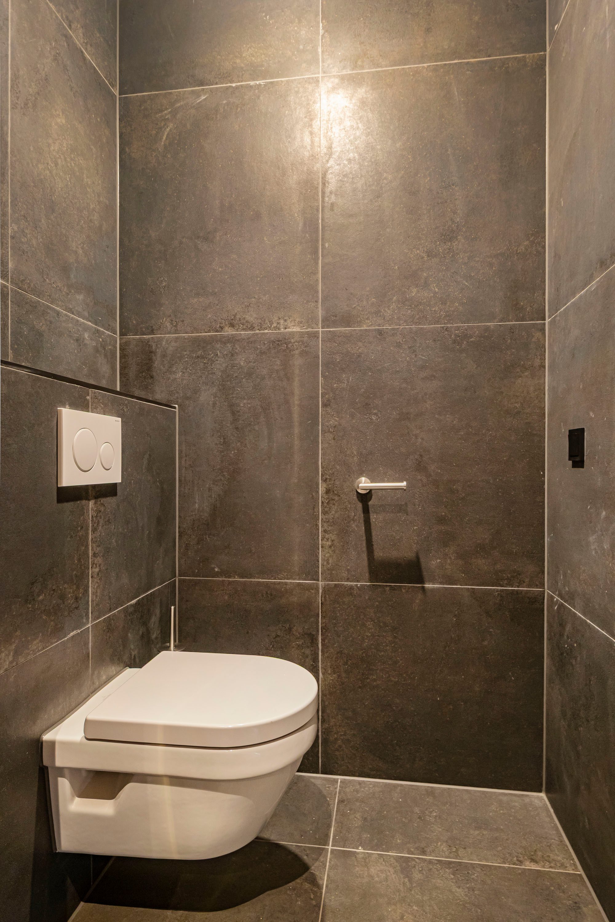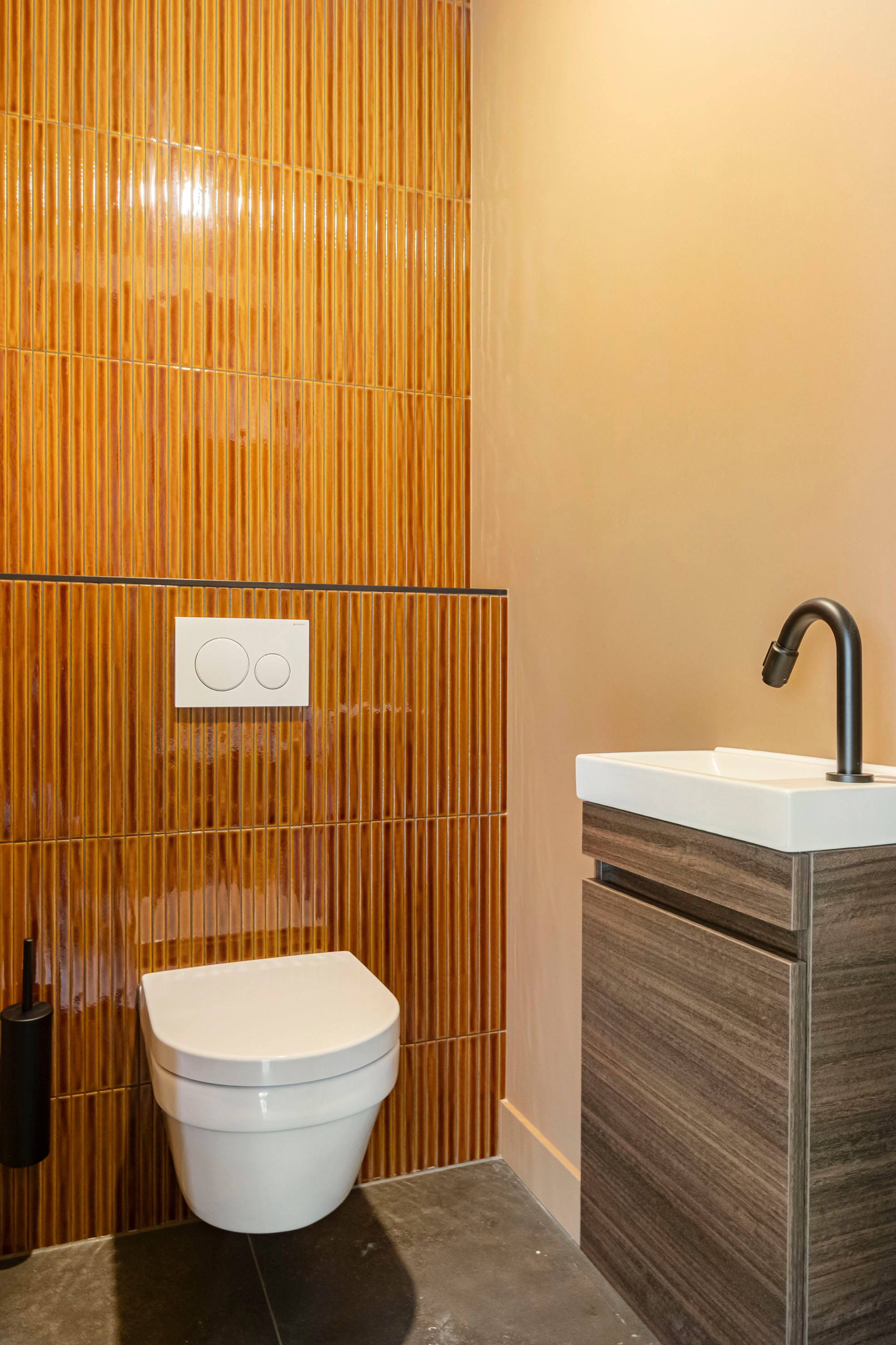 Verderop in de hal is een extra toilet en wastafel gerealiseerd voor de aangrenzende twee slaapkamers.