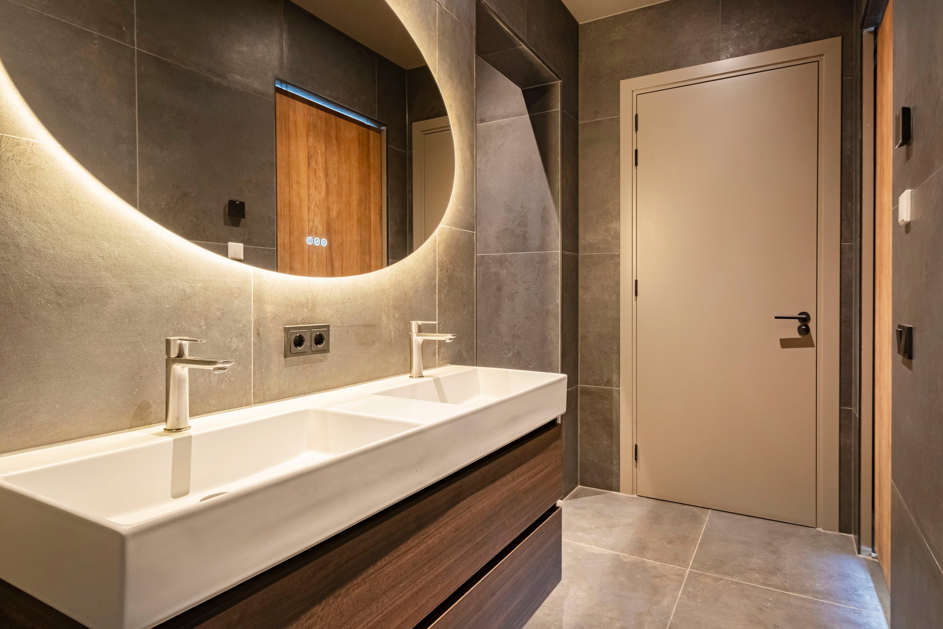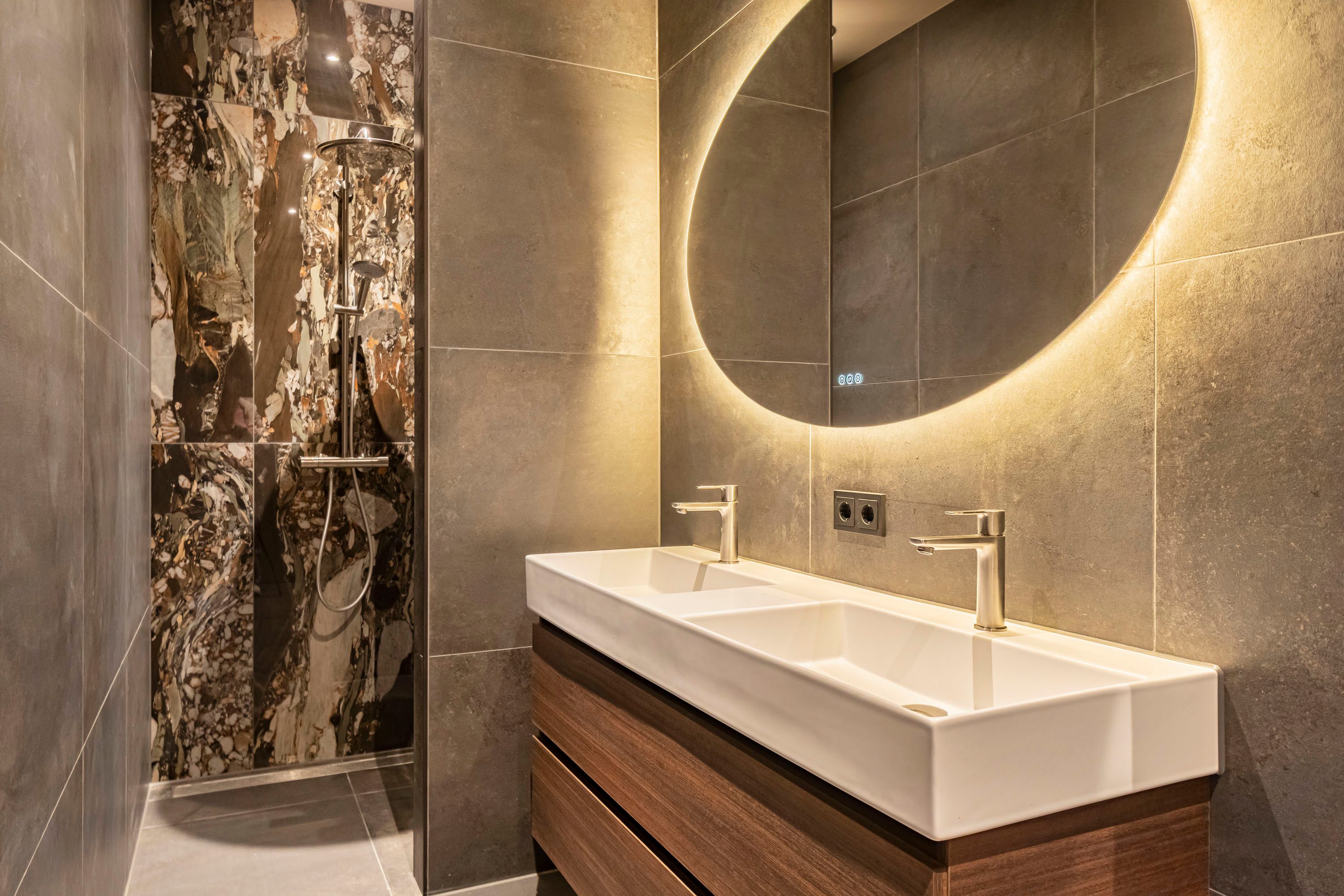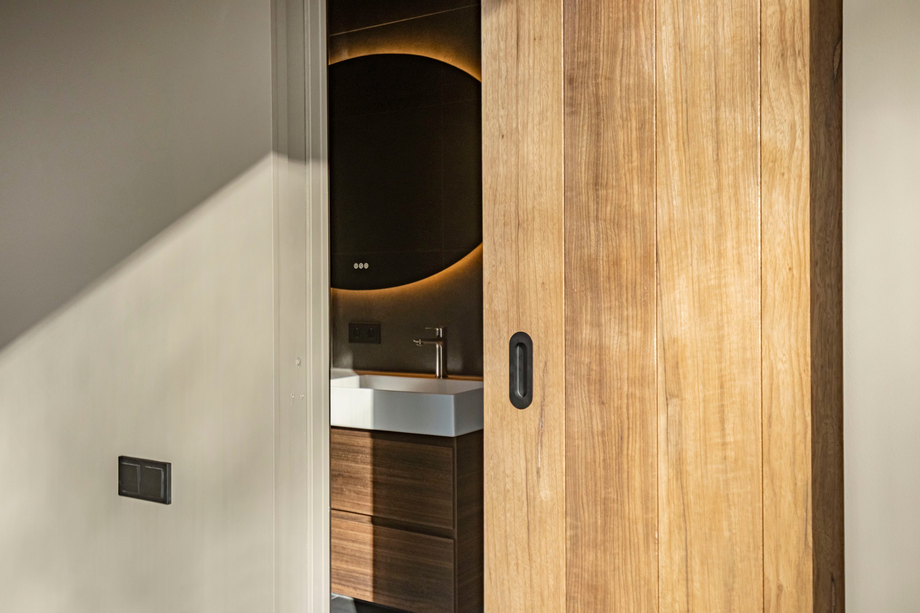 Verderop in de hal is een extra toilet en wastafel gerealiseerd voor de aangrenzende twee slaapkamers.