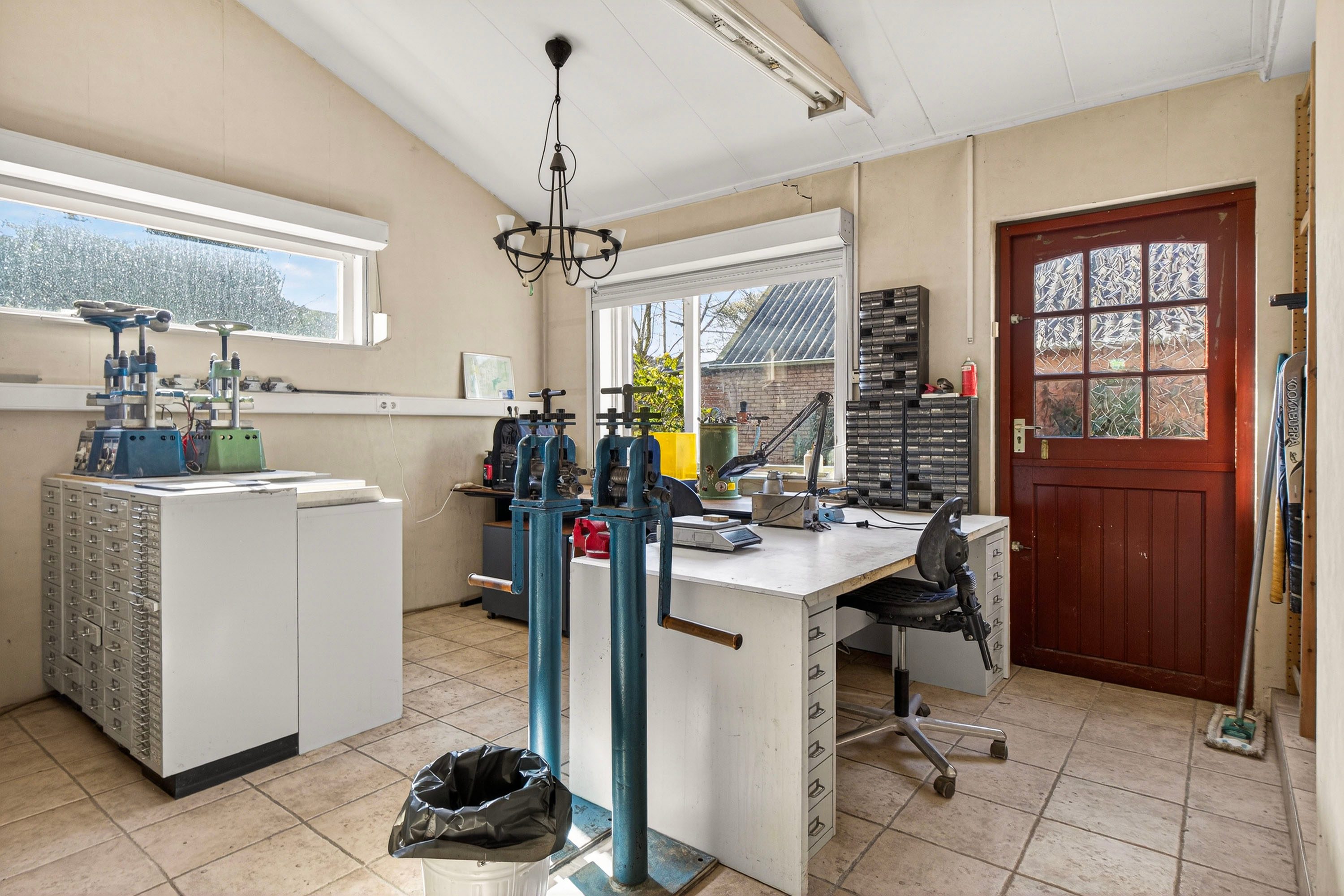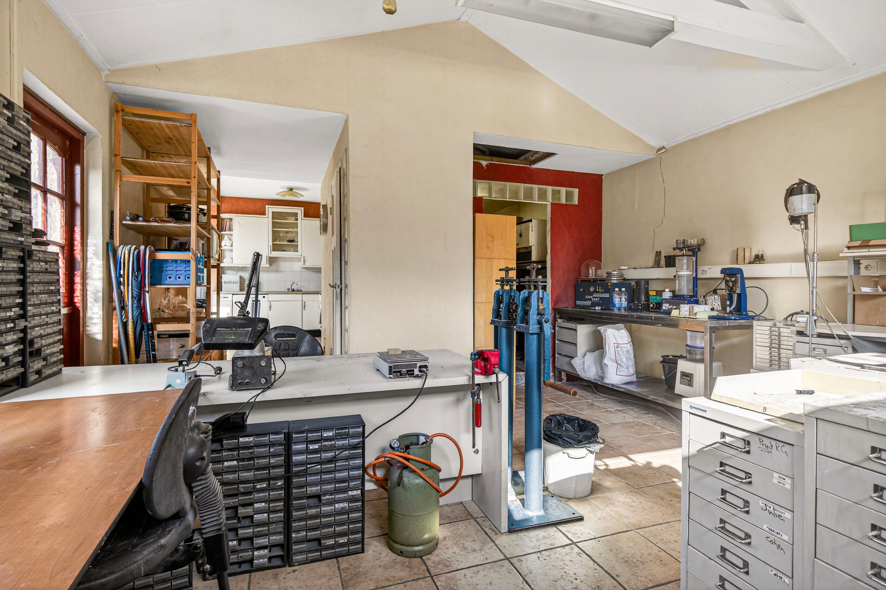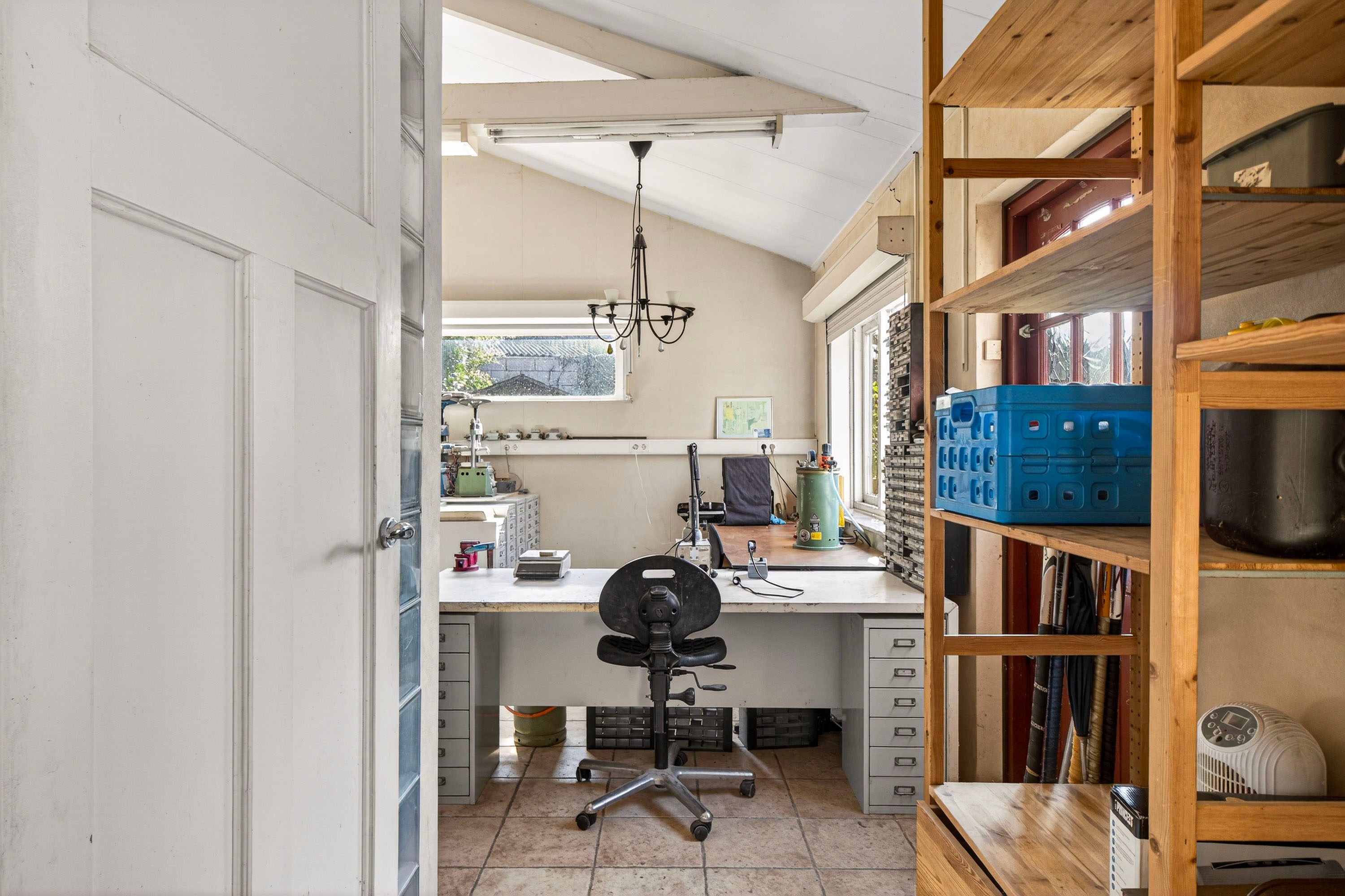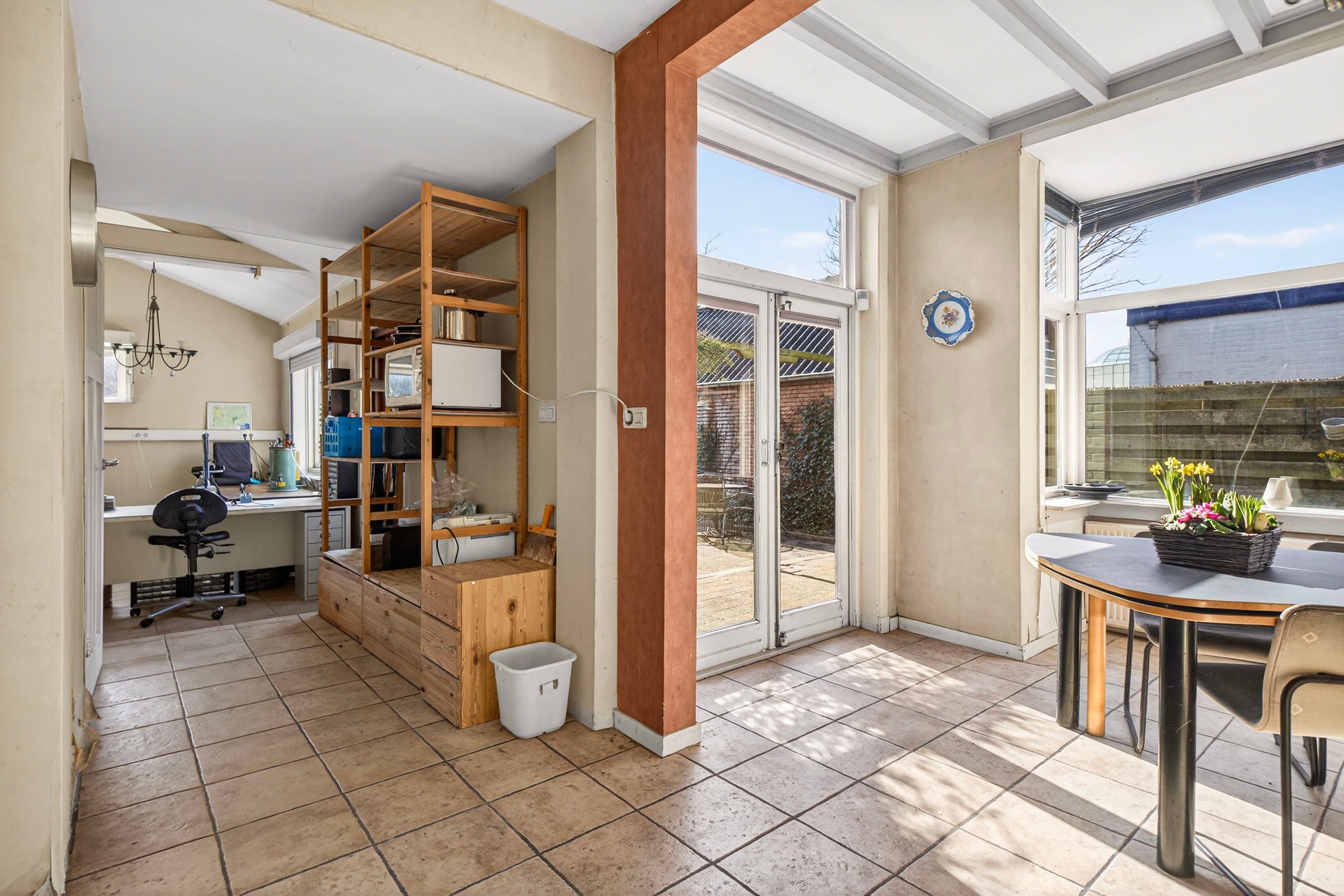 Vanuit de keuken is er een doorloop naar een ruime kantoor-/hobbykamer.