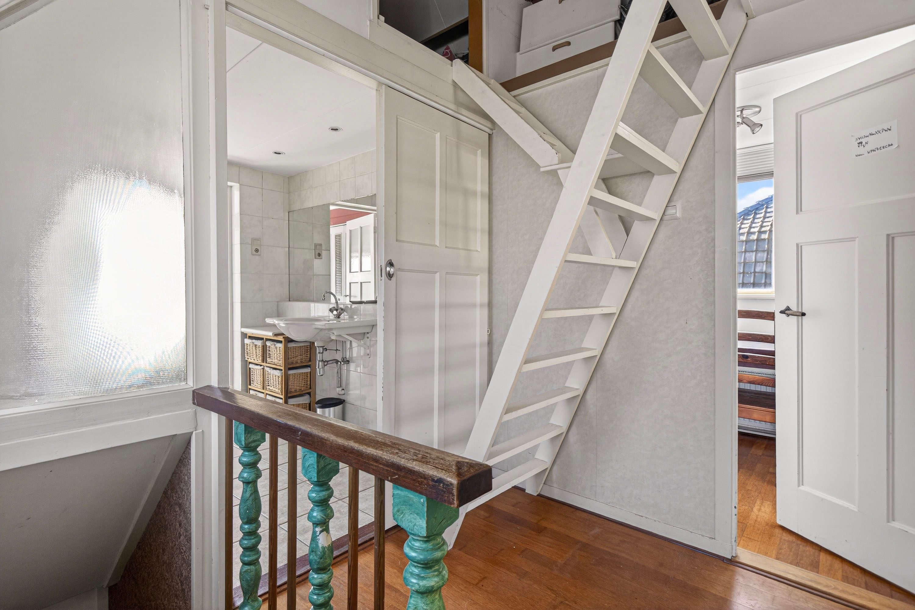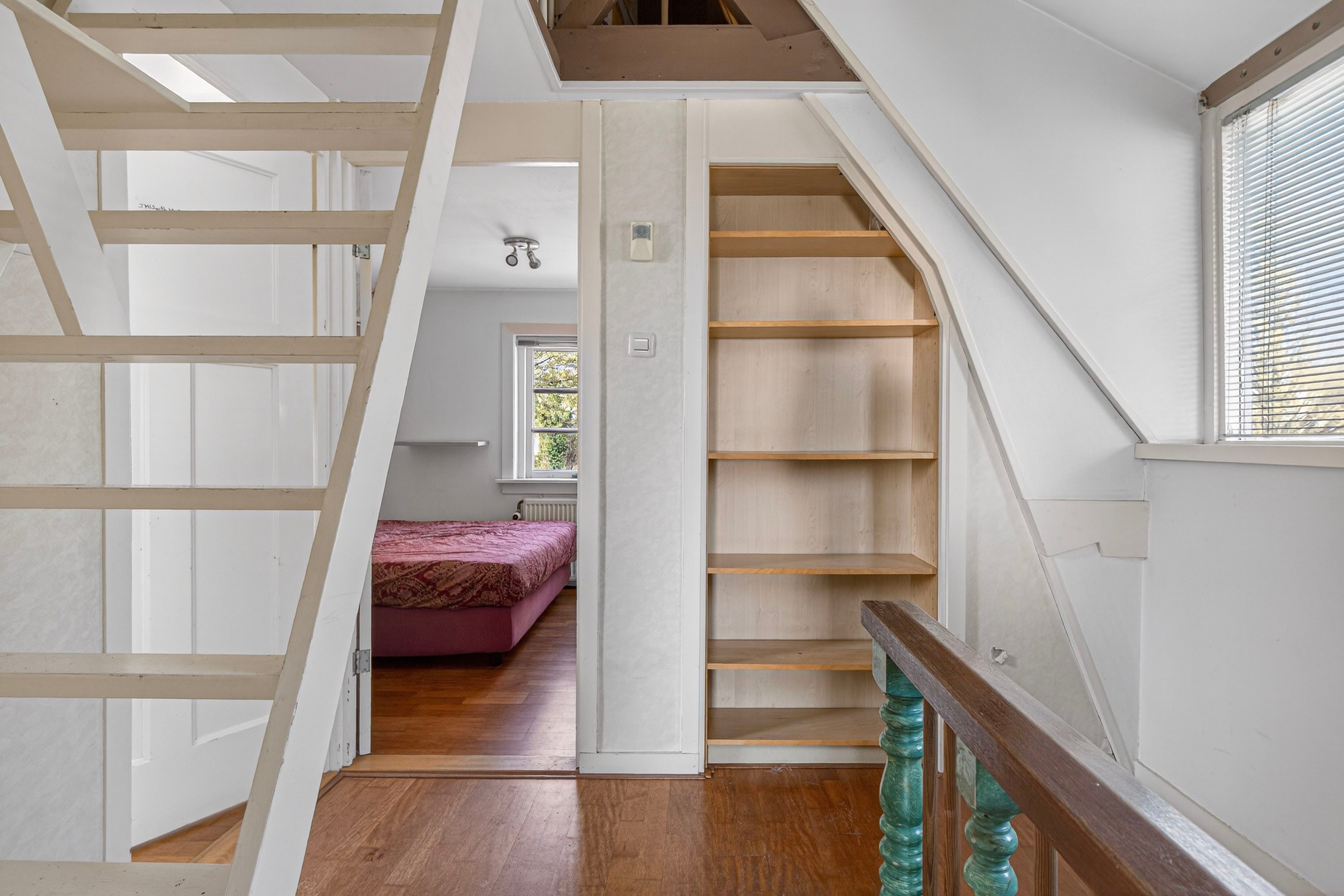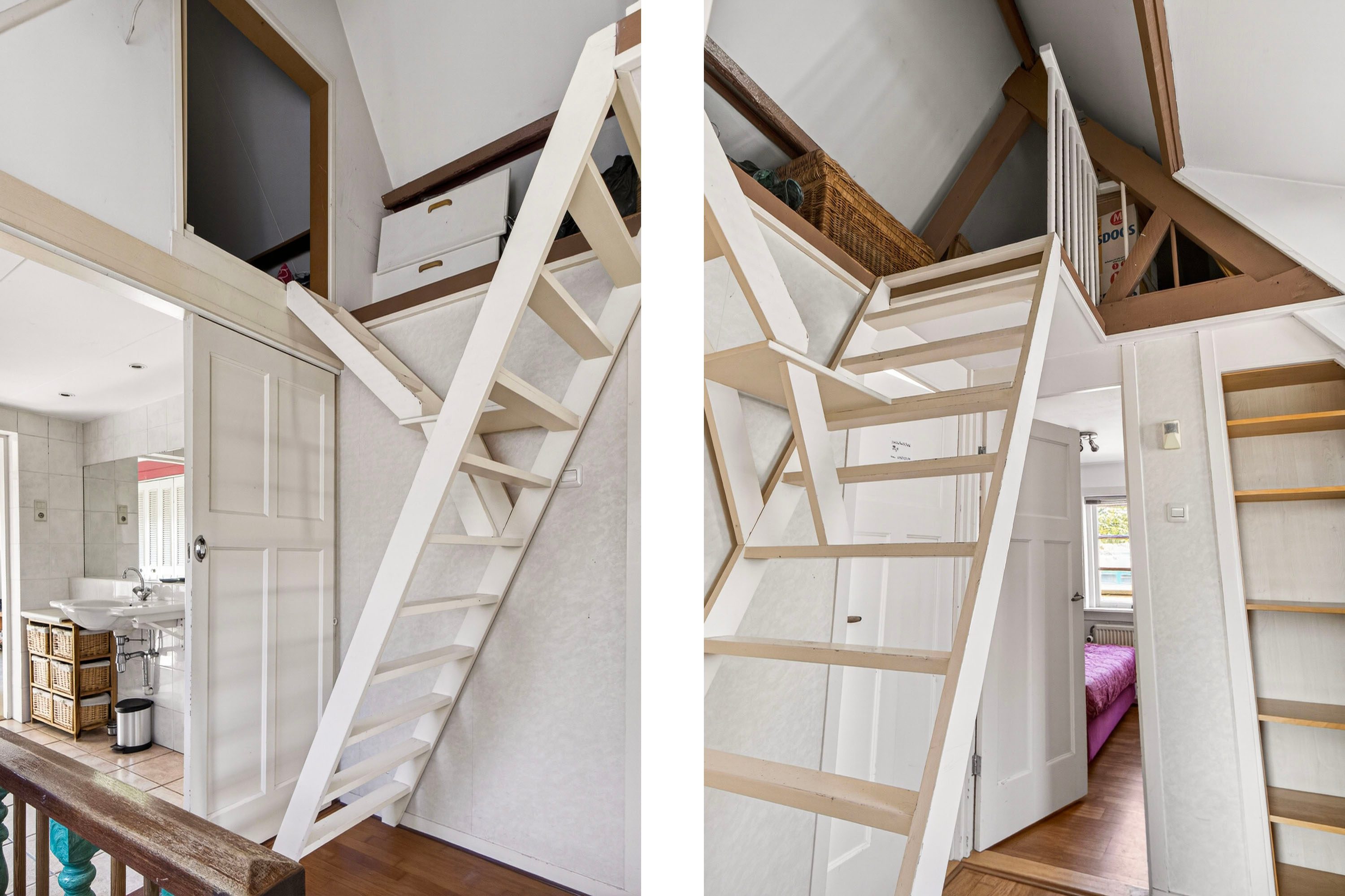 Via de trap bereik je de vliering met toegang tot twee ruime bergingen. Ideaal voor het opbergen van spullen die je niet dagelijks gebruikt.