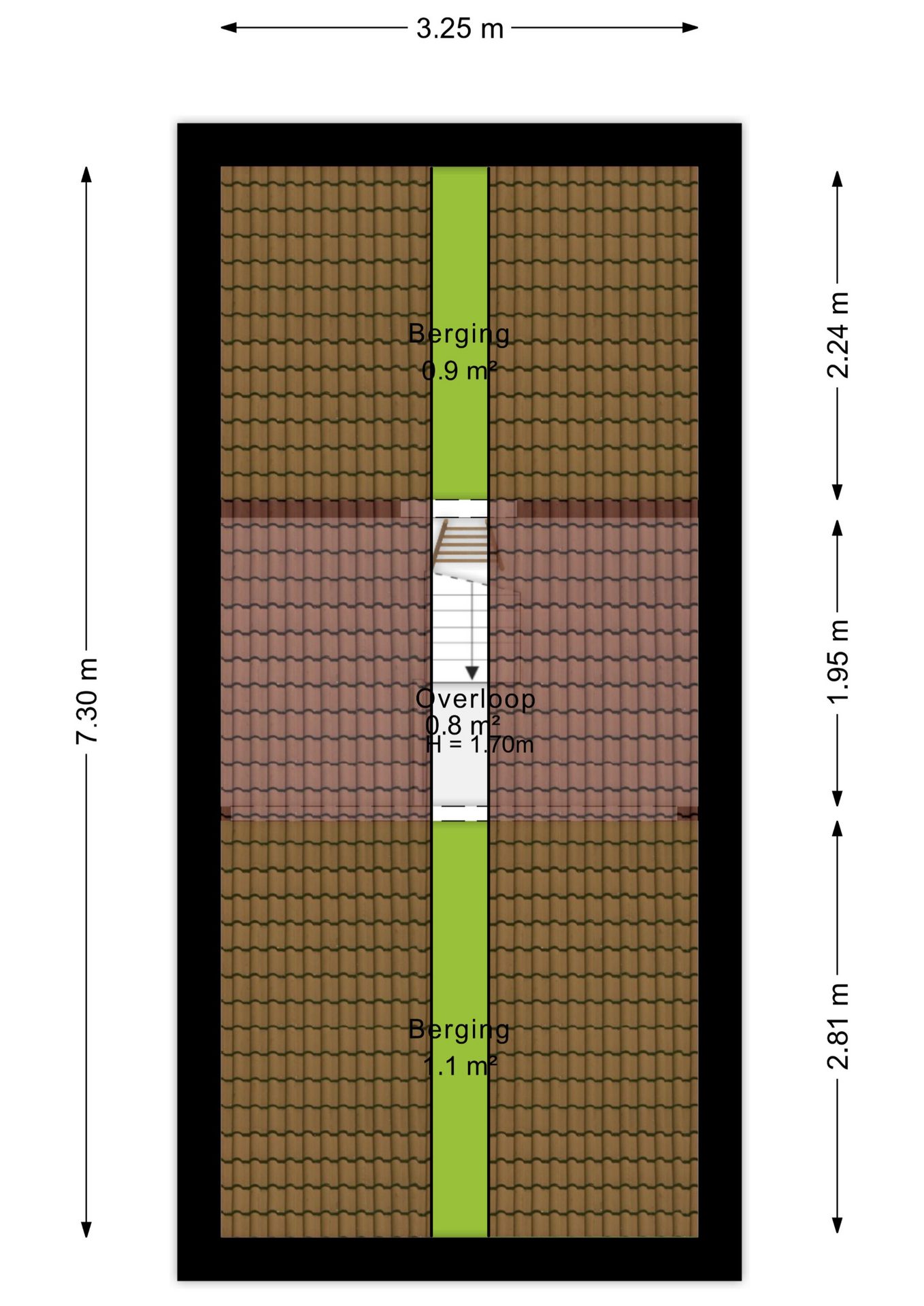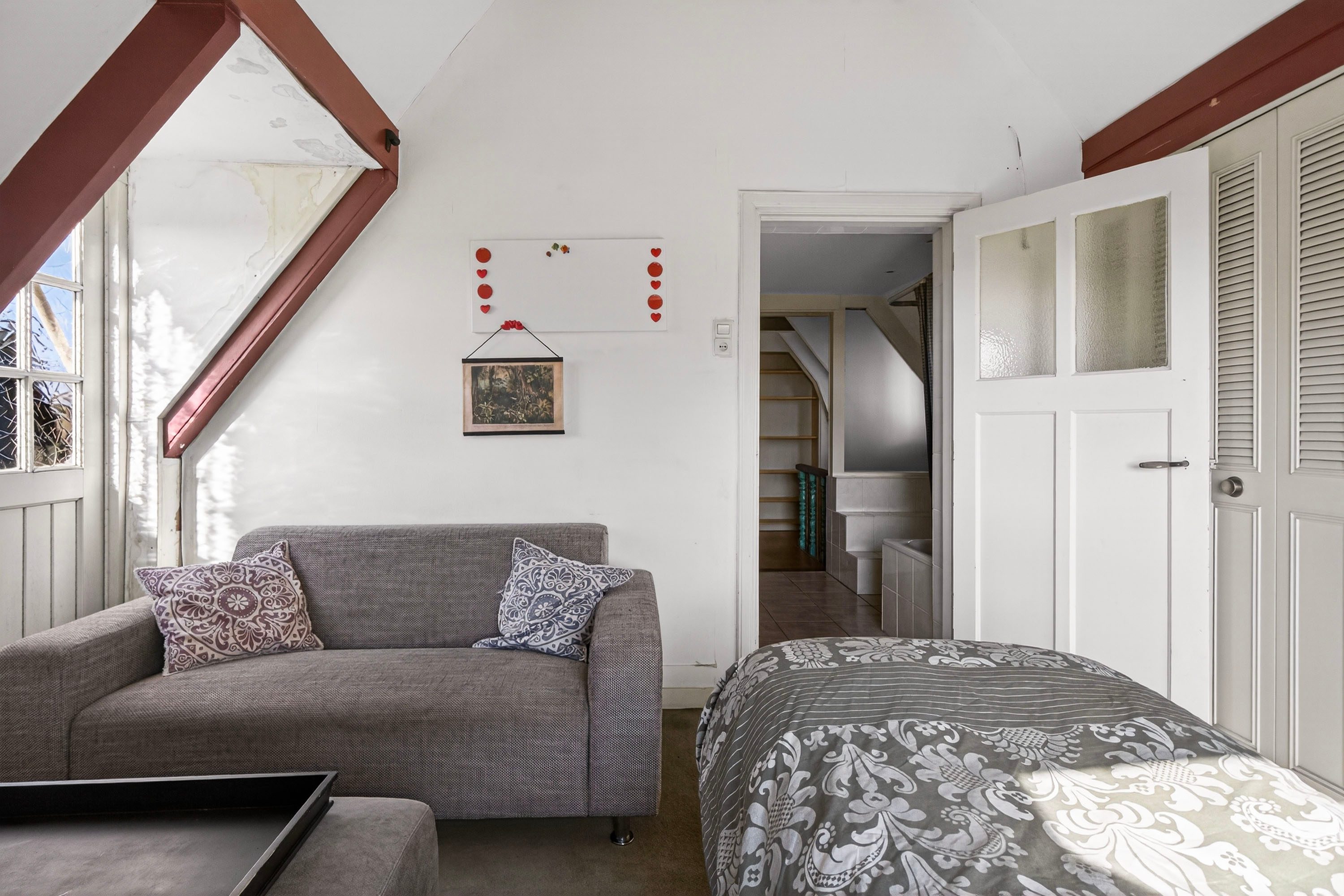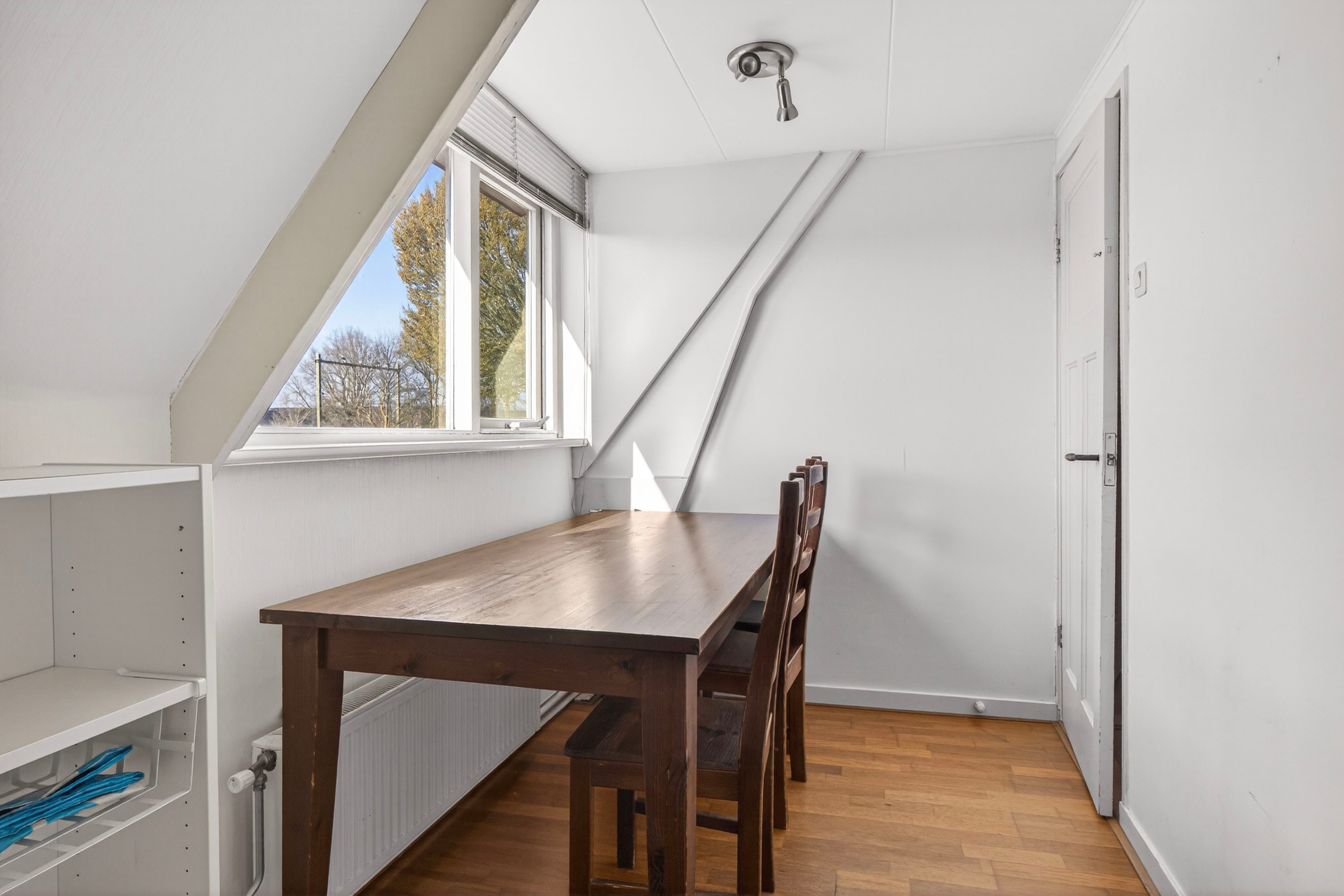 Via de trap bereik je de vliering met toegang tot twee ruime bergingen. Ideaal voor het opbergen van spullen die je niet dagelijks gebruikt.