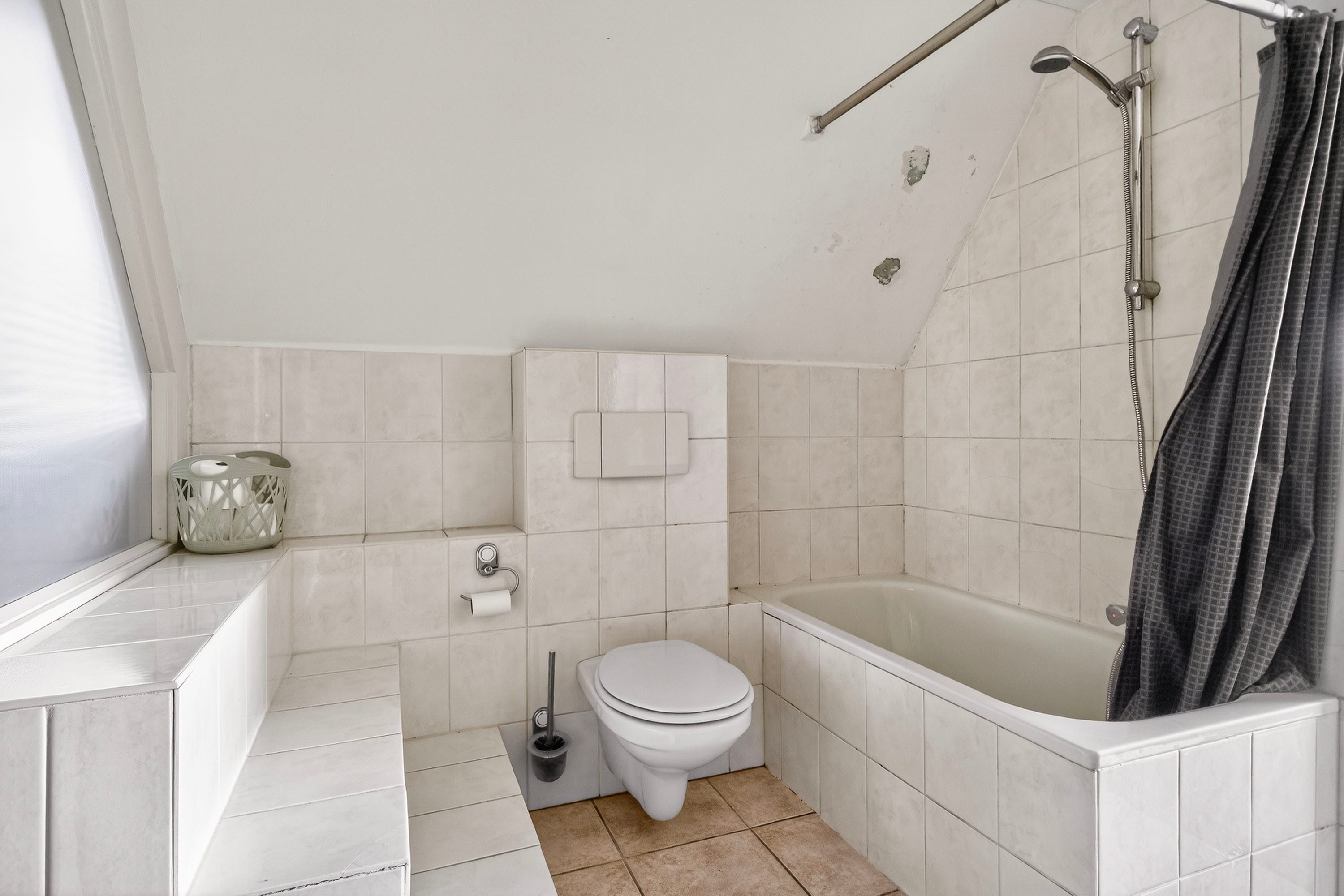 Op de overloop bevindt zich de badkamer met schuifdeur, voorzien van een ligbad met douche, toilet, wastafel en designradiator.