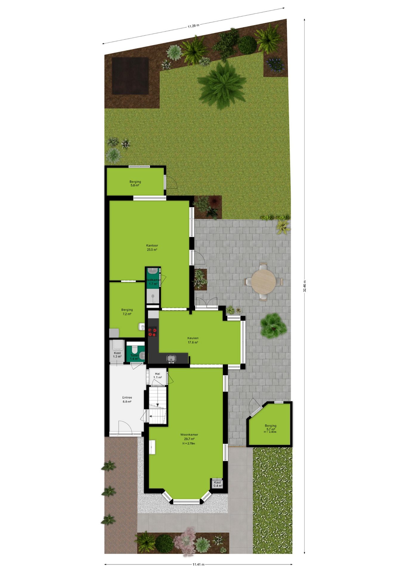 • Veel opbergruimte dankzij meerdere bergingen en vliering