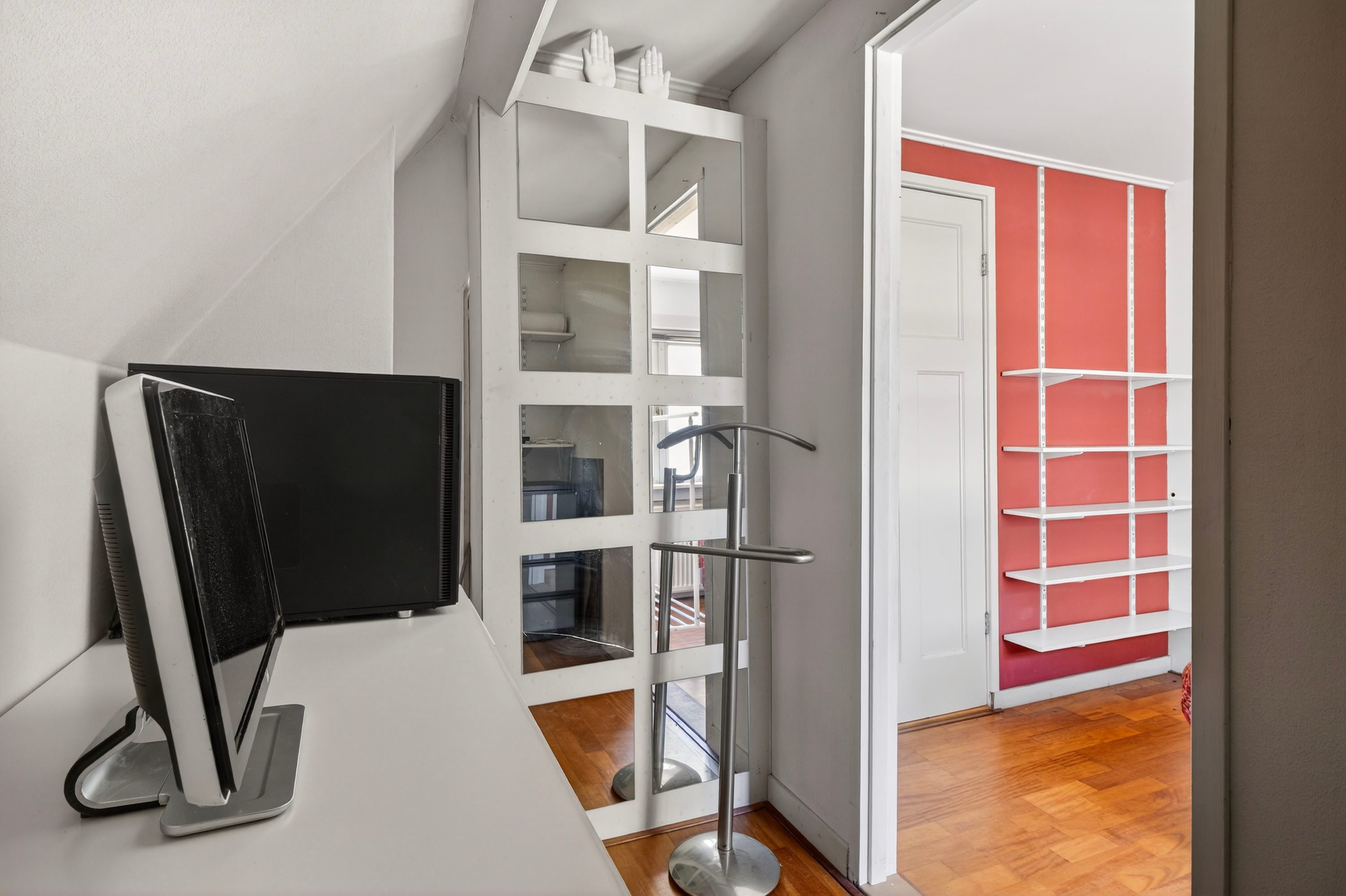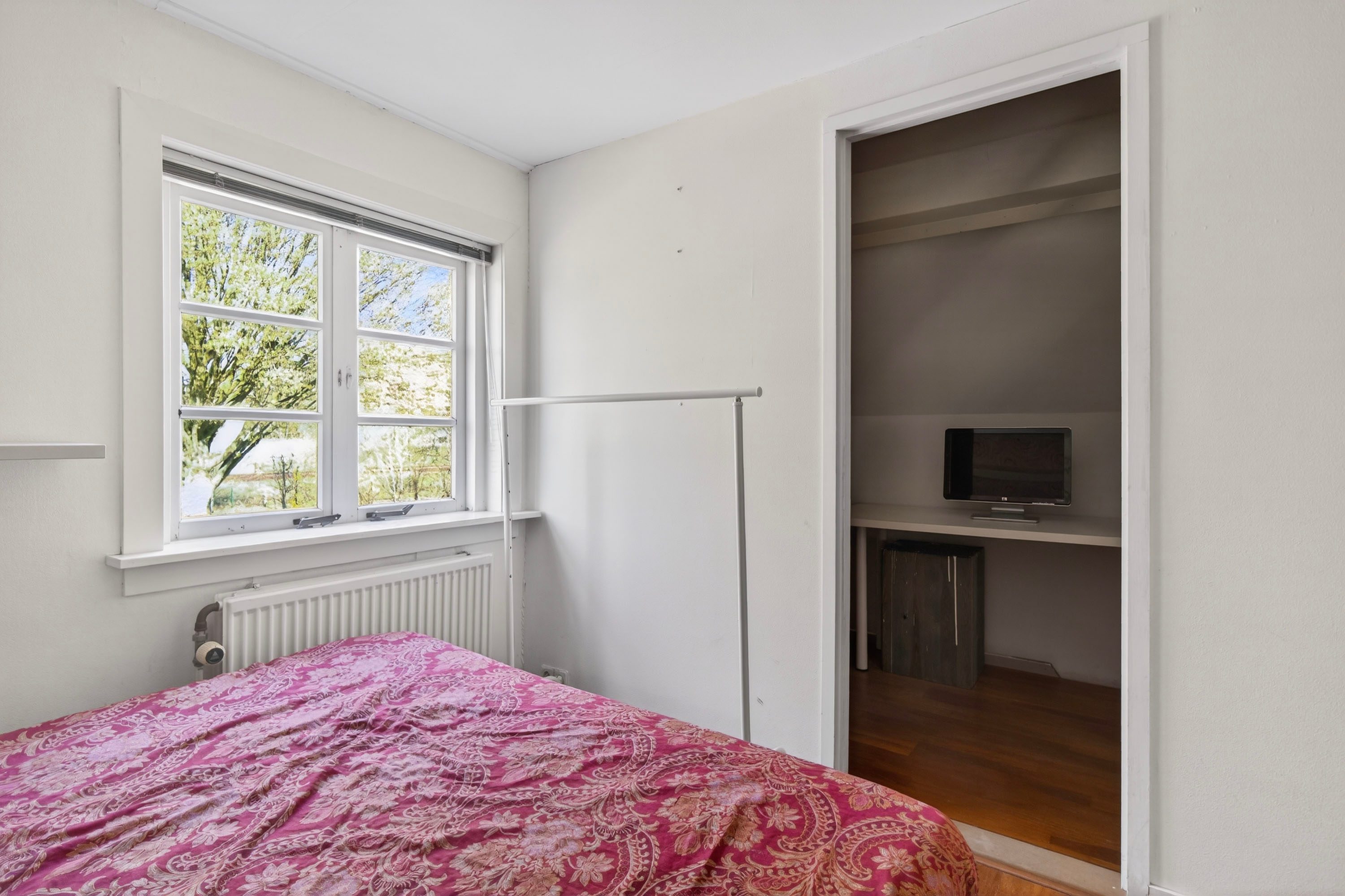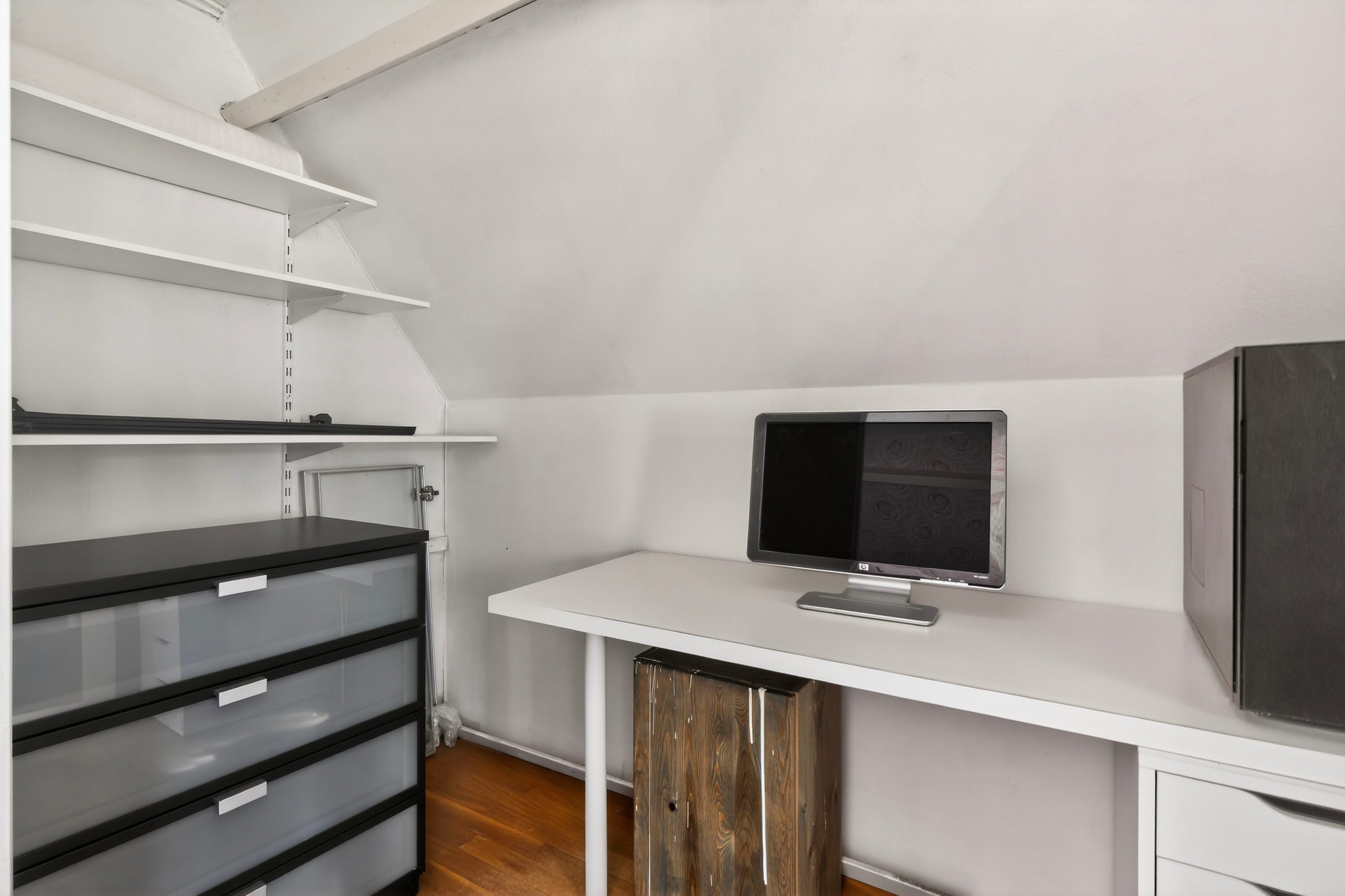 In één van de kamers is de kastruimte omgetoverd tot een handige werkplek.