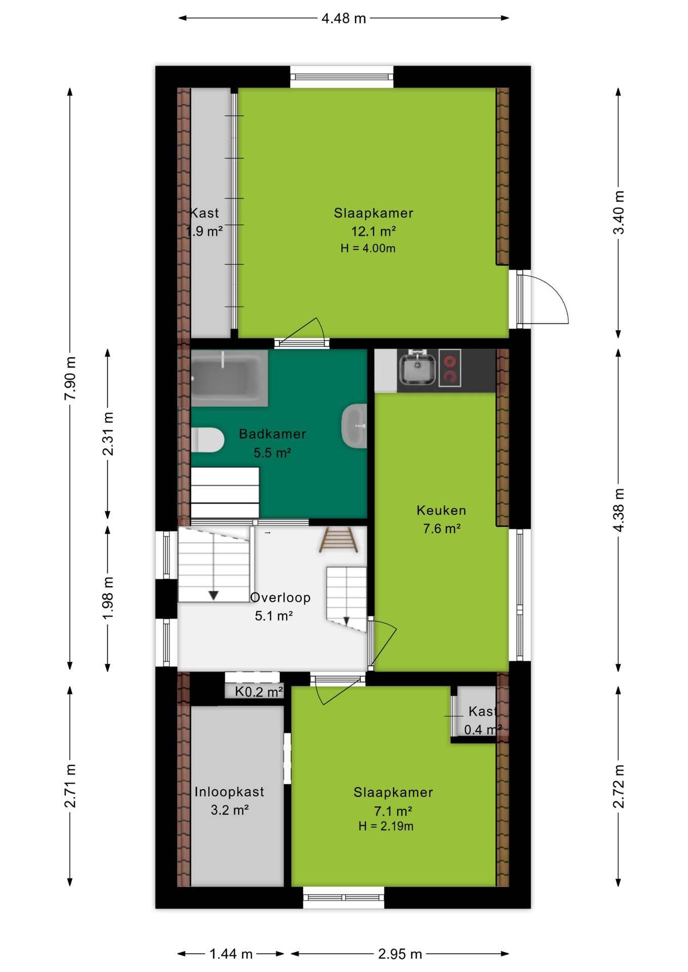 Verder zijn er drie goed bemeten slaapkamers (circa 7 m² en 12 m²), beide met daglicht en praktische kastruimte.