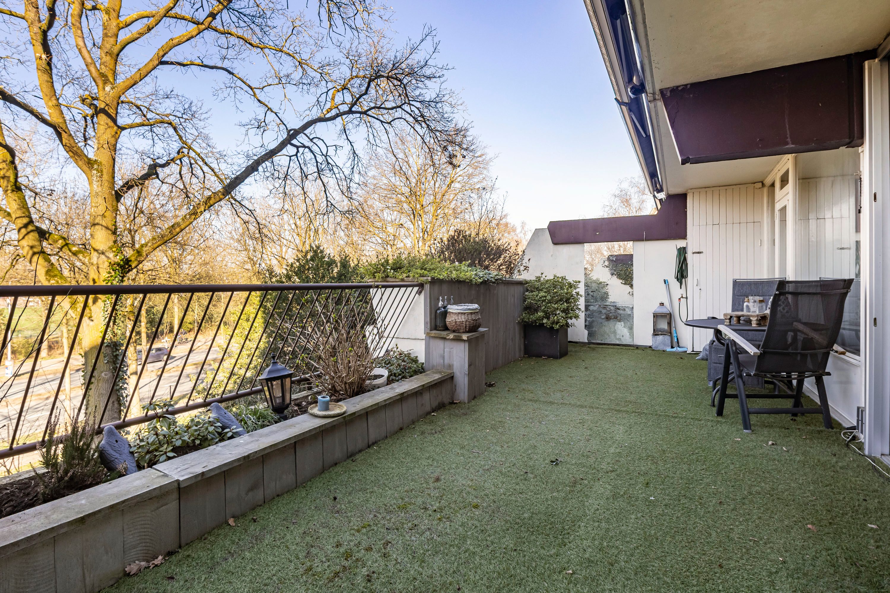 De balkons op het westen bieden volop ruimte voor een zit- of eethoek, waardoor je hier een fijne plek kunt creëren om buiten te ontspannen. Daarnaast beschikt het appartement over een praktische privéberging met elektra in het complex, ideaal voor extra opslag of het opladen van een elektrische fiets.
