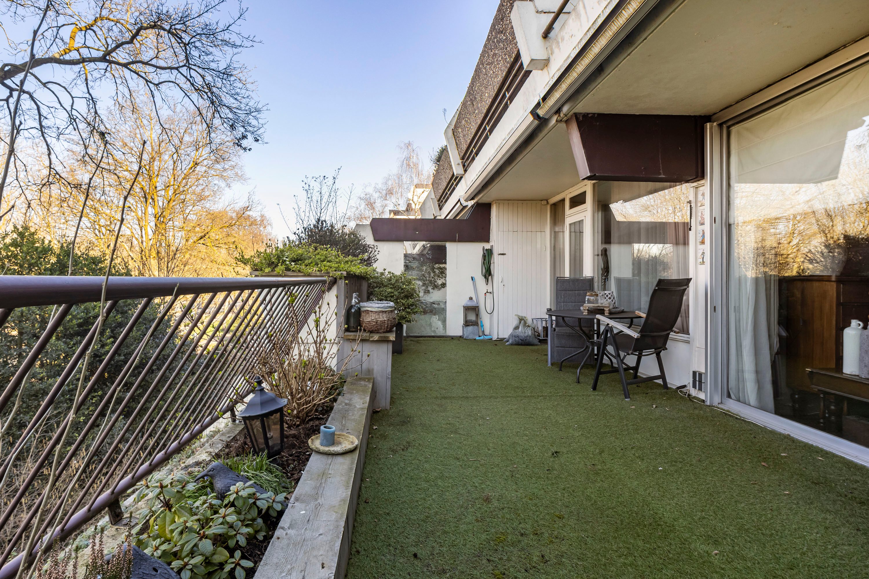 Het appartement beschikt over twee zeer ruime balkons met een totale oppervlakte van circa 41 m² (27 m² en 14 m²). Dankzij de ligging op het westen kun je hier heerlijk genieten van de middag- en avondzon.