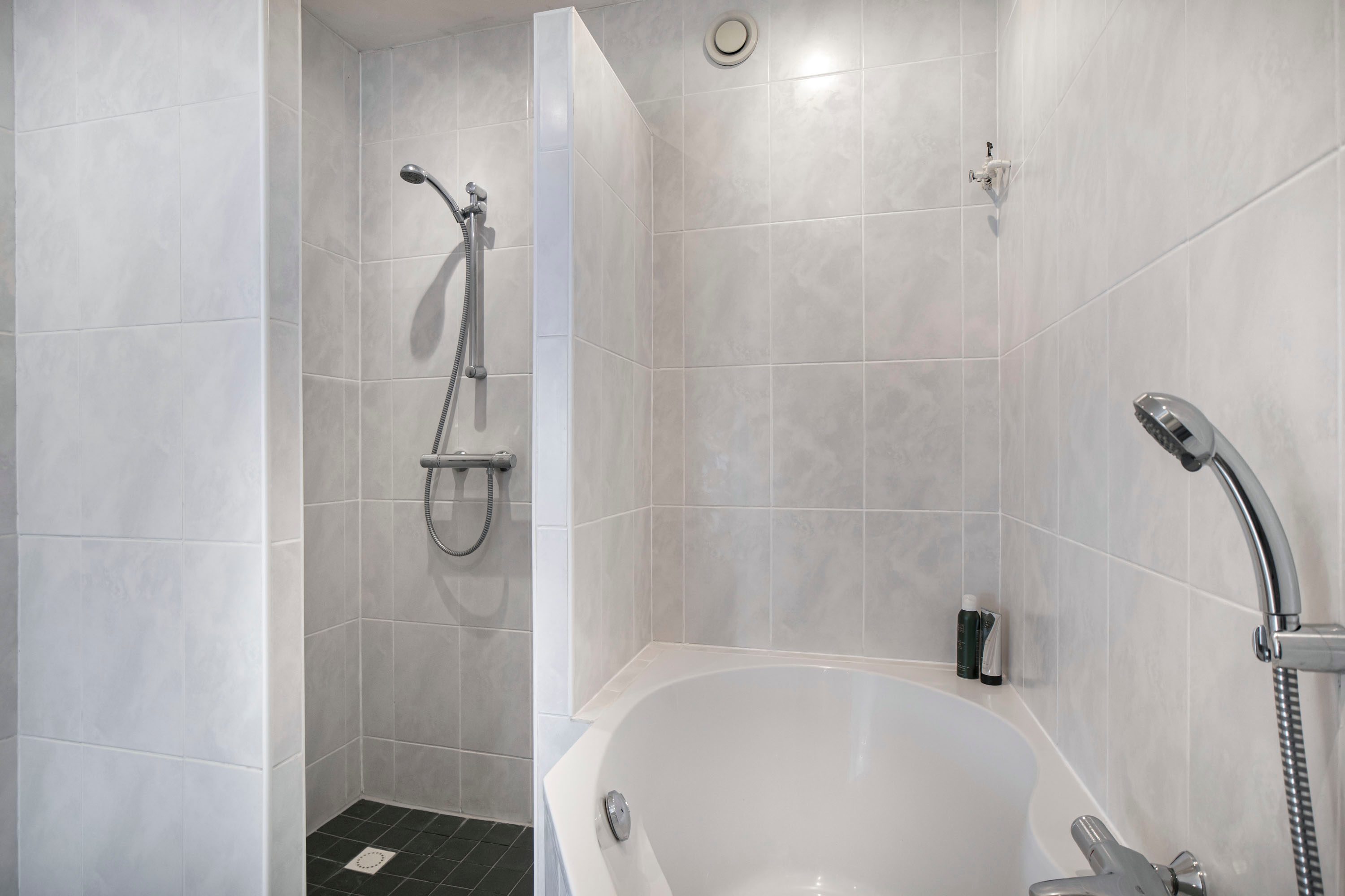 De badkamer heeft een oppervlakte van circa 4 m² en is uitgerust met een ligbad, douche en wastafel. Het toilet is separaat, wat extra comfort biedt.