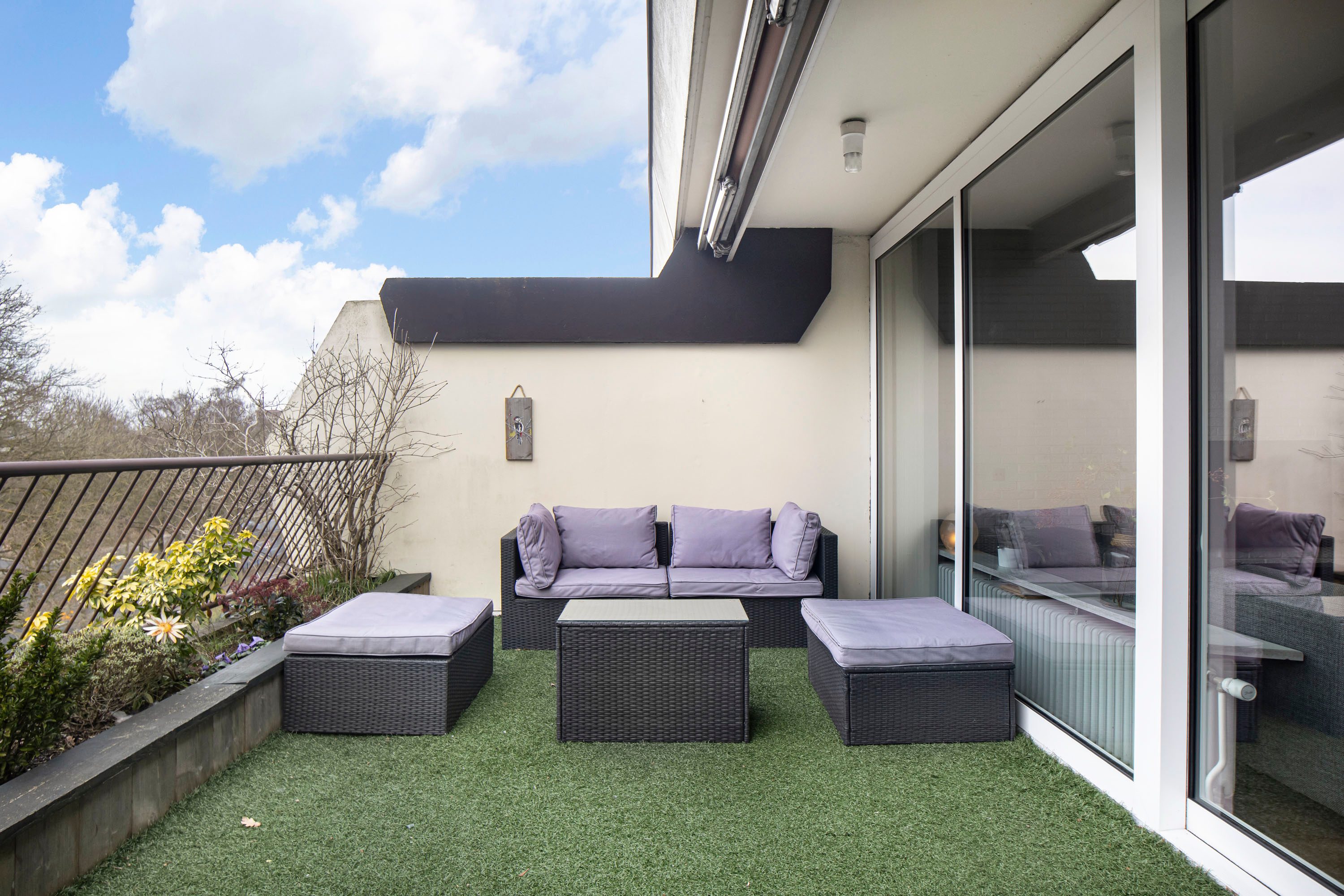 Het zeer ruime terras van circa 30 m², gelegen op het westen, is zonder twijfel één van de grote pluspunten van deze woning. Er is volop ruimte voor een loungeset én een grote eettafel. Dankzij de ligging geniet je hier van de middag- en avondzon. Op warme dagen biedt het zonnescherm aangename schaduw. Daarnaast beschikt het appartement over een eigen berging van circa 7 m² op de begane grond, ideaal voor het stallen van fietsen en extra opslag.