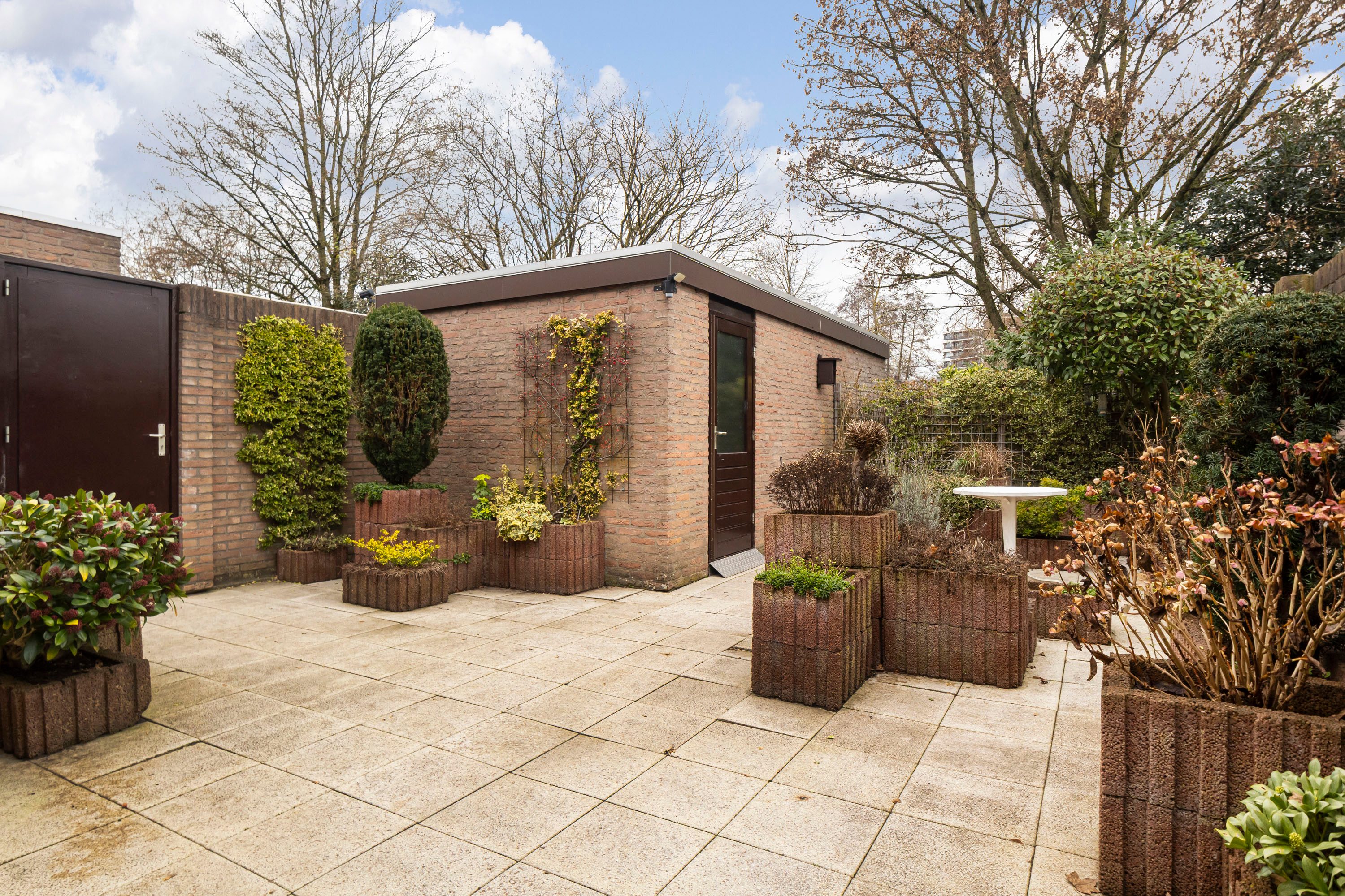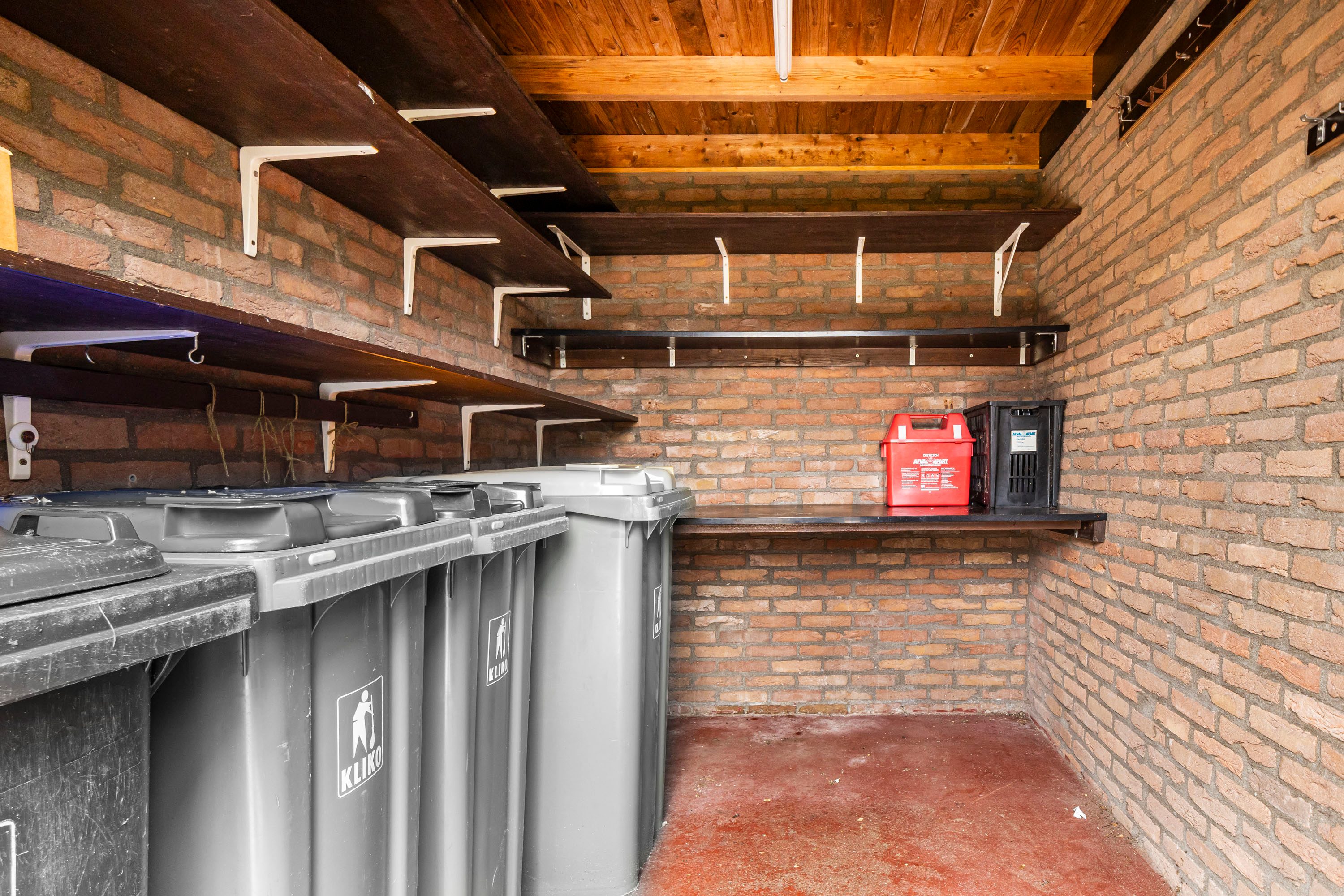 De achtertuin ligt op het noorden en is bereikbaar via een achterom. De tuin biedt ruimte voor meerdere zitplekken, zodat je op verschillende momenten van de dag buiten kunt zitten. Het aanwezige zonnescherm zorgt voor extra comfort op warme dagen. In de tuin staat een stenen berging, ideaal voor fietsen en tuingereedschap.
