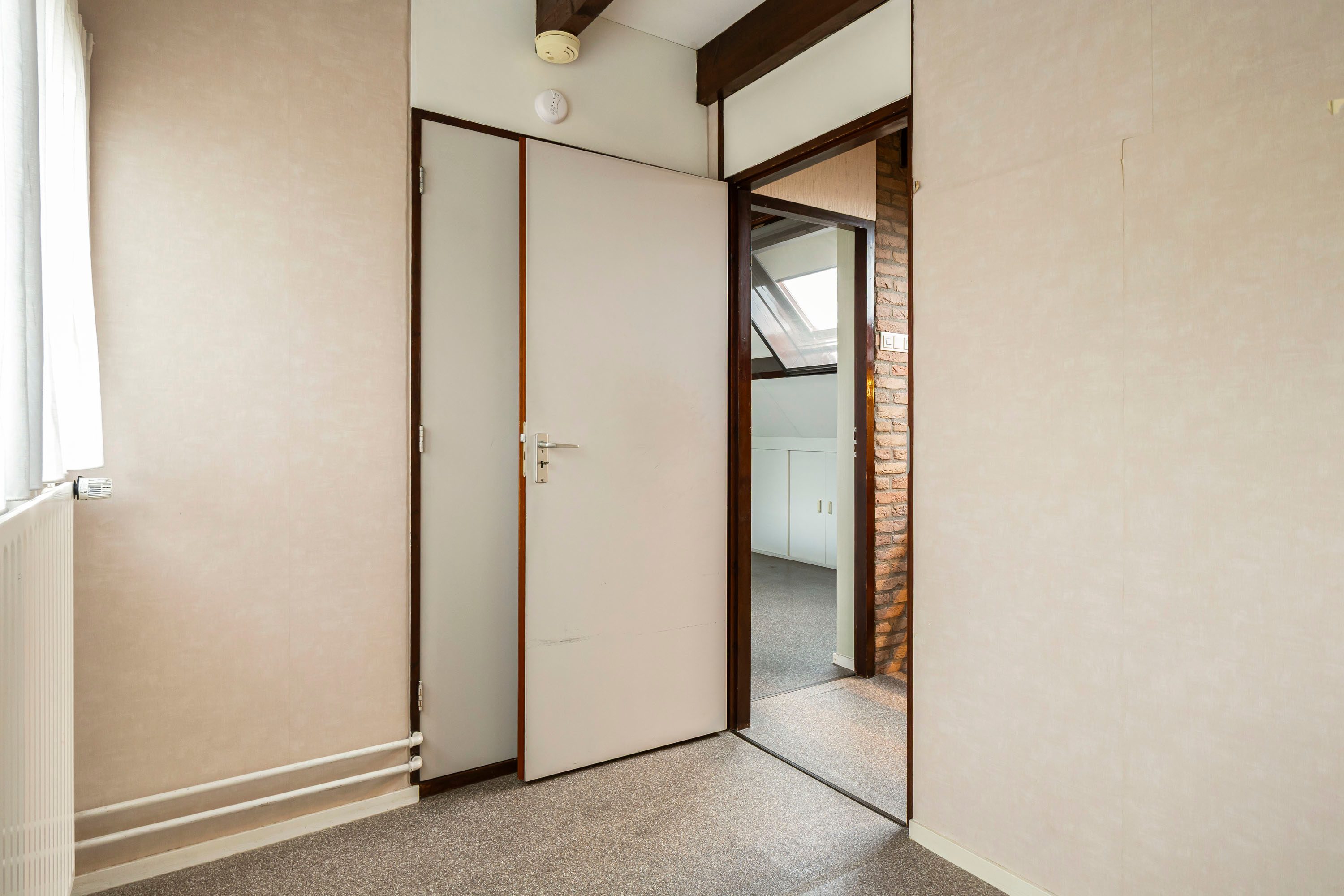 Op de eerste verdieping kom je via de overloop bij twee slaapkamers van circa 12 m² en 5 m², beide voorzien van prettig daglicht. In één van de slaapkamers is extra opbergruimte aanwezig achter een schot. In de kleinste slaapkamer bevindt zich een vaste kast met de cv-ketel. De eerste verdieping is redelijk eenvoudig te vergroten middels een uitbouw op het platte dak van de begane grond. In de wijk zijn hier meerdere voorbeelden van.