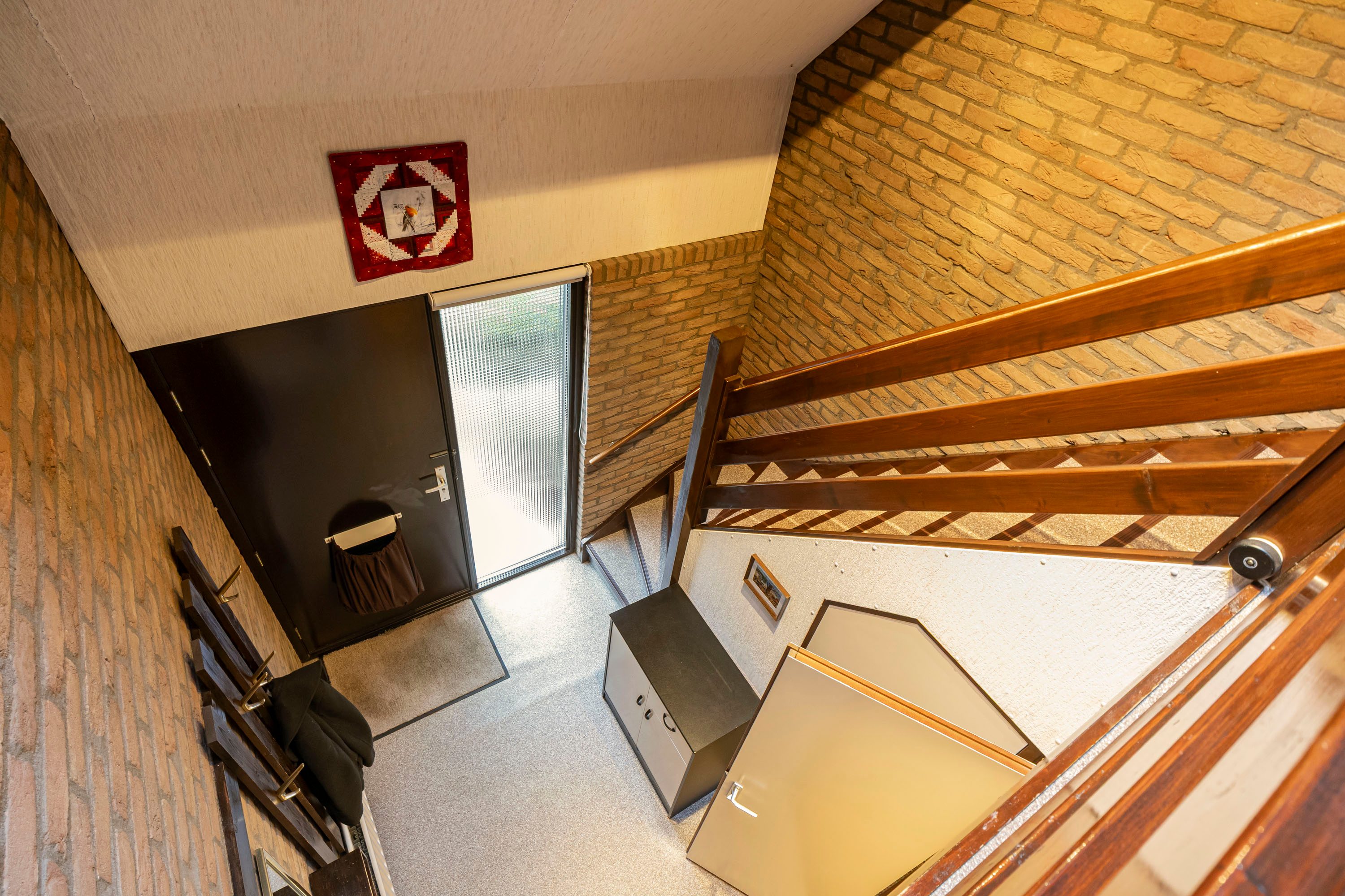 Via de brede hal betreed je de woning, waar zich een vide en de meterkast bevinden. Vanuit de hal stap je binnen in de lichte, ruim opgezette woonkamer. De sfeervolle open haard vormt het warme middelpunt van de ruimte. Via de openslaande deuren loop je direct de tuin in, wat zorgt voor een fijne verbinding tussen binnen en buiten.