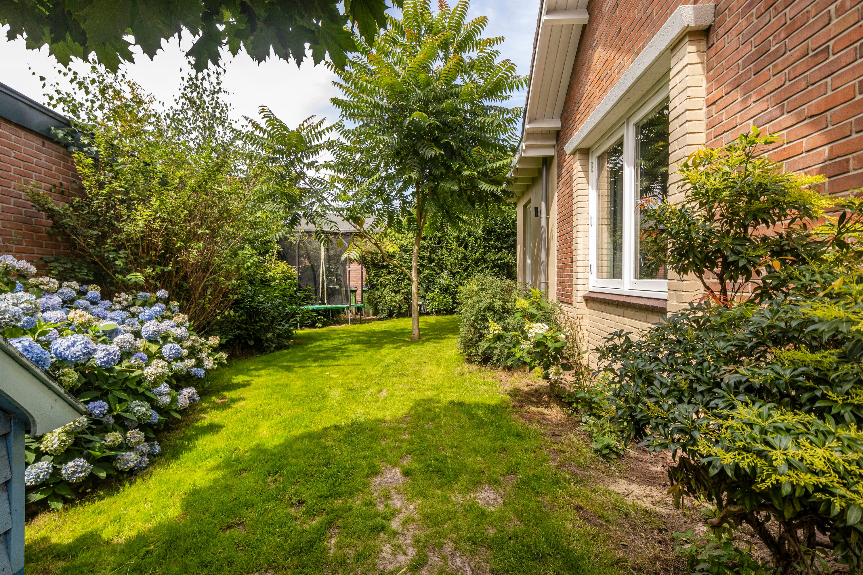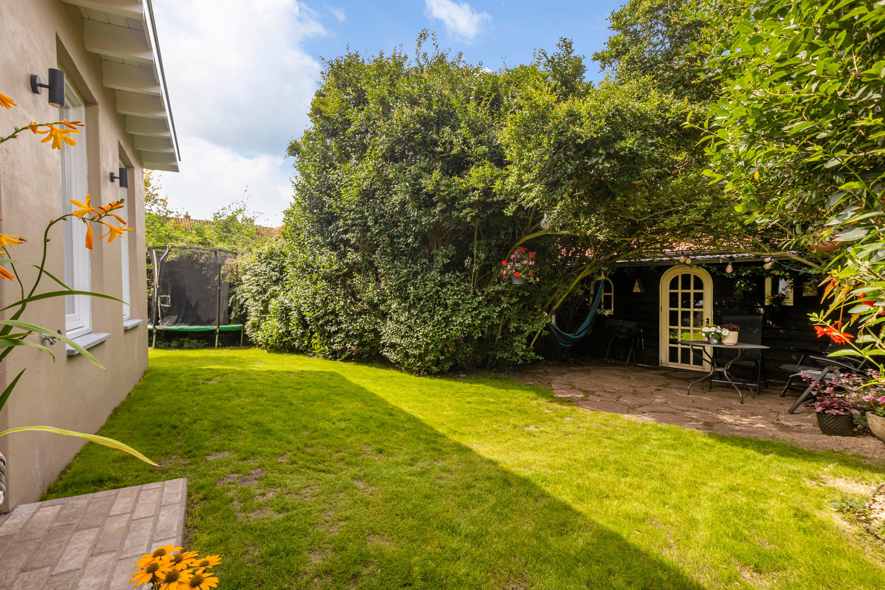 De rondom gelegen tuin biedt volop mogelijkheden om van het buitenleven te genieten. Of je nu kiest voor de gezellige overkapping, een zitje in de zon of een schaduwrijk plekje, er is altijd een fijne hoek om te ontspannen. Achterin de tuin is een ruime schuur, van maar liefst +- 20m2, te vinden. Dit is perfect voor het opslaan van spullen.