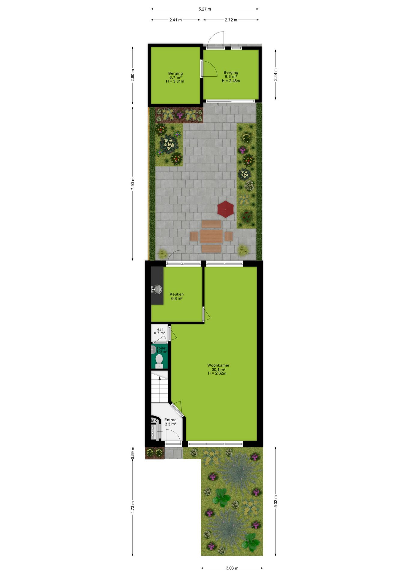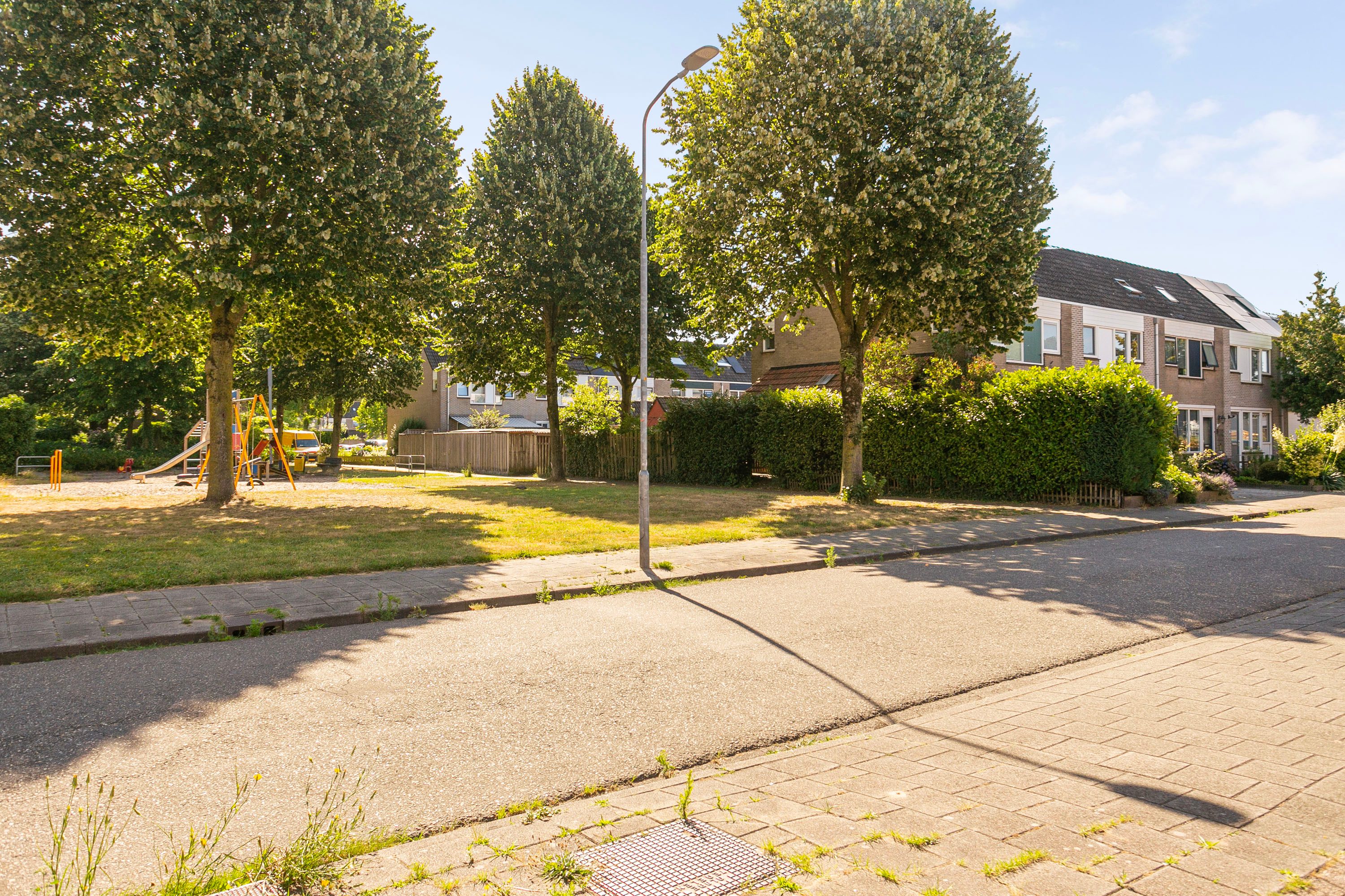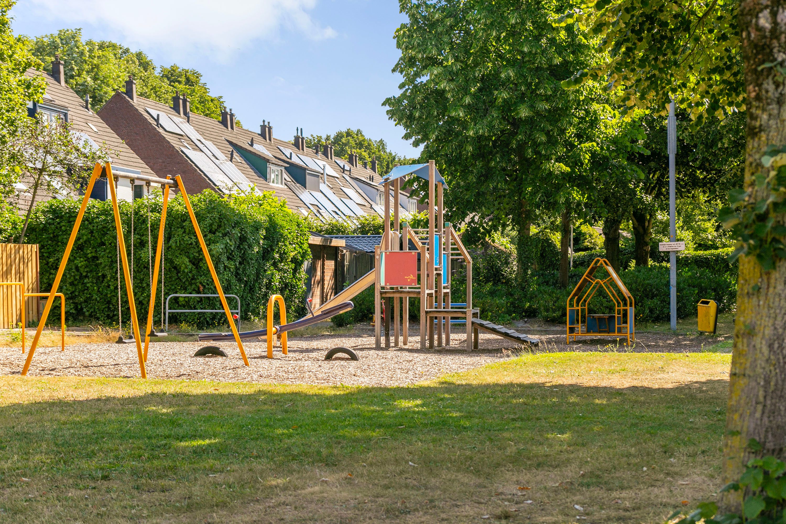 Vanuit de woonkamer loop je zo de achtertuin in waar je heerlijk kunt genieten van het buitenleven. Achterin staat een berging met overkapping en is de tuin via achterom bereikbaar.