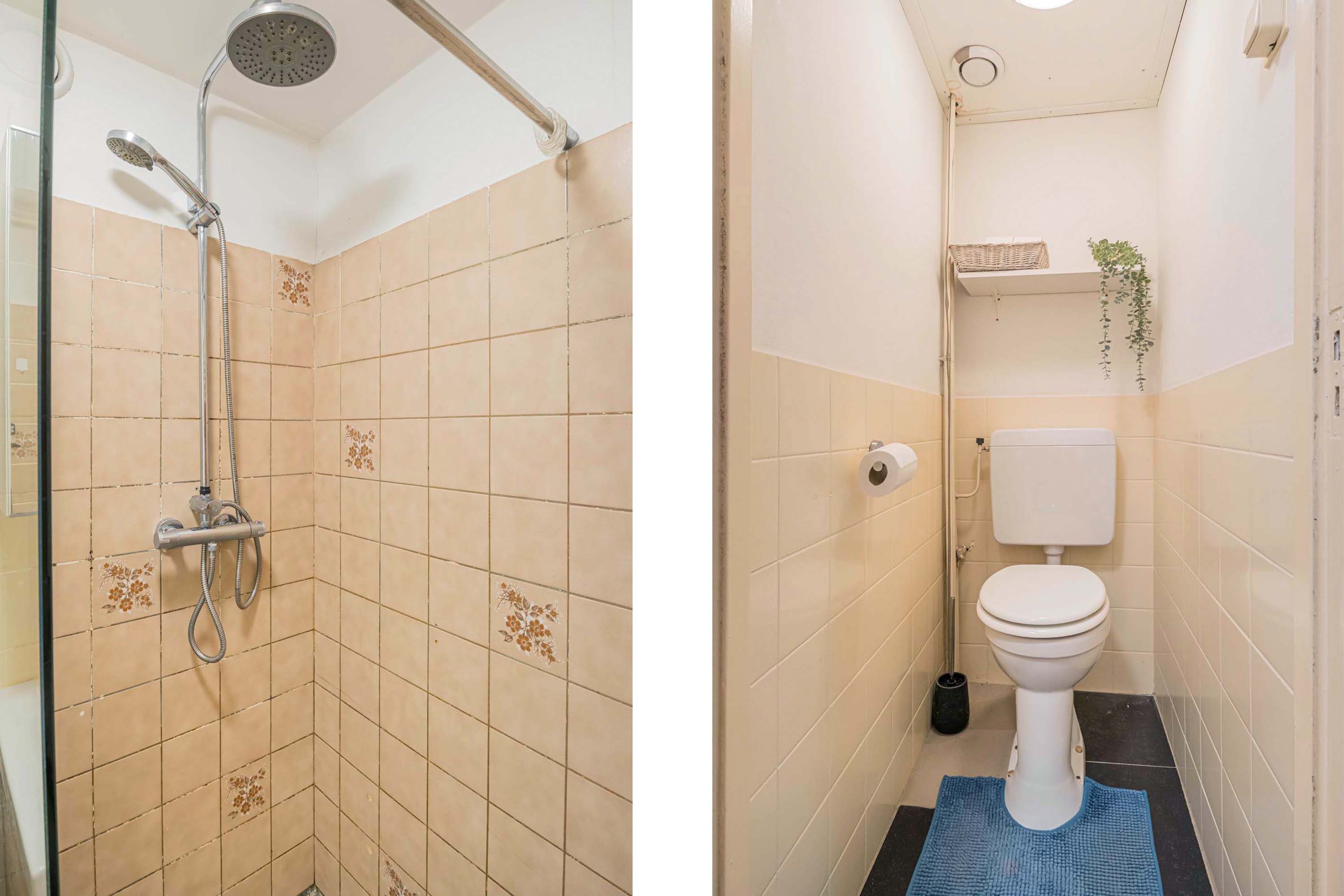 Via de gang bereik je ook het aparte toilet en de badkamer. De badkamer is ingericht en voorzien van een wastafel met meubel, een designradiator en een inloopdouche.