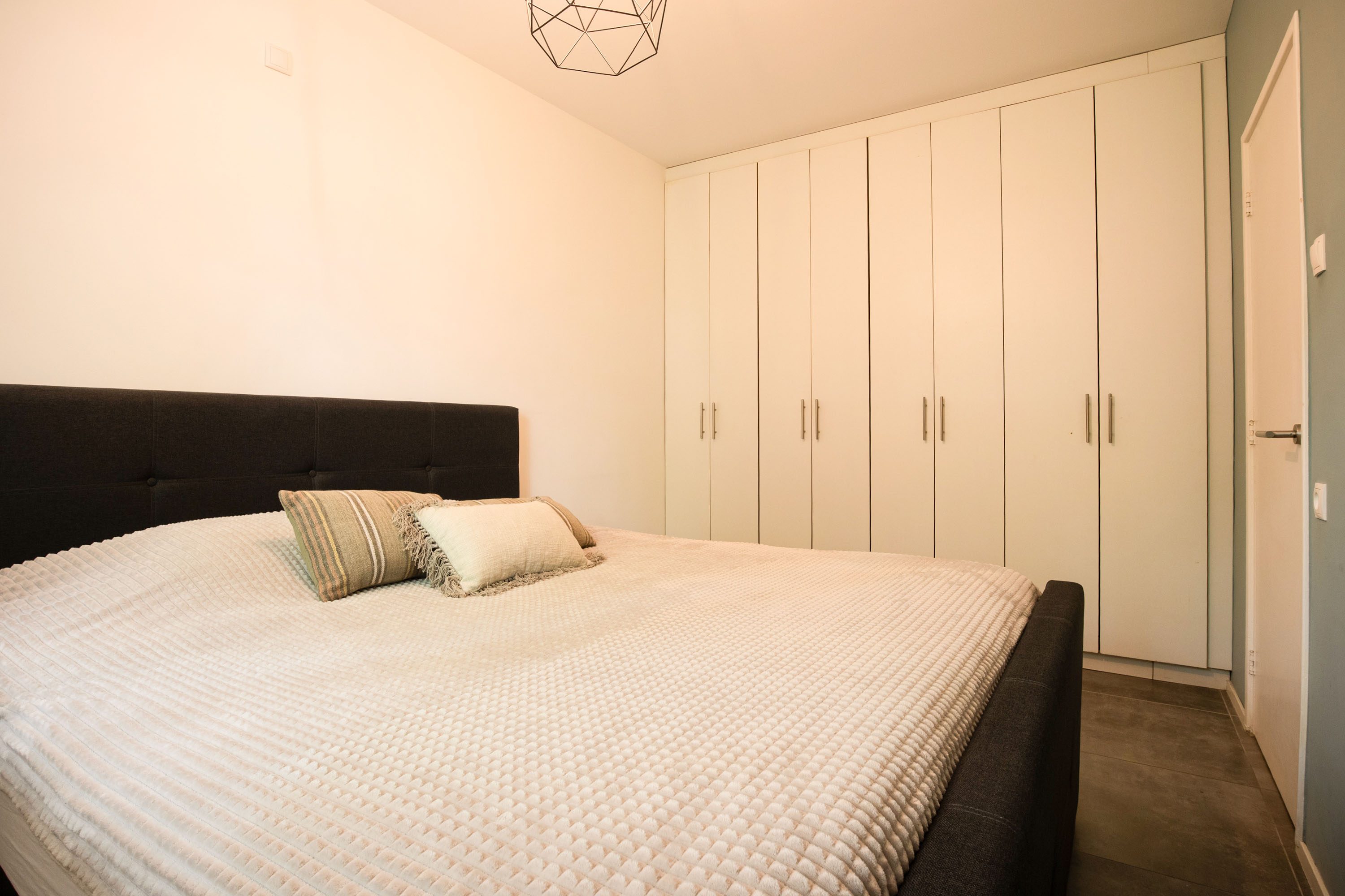 Aan de voorzijde van het appartement is de grote slaapkamer met vaste kastenwand gelegen. Als laatste is de badkamer aanwezig met een luxe bad (met mogelijkheid tot douchen), toilet, wastafel en wastafelmeubel.