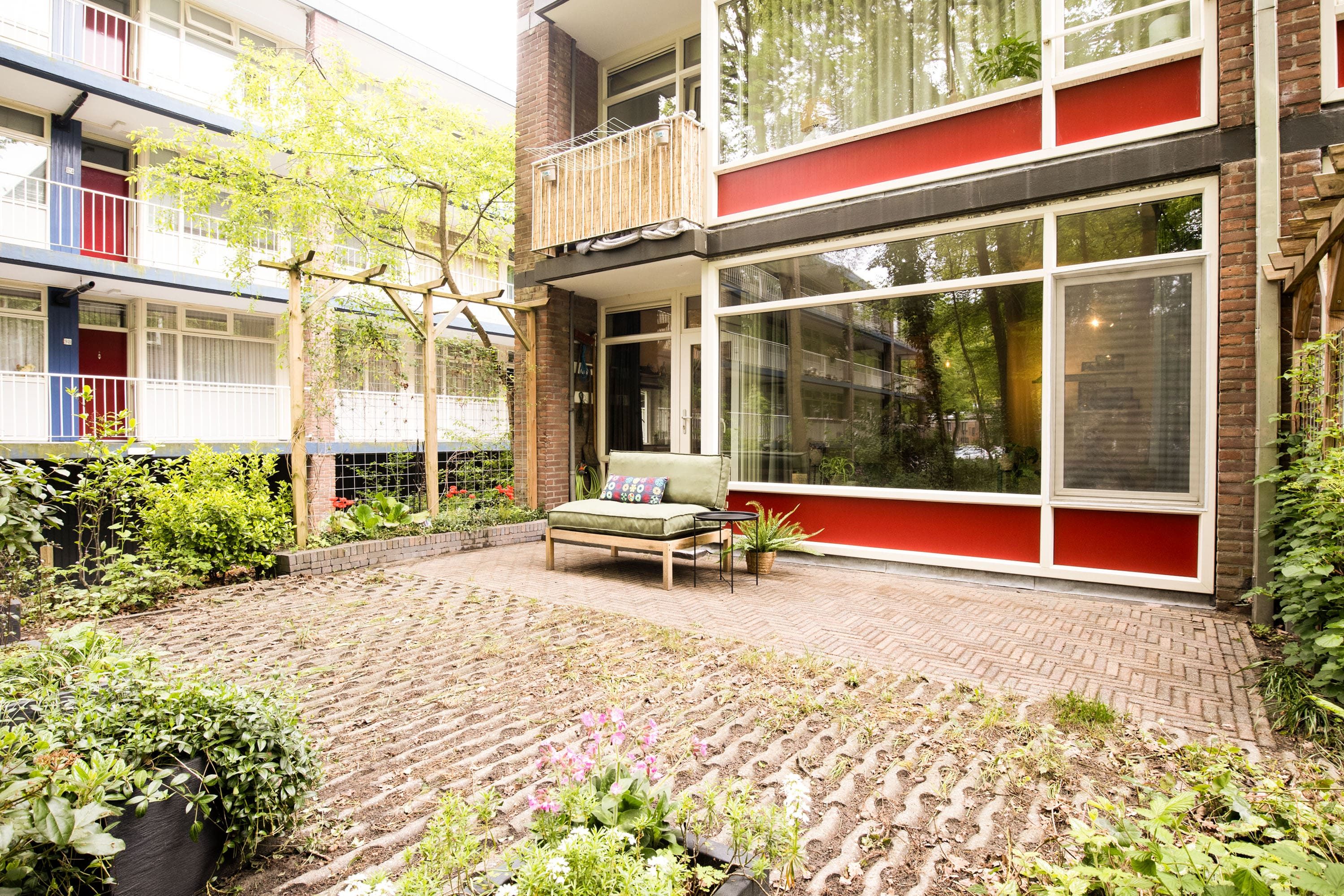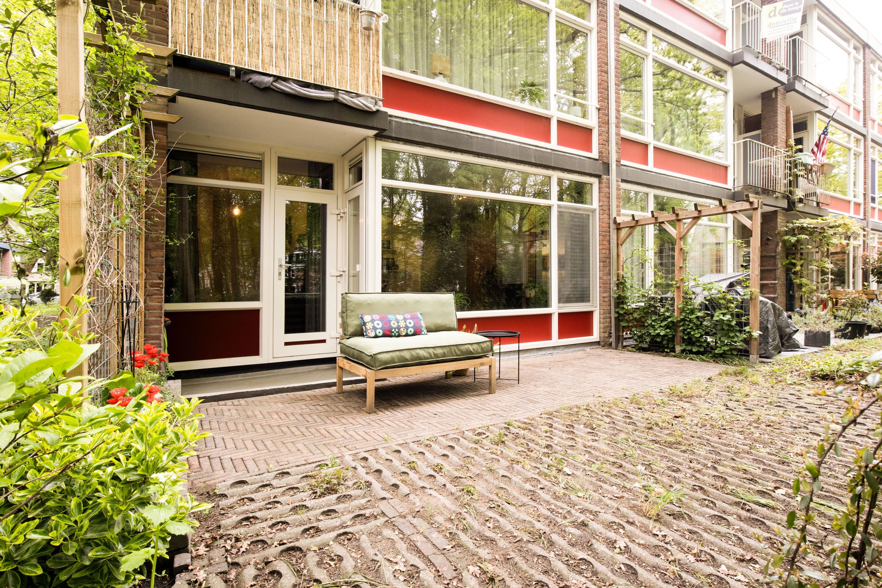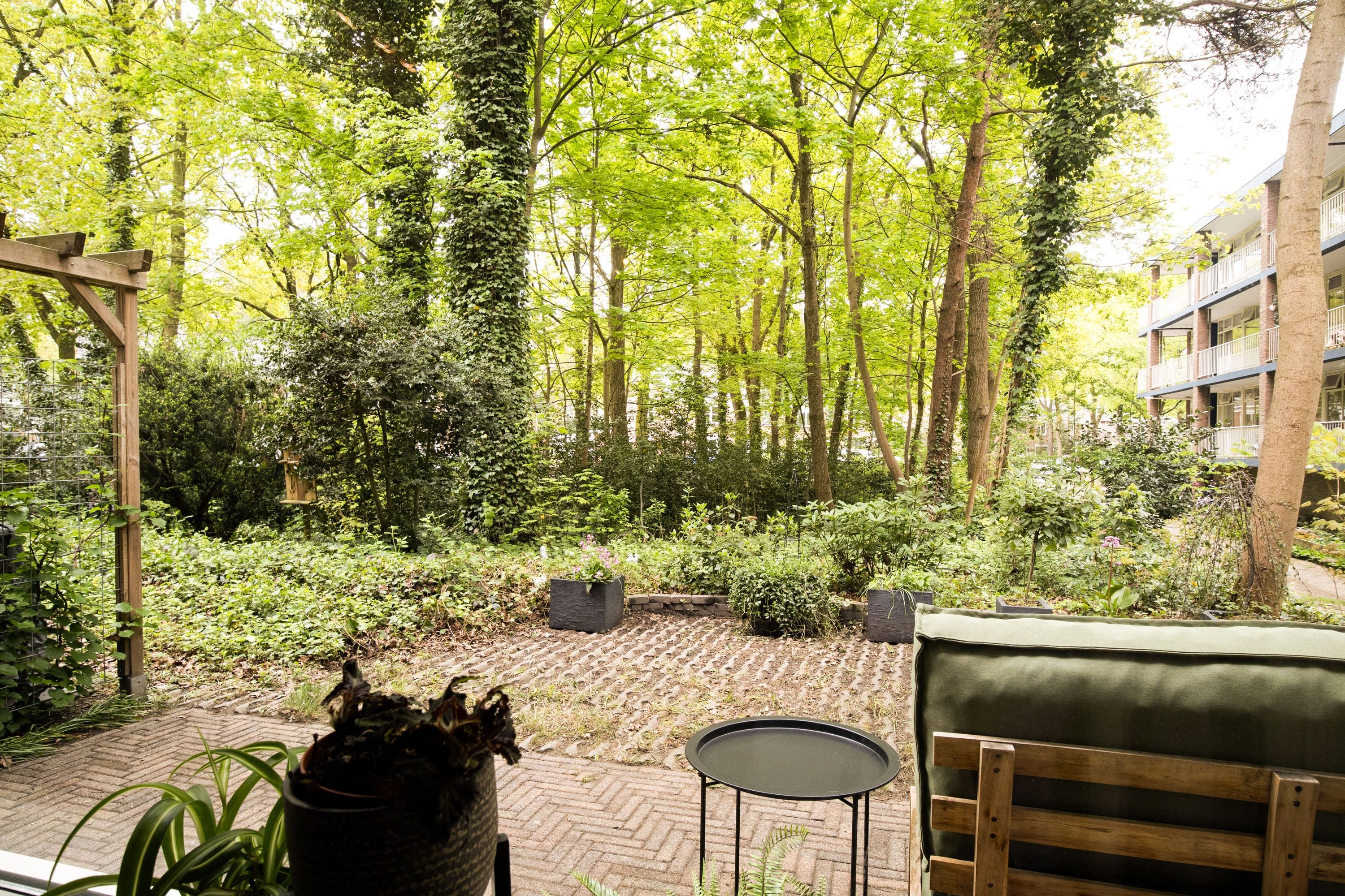 Vanuit de woonkamer bereik je het heerlijke terras gelegen op het zuiden. Dit loopt natuurlijk over in de tuin van de VvE. Doordat je op de hoek zit heb je veel privacy en kun je zomers heerlijk genieten van het buitenleven. Dat maakt het wonen op de begane grond zeer aangenaam.