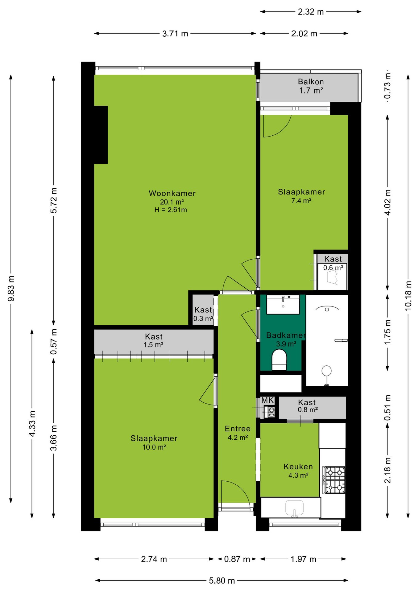 + Het gehele appartement heeft dubbele beglazing;