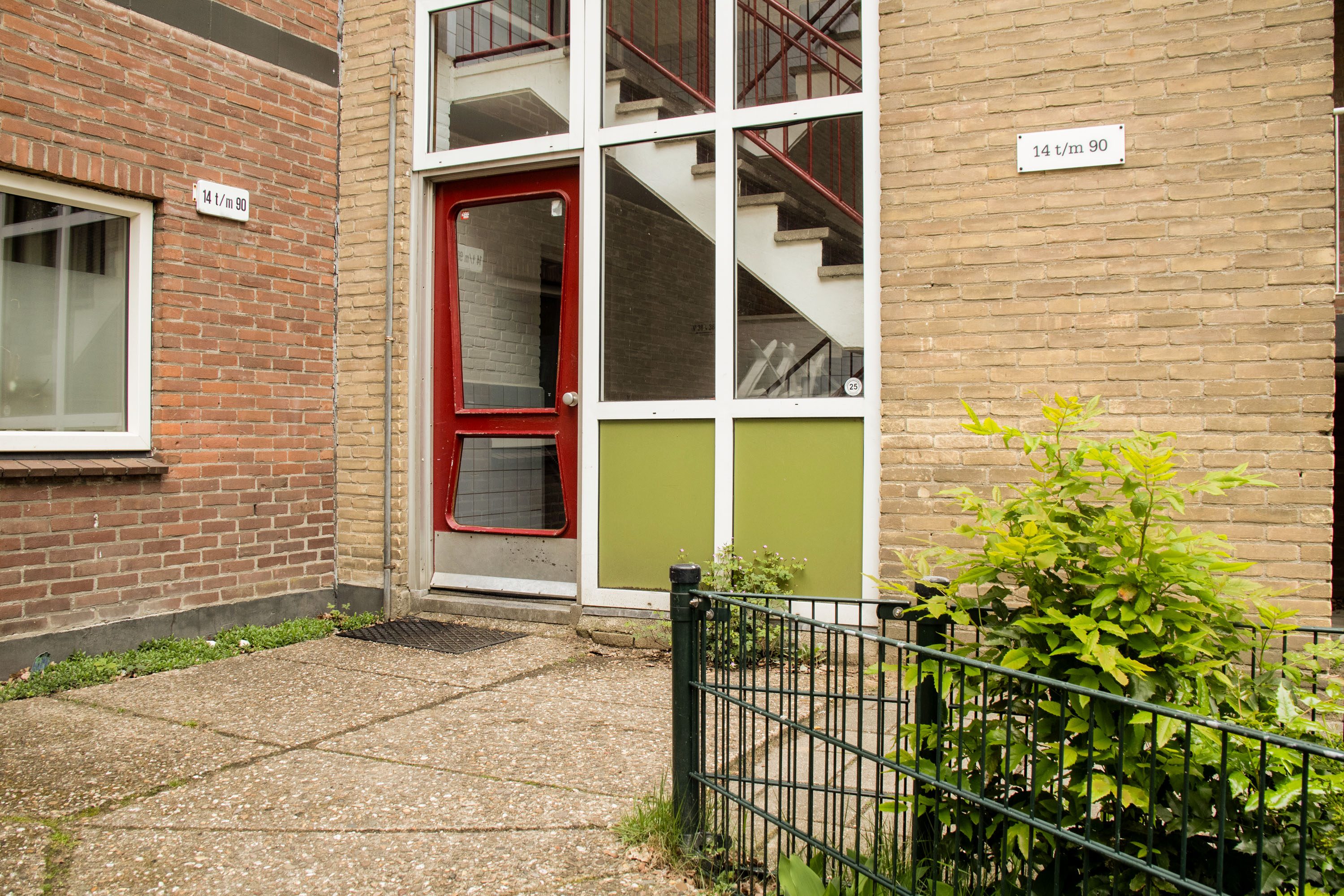 De gezamenlijke entree met brievenbussen geeft toegang tot de bergingen en de galerij naar het appartement.