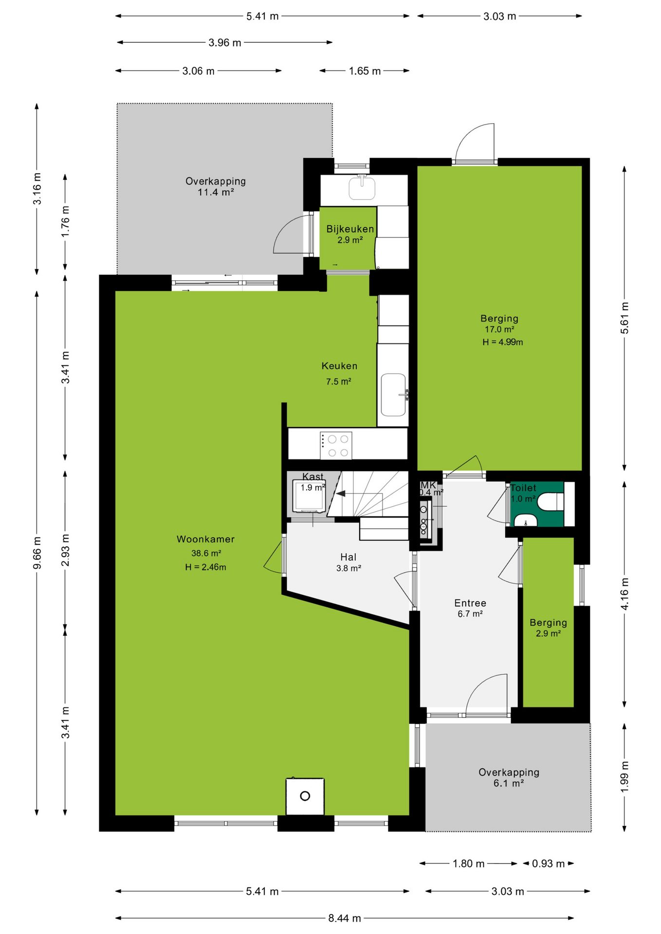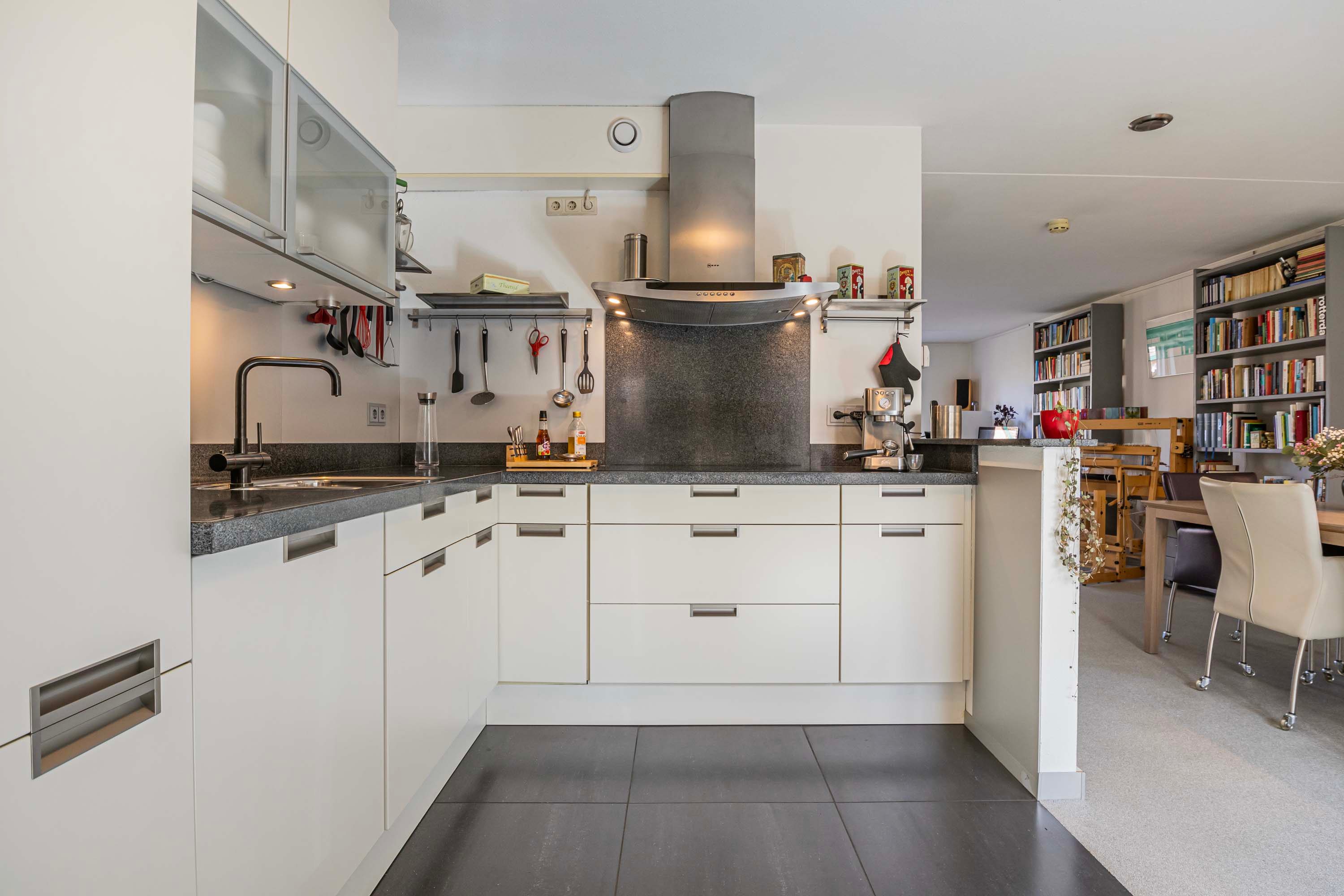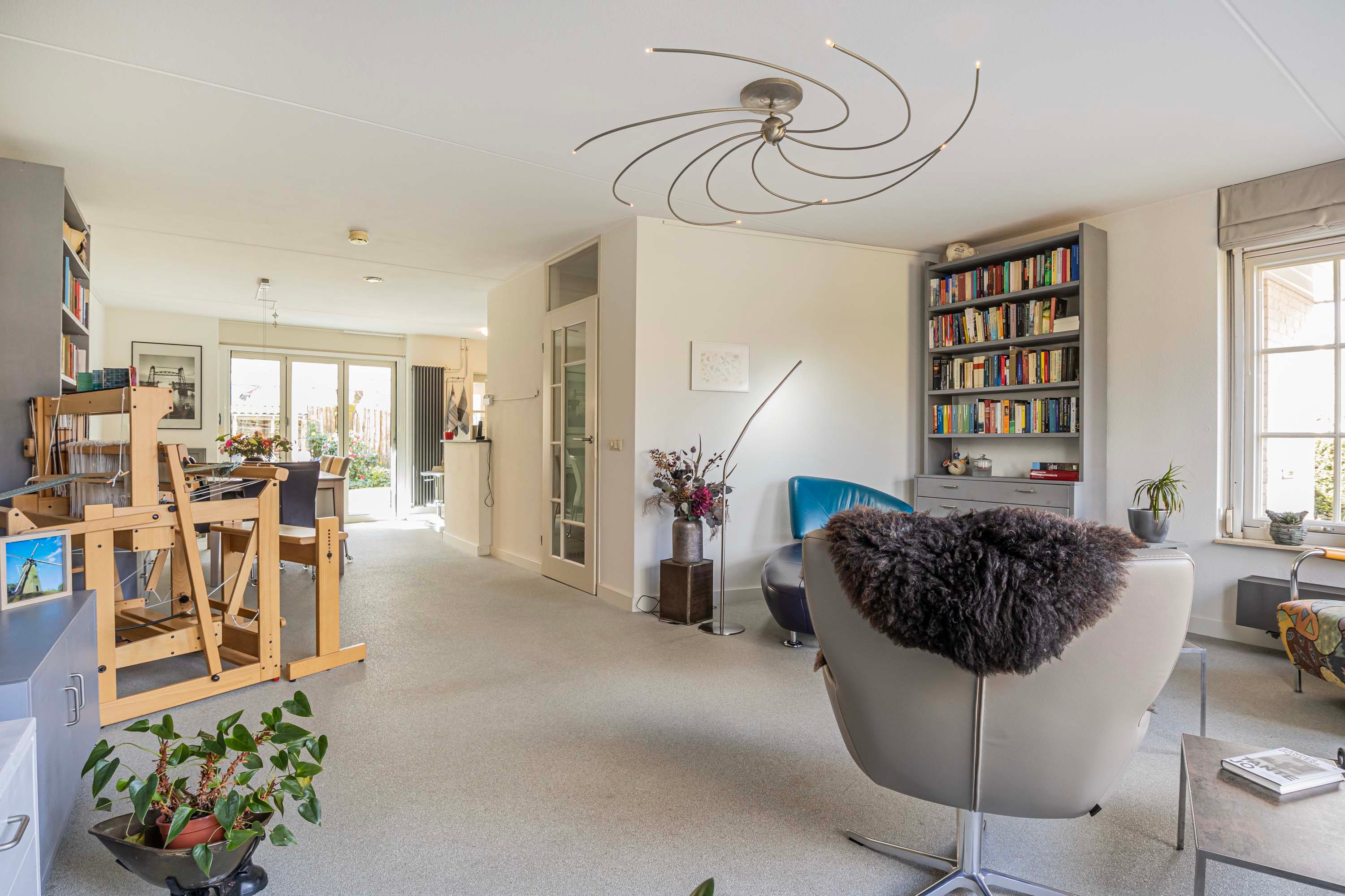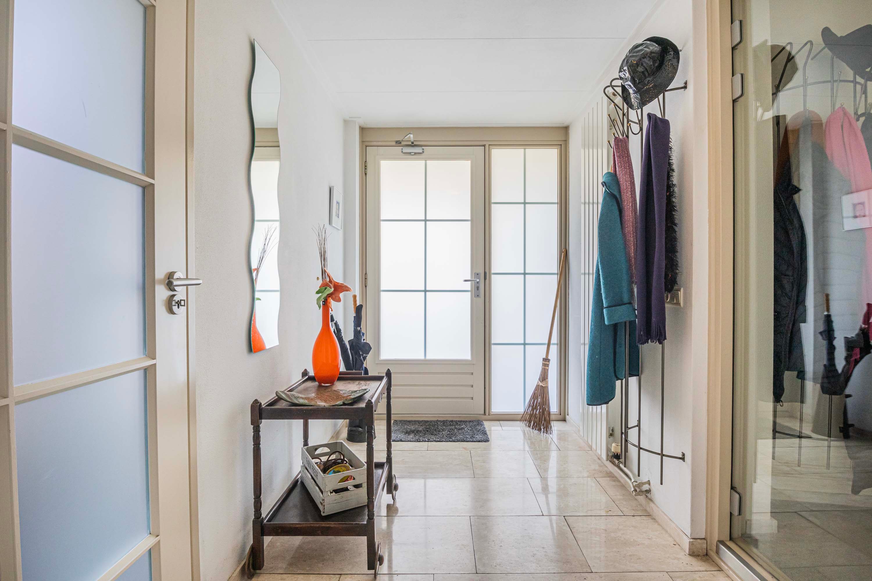 Direct via de entree heb je toegang tot een praktische opbergkast, een toilet, een ruime berging en de hal. Vanuit de hal loop je zo de woonkamer in. De woonkamer is een open ruimte die naadloos overgaat in de eetkamer. Deze verbinding zorgt voor een gevoel van ruimte en gezelligheid, waarbij natuurlijk licht een warme en uitnodigende sfeer creërt. Dankzij de open keuken sta je in verbinding met degene aan de keukentafel.