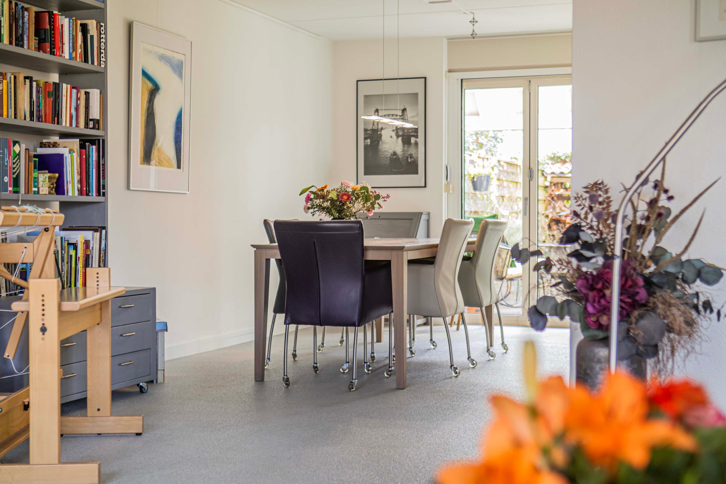 De openslaande deuren in de eetkamer zorgen voor een prachtige overgang, waarbij binnen en buiten moeiteloos in elkaar overvloeien.
