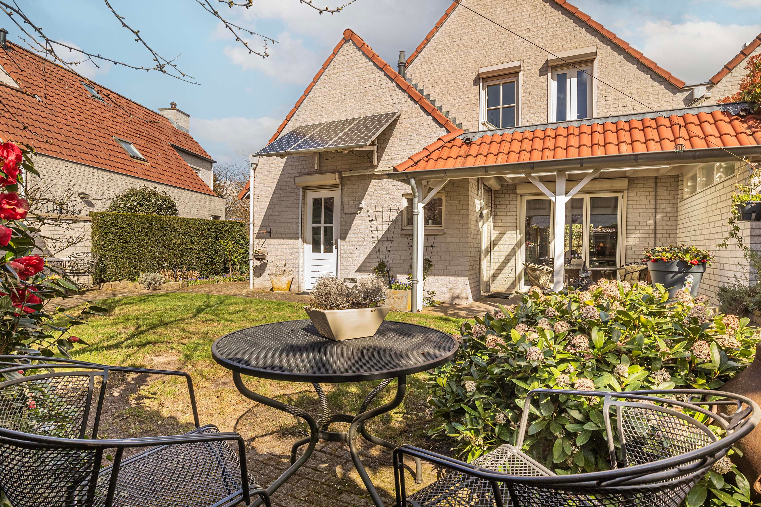 De tuin op het zuidwesten zorgt voor volop zonlicht en warmte, waardoor je elke dag kunt genieten van de buitenlucht. Direct grenzend aan het huis vind je een overkapping, perfect voor zomerse barbecues of rustige momenten in de schaduw.